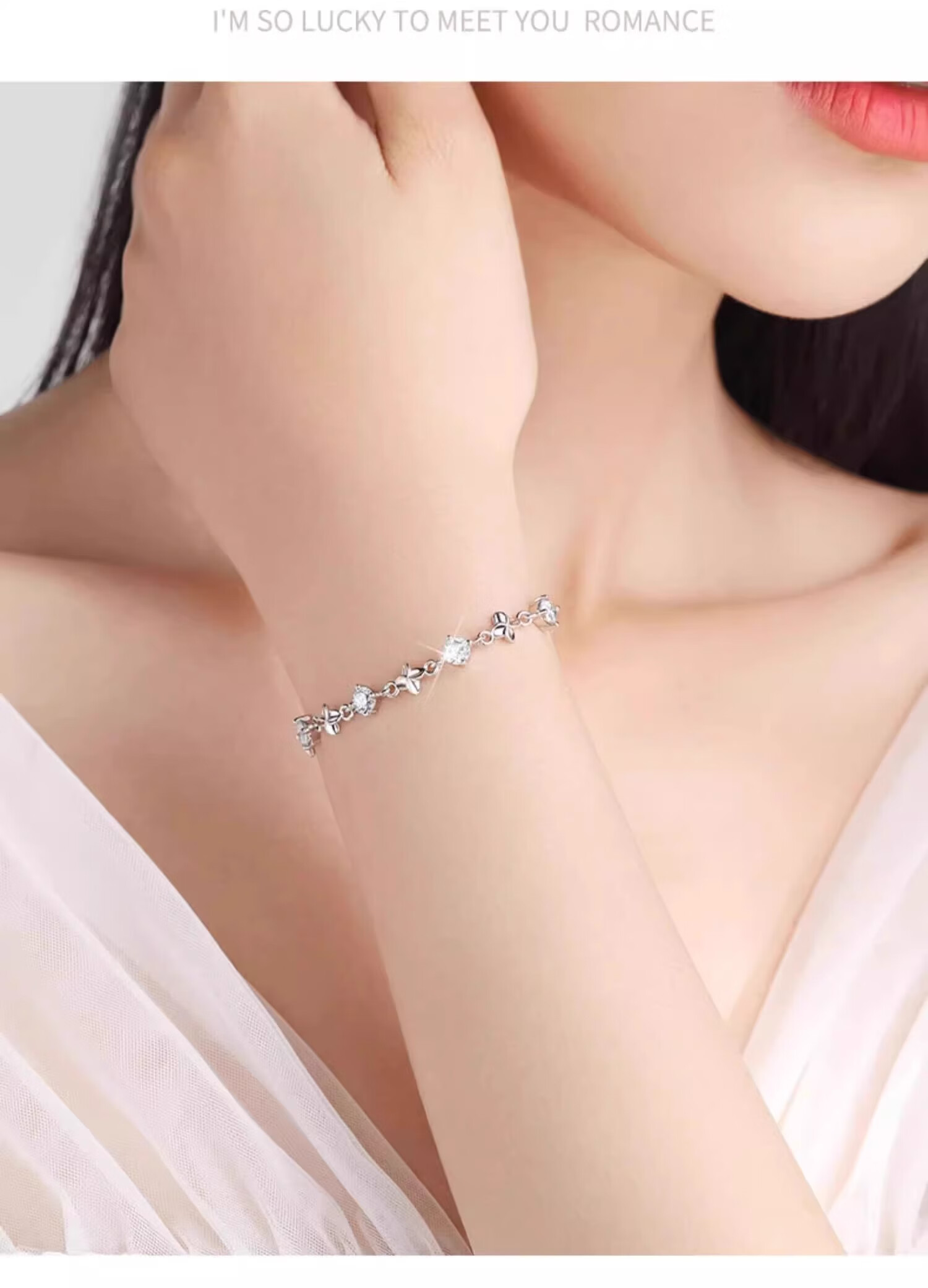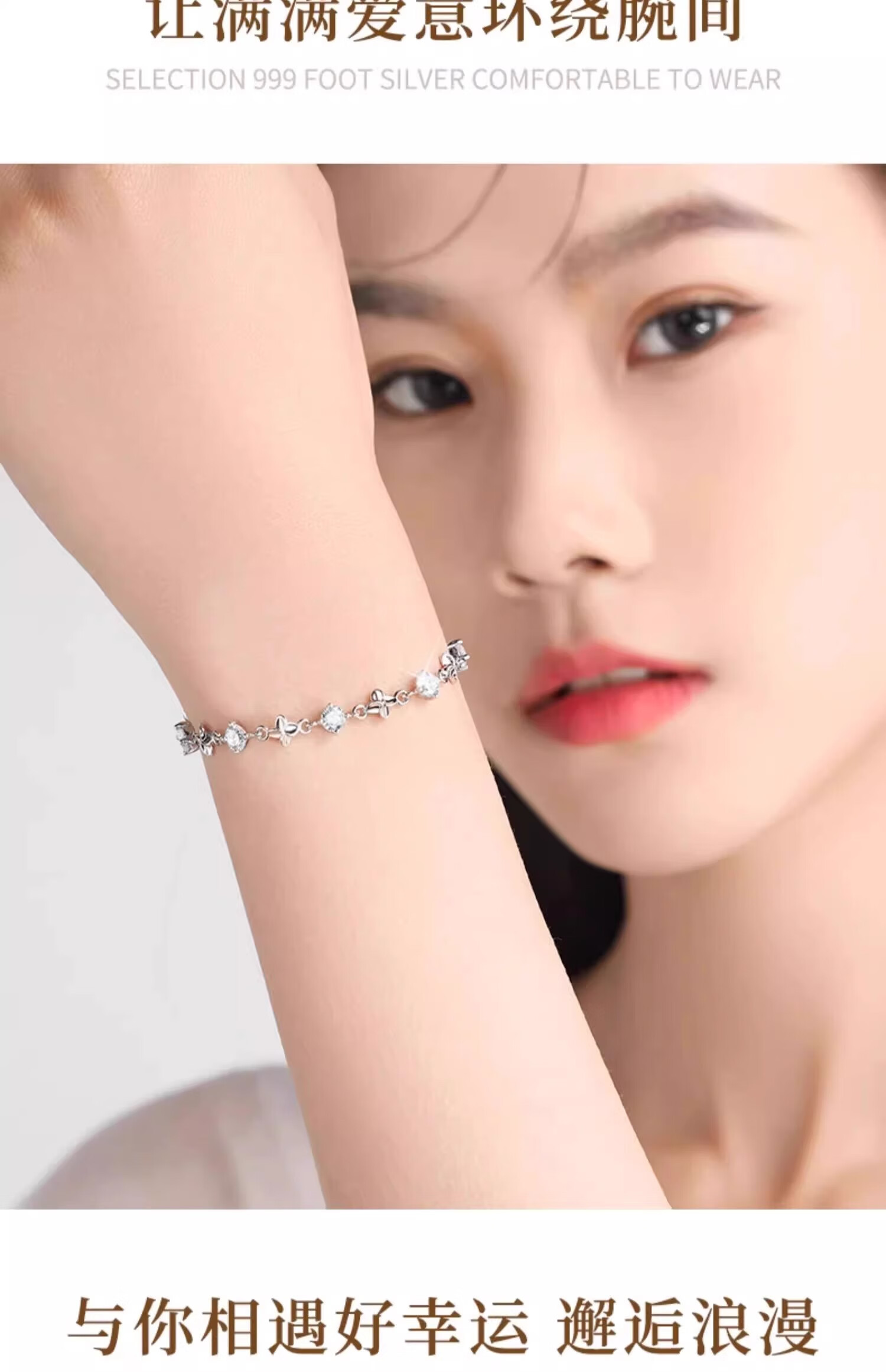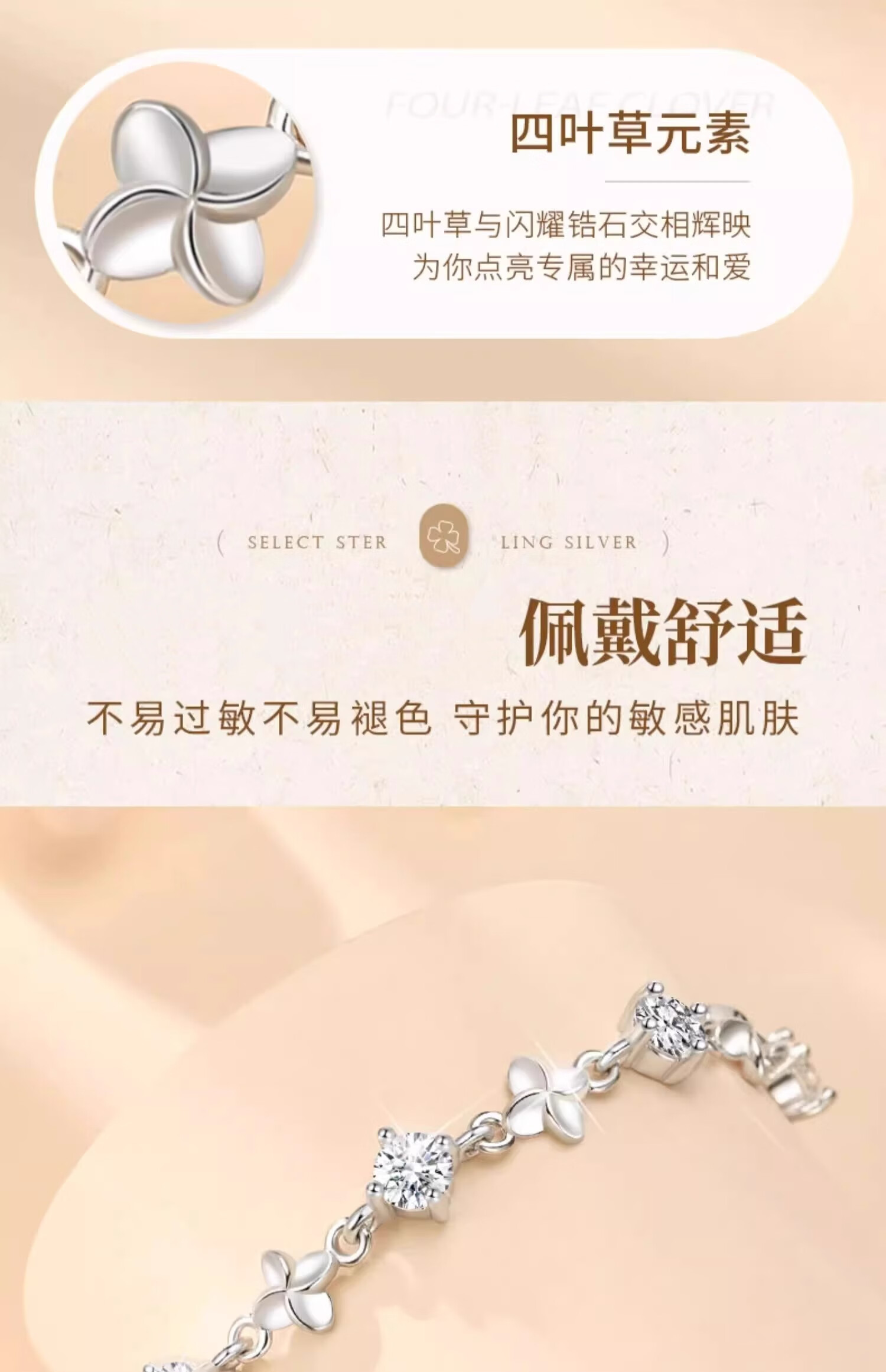 Four-leaf clover bracelet for women, light luxury niche birthday, Chinese Valentine's Day gift for girlfriend, sterling silver, platinum plated pt950, light luxury model - four-leaf clover bracelet, white diamond + rose gift box