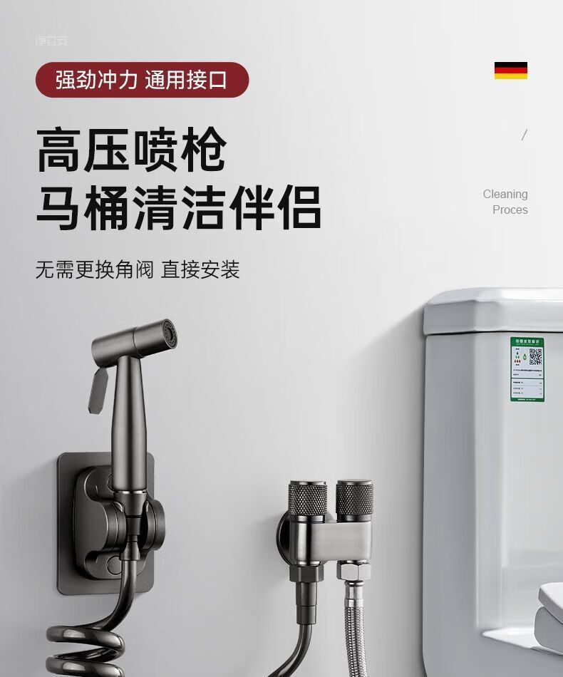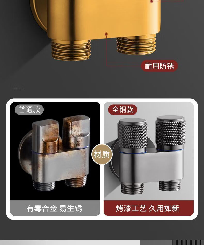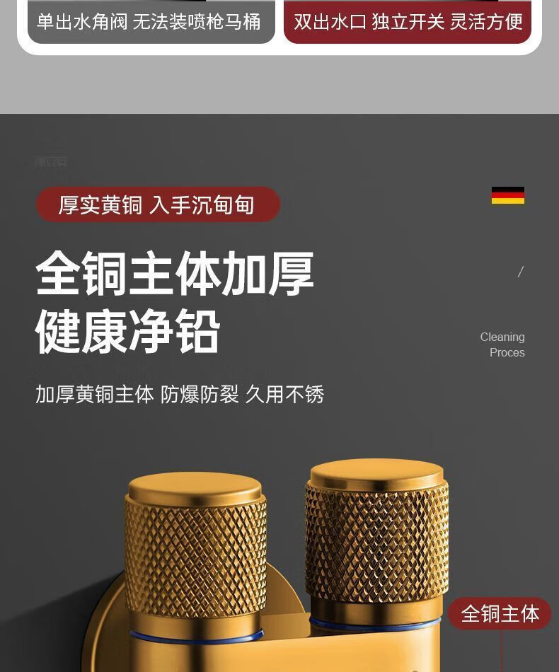 All-copper toilet companion one in and two out with spray gun angle valve bathroom double water outlet triangle valve three gun ash double control angle valve 304 spray gun set