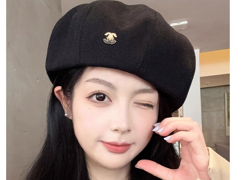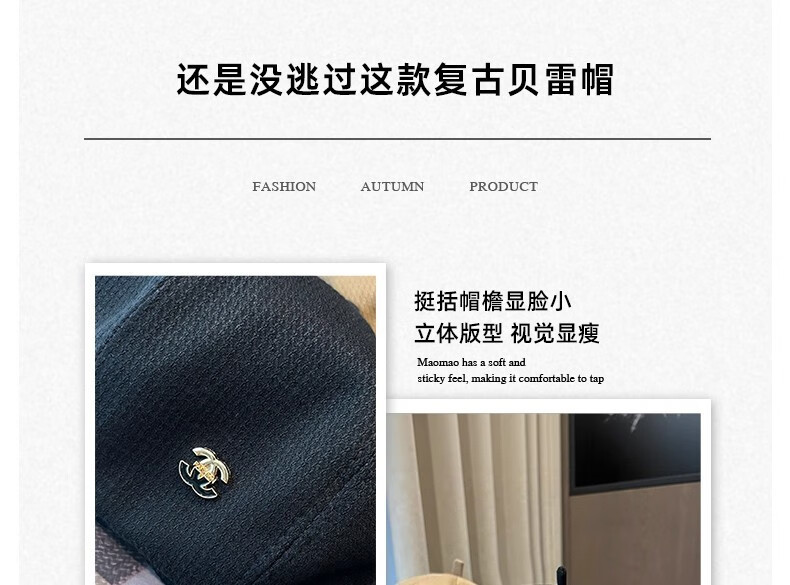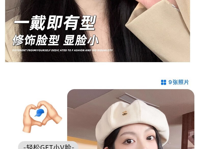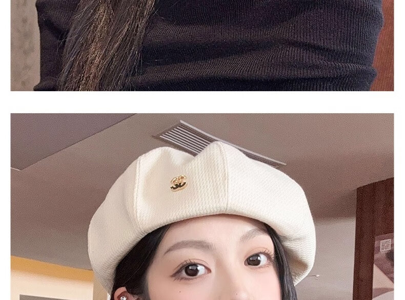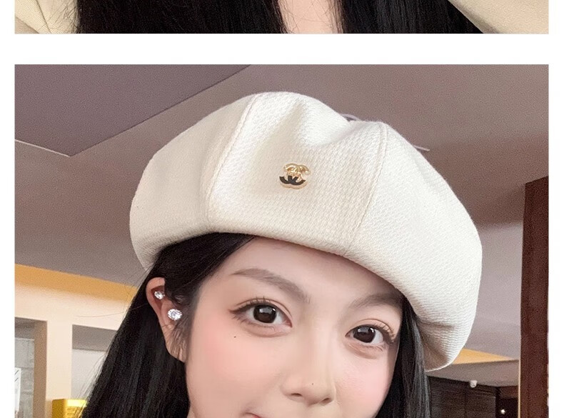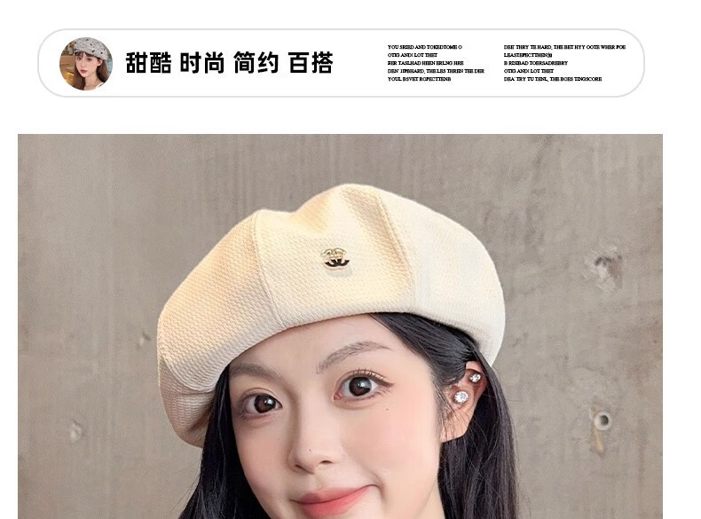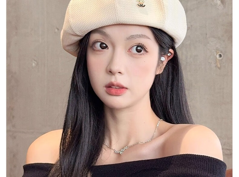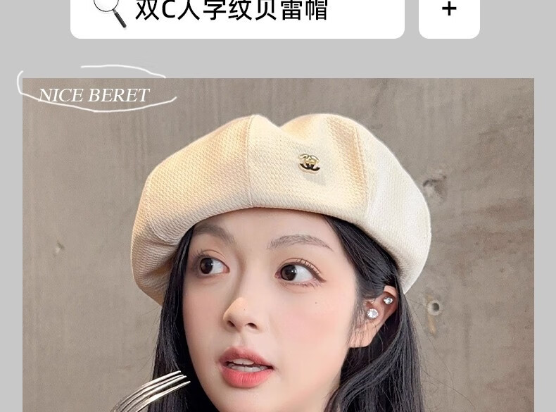 Nianzixue French beret for women 2025 is popular new style small fragrant style forward hat retro British style versatile octagonal hat off-white one size adjustable