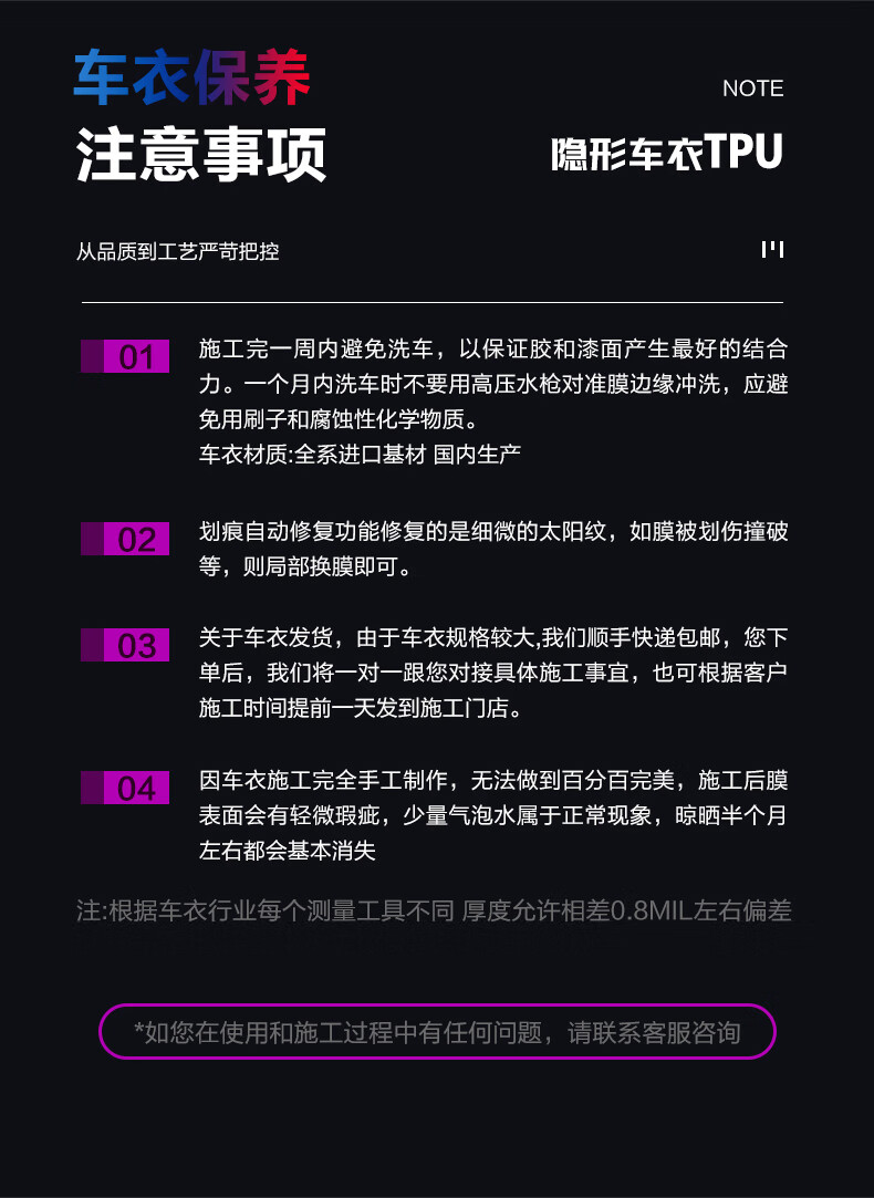 Warnes applicable invisible car film for Audi A6L A4L A5 A8L Q5L Q7 Q8 TPU paint protection film TPU material 8.5MIL brightening version Ten-year warranty