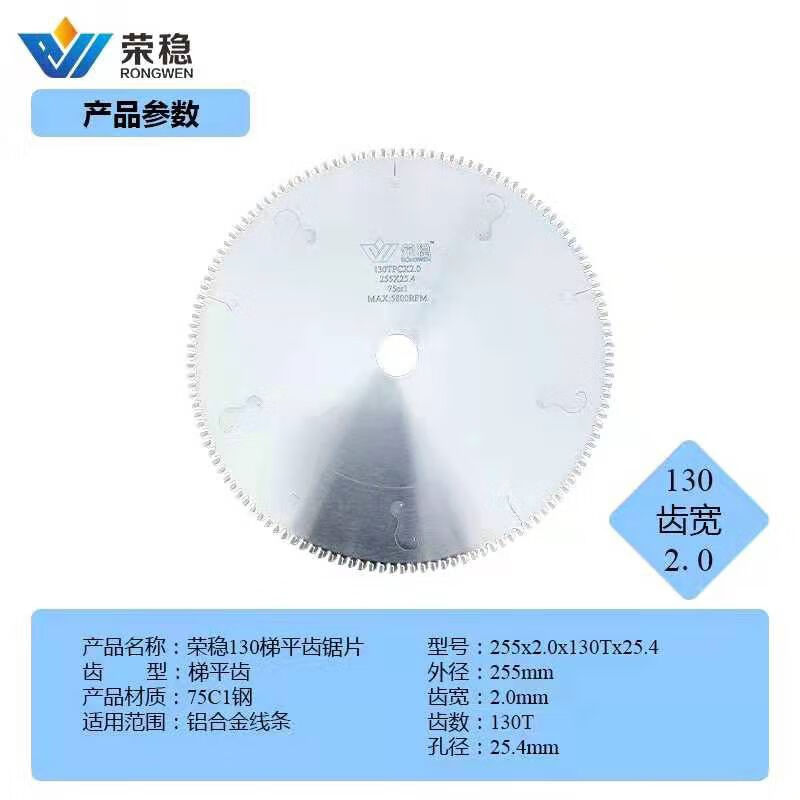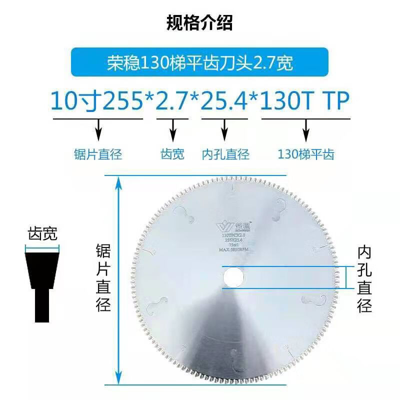 Rongwen 10-inch 130-tooth integrated ceiling aluminum alloy corner line aluminum line special saw blade ladder flat tooth new model 130T wide 2 points 2 boutique-grade sharp and smooth