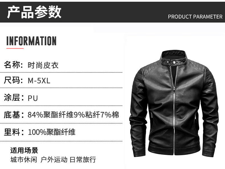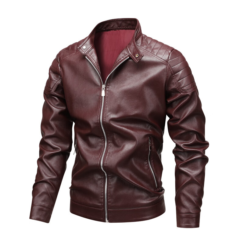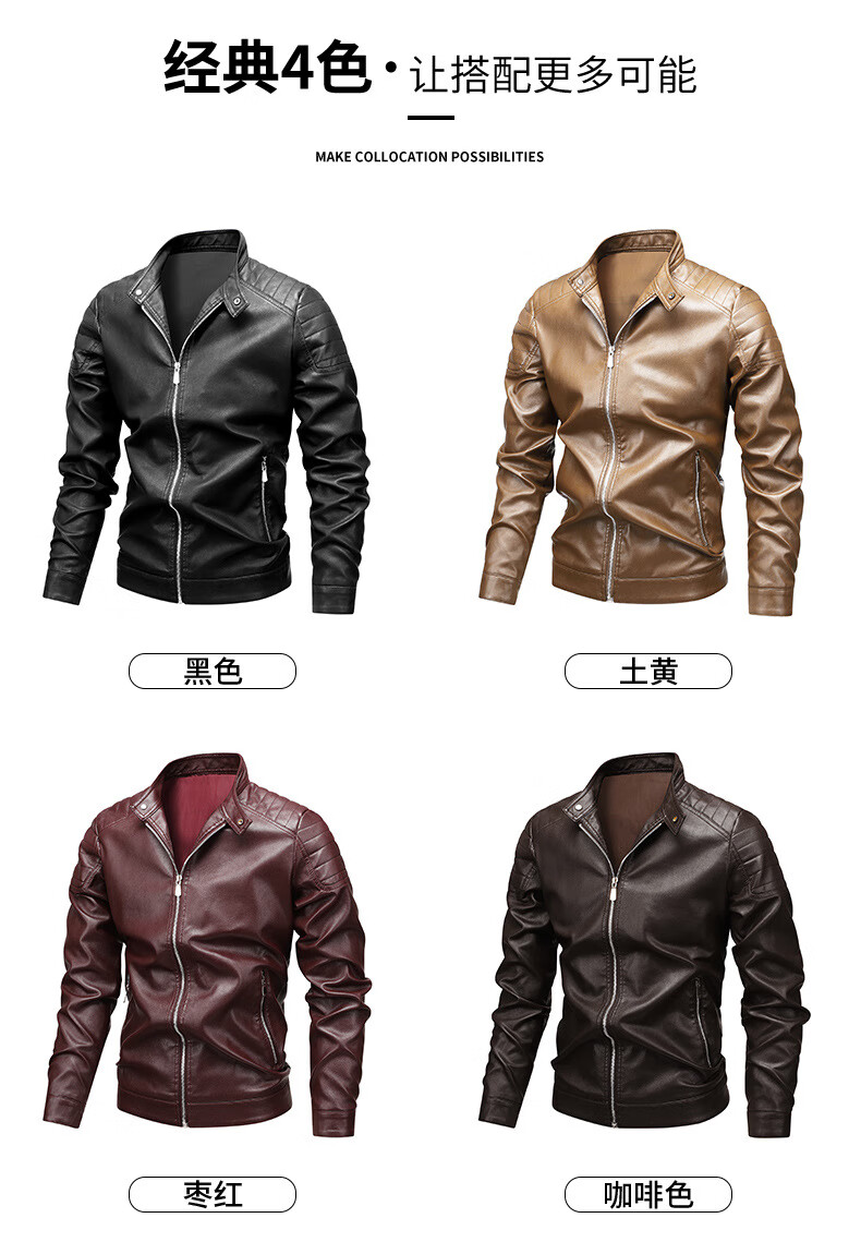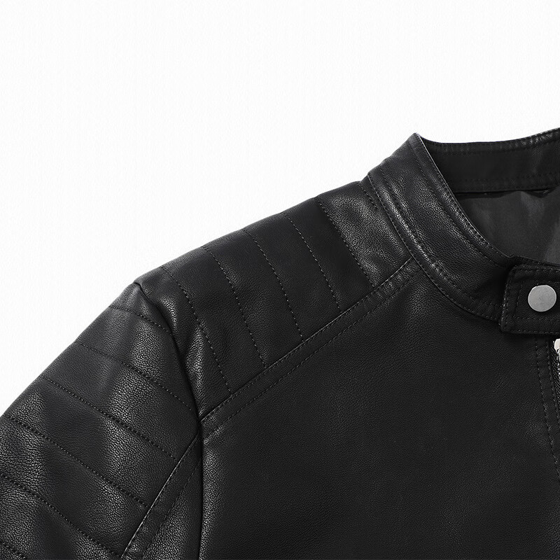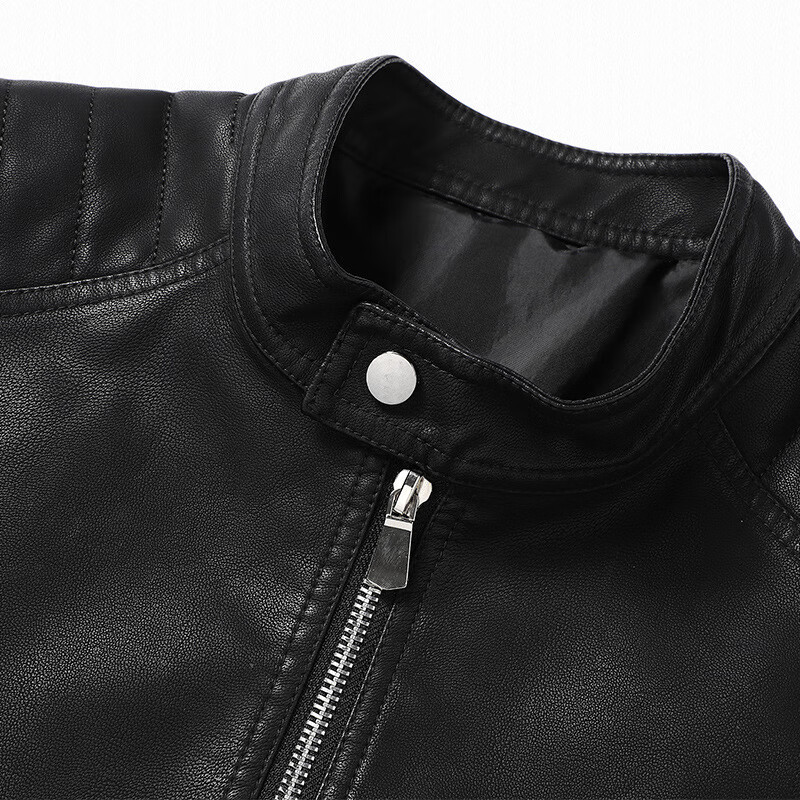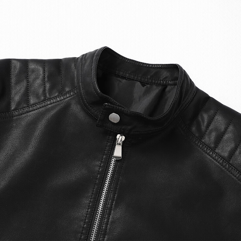 Customized Jen-Hsun Huang's same style leather jacket, motorcycle jacket, stand collar, spring and autumn collarless pocket British style jacket, black single lining XL