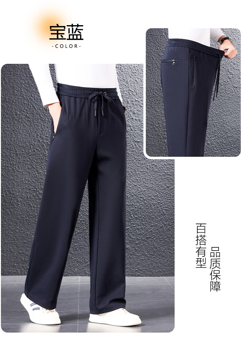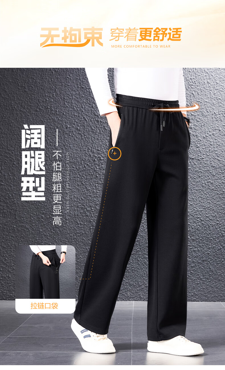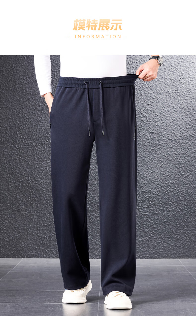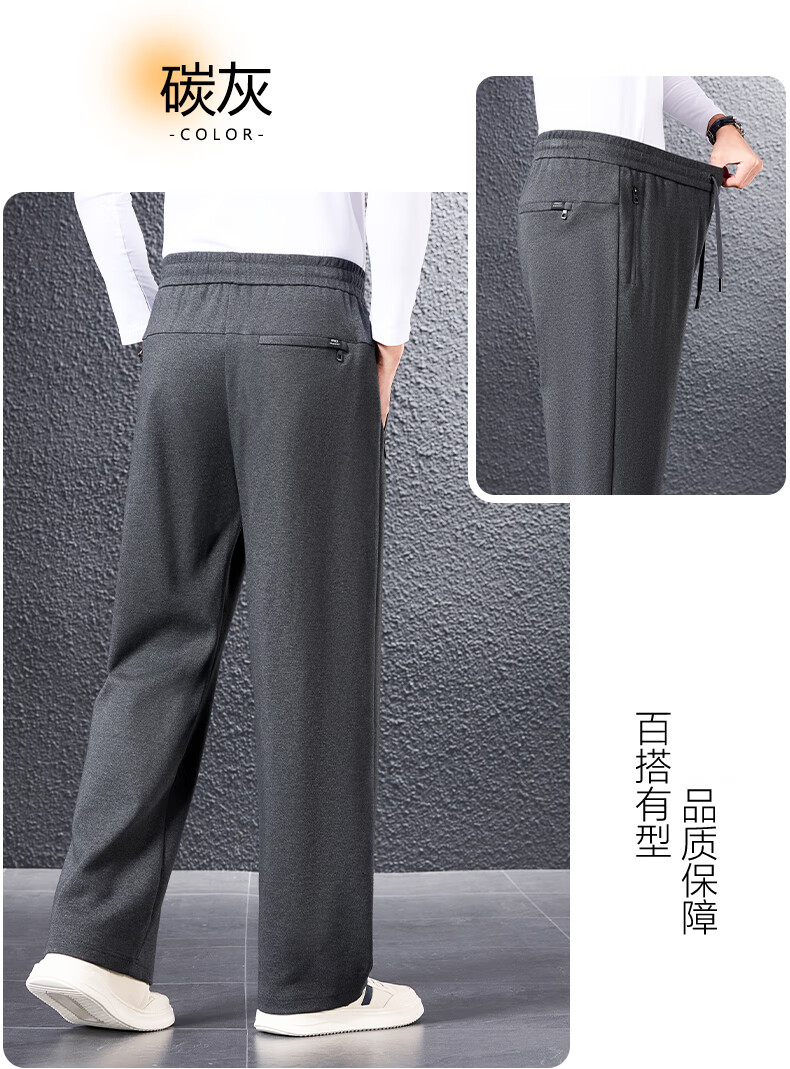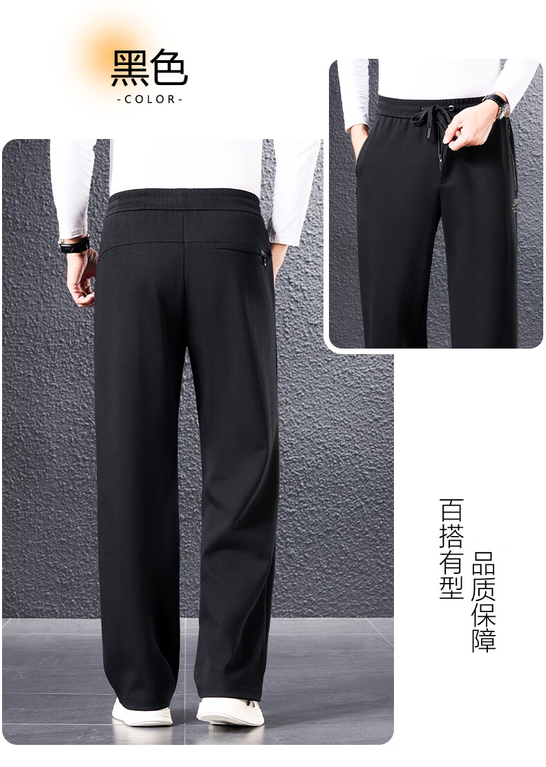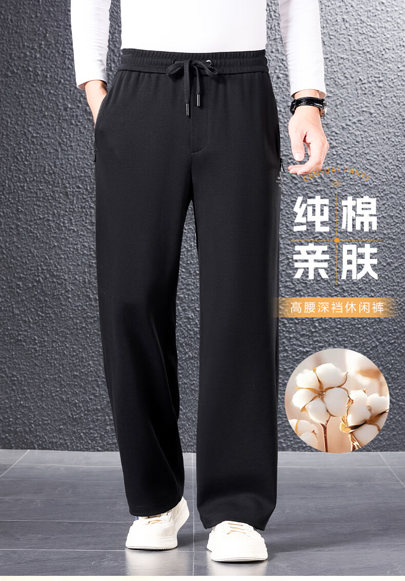 International Miller high-end pure cotton spring and autumn wide-legged men's casual pants straight-leg loose middle-aged sports pants men's autumn pants men's black skin-friendly | vertical | crisp Spot and fast M Recommended weight (110-130Jin Jin equals 0.5 kg) Spot and fast