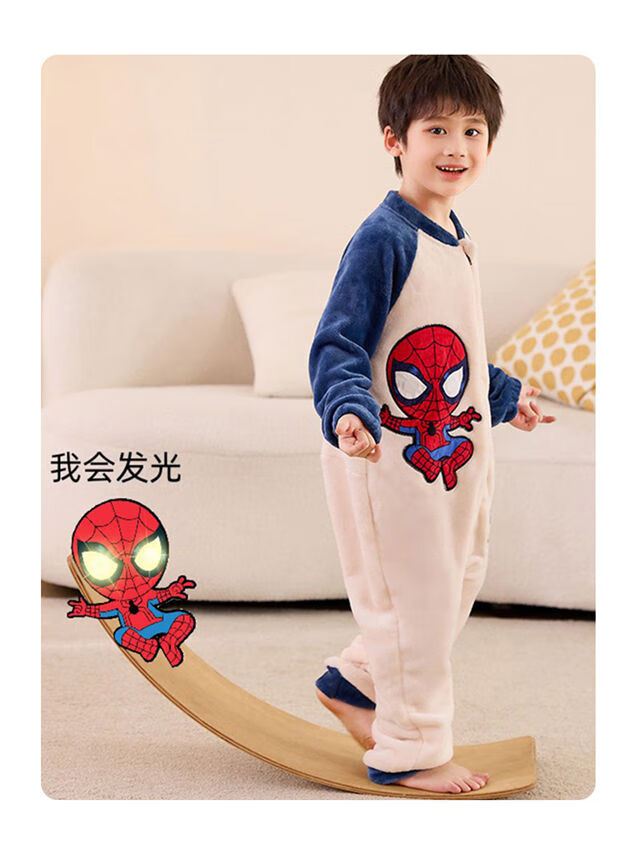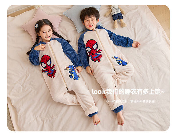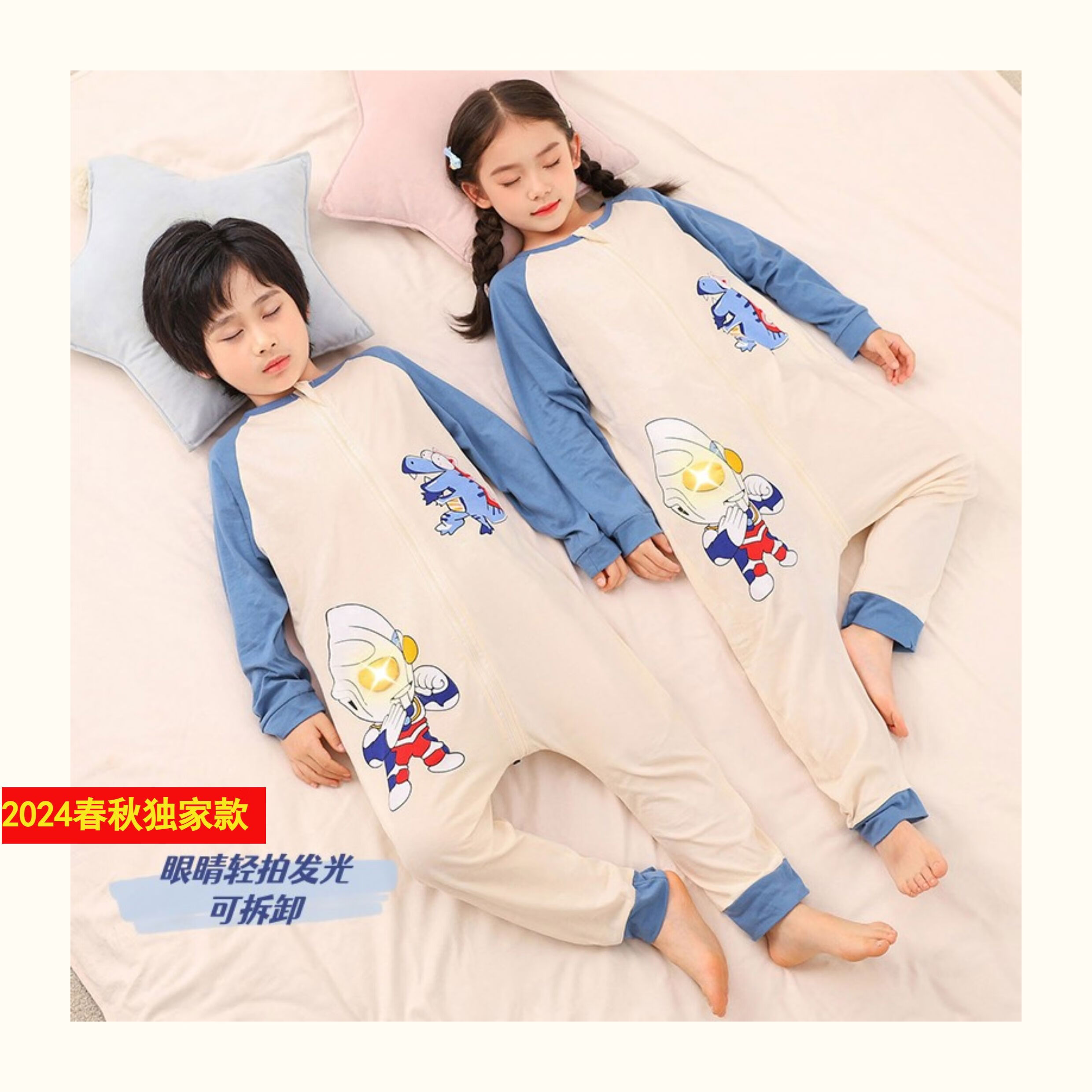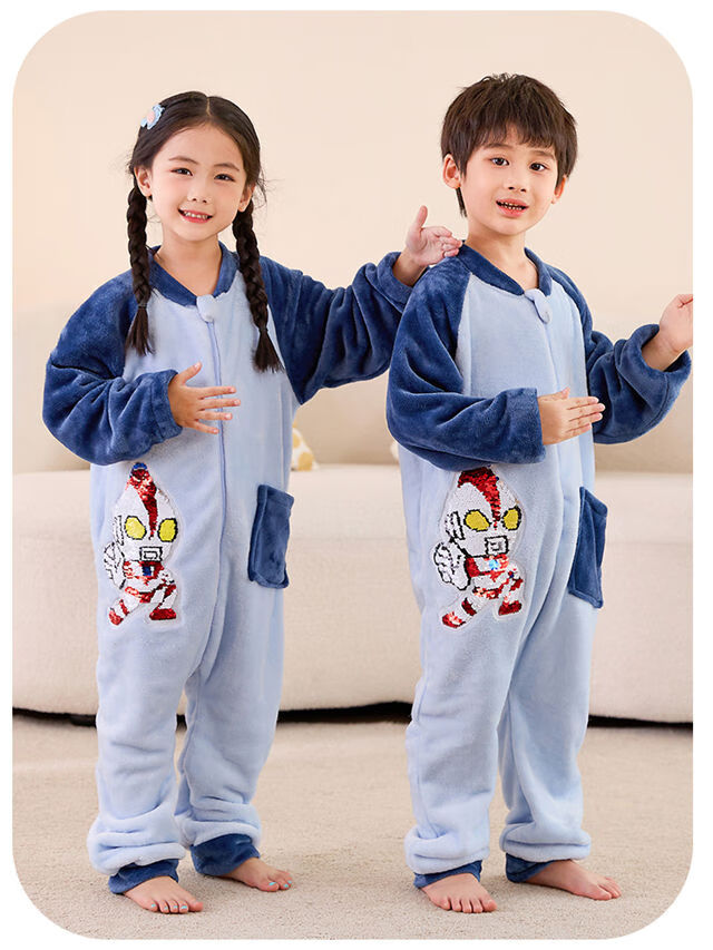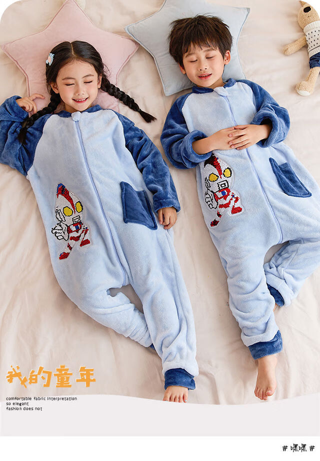 Ultraman men's and large children's flannel one-piece pajamas autumn and winter thickened boy baby children's coral velvet sleeping bag Ultraman men's thin style 125
