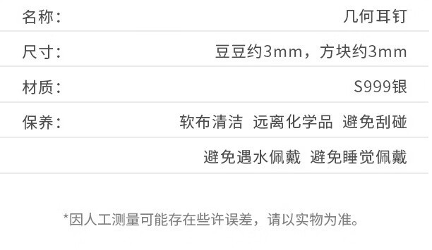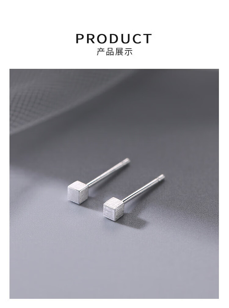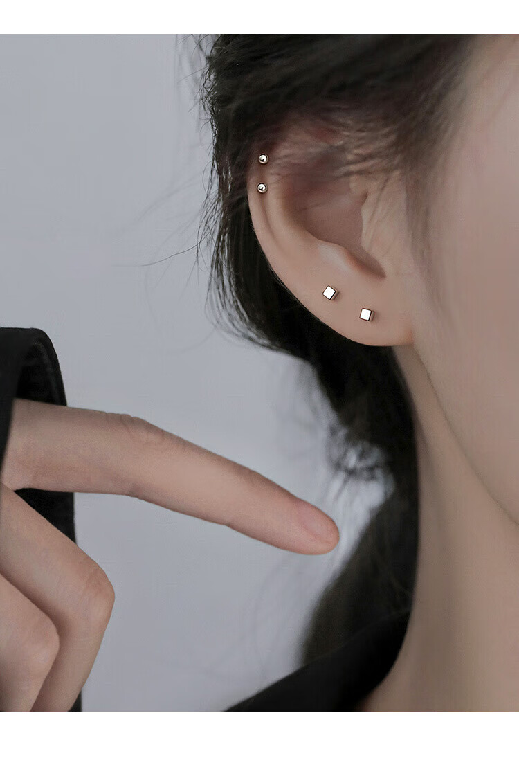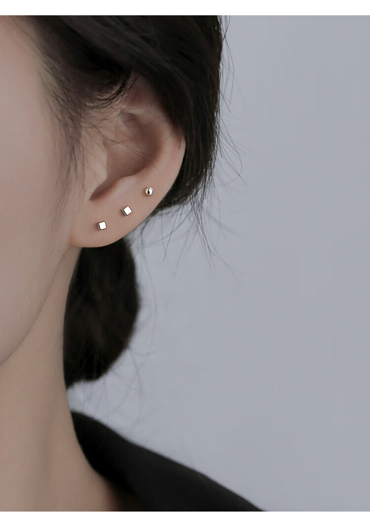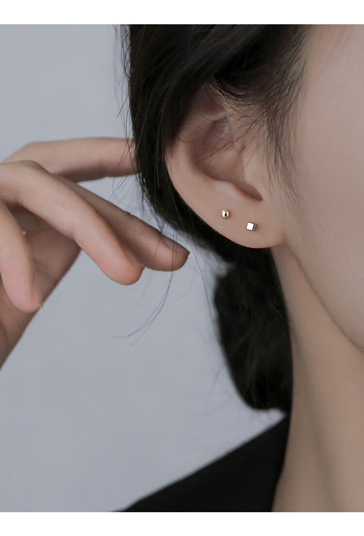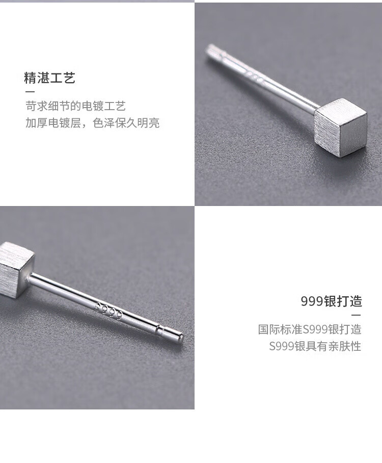 Kaximu S999 Sterling Silver Earrings for Ear Hole Earrings 2025 New Earrings Ear Sticks Ear Bone Nails Anti-Blocking Earrings for Women 999 Pure Silver Square 3mm + Round 3mm Two Pairs Gift Box