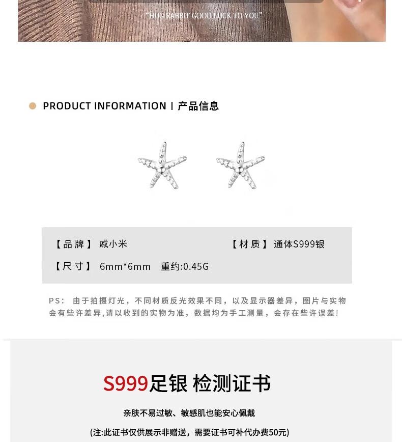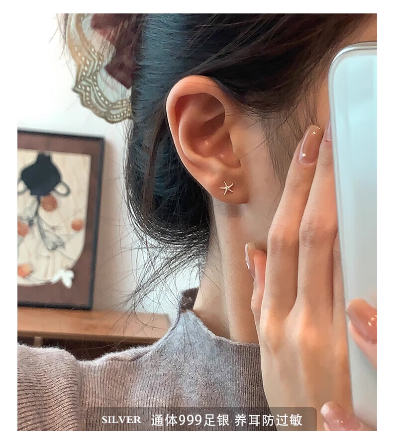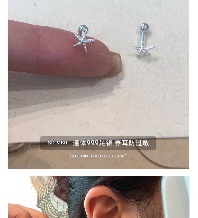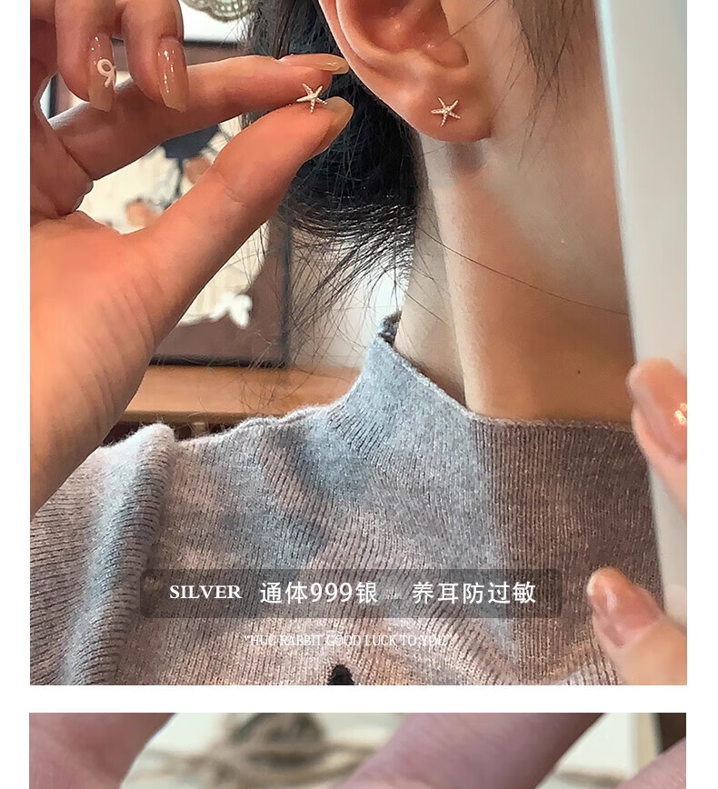 QMXD Starfish 999 Sterling Silver Earrings Women's Ear Piercing Earrings 2025 New Advanced Screw Buckle Earrings for Sleeping No need to Take Off Starfish Earrings Pair 999 Pure Silver + Silver Screw Ear Plugs