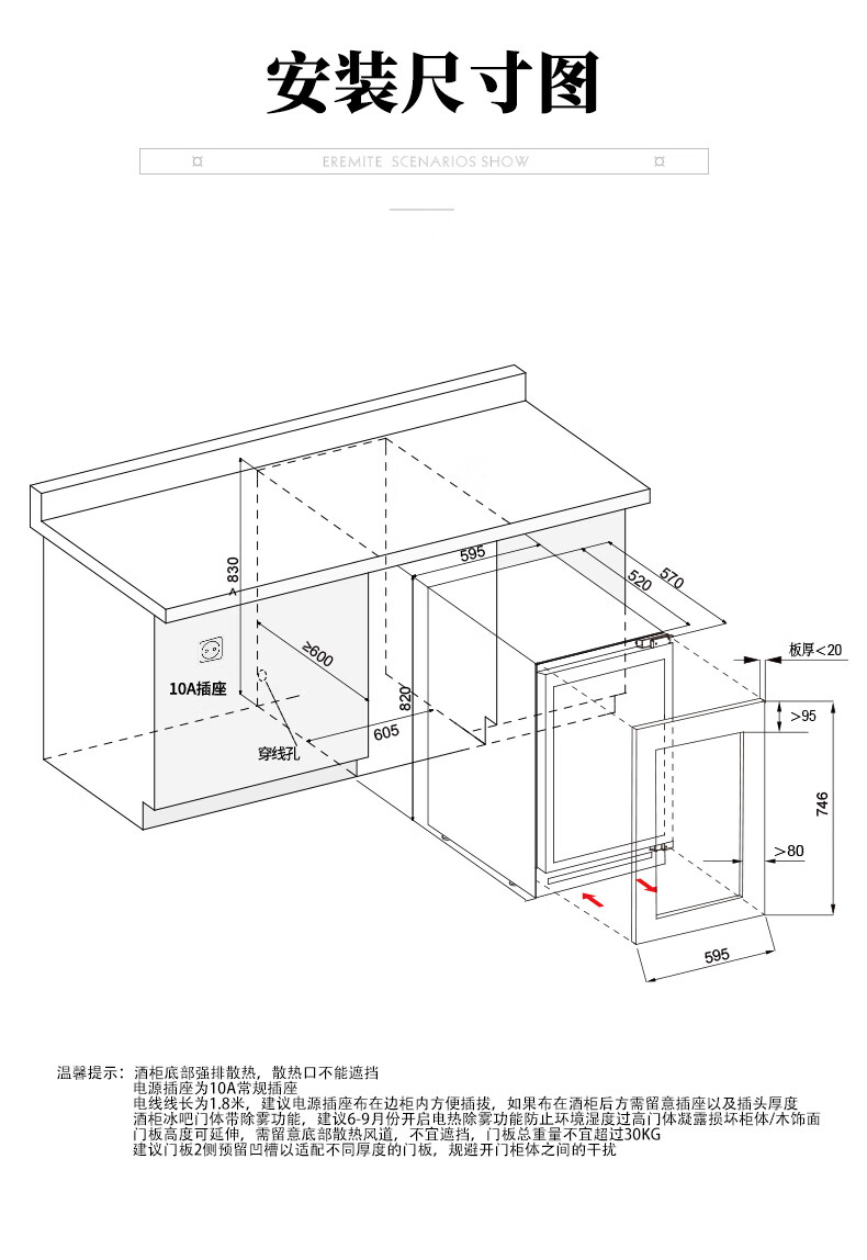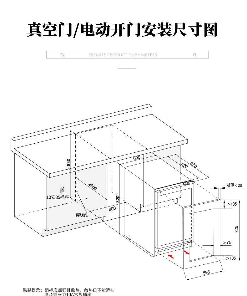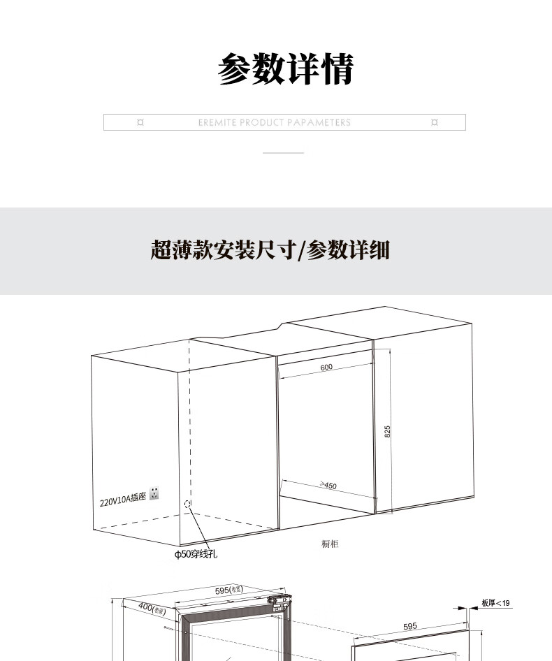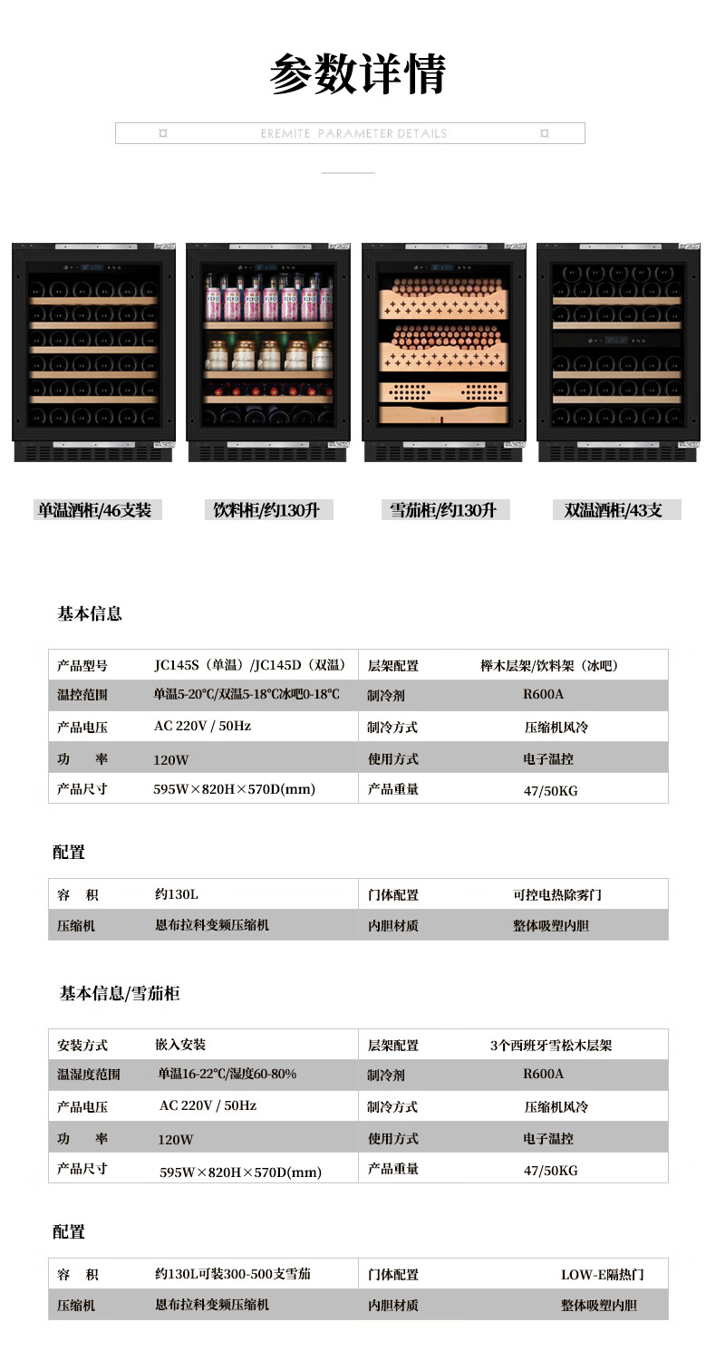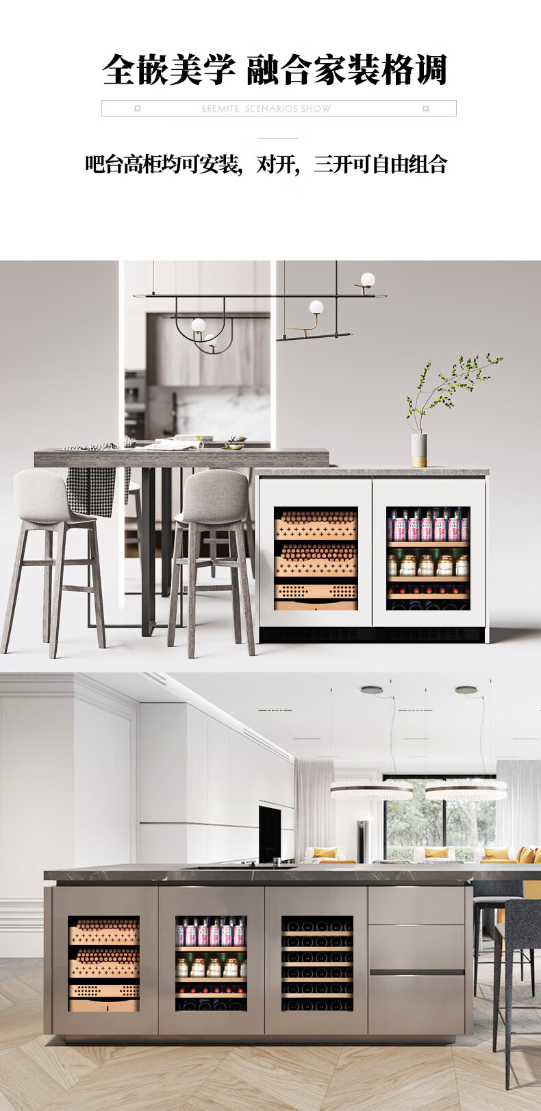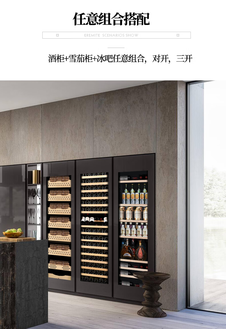 EREMITE Bar Embedded Wine Cabinet Constant Temperature Wine Cabinet Constant Temperature and Humidity Cigar Cabinet Beverage Cabinet Refrigerated Tea Cigar Cabinet Freezer External Door Panel Embraco Frequency Converter 400 Depth Ice Bar/Ultra-Thin Model/High-end Vacuum Door (Pre-ordered) 85L
