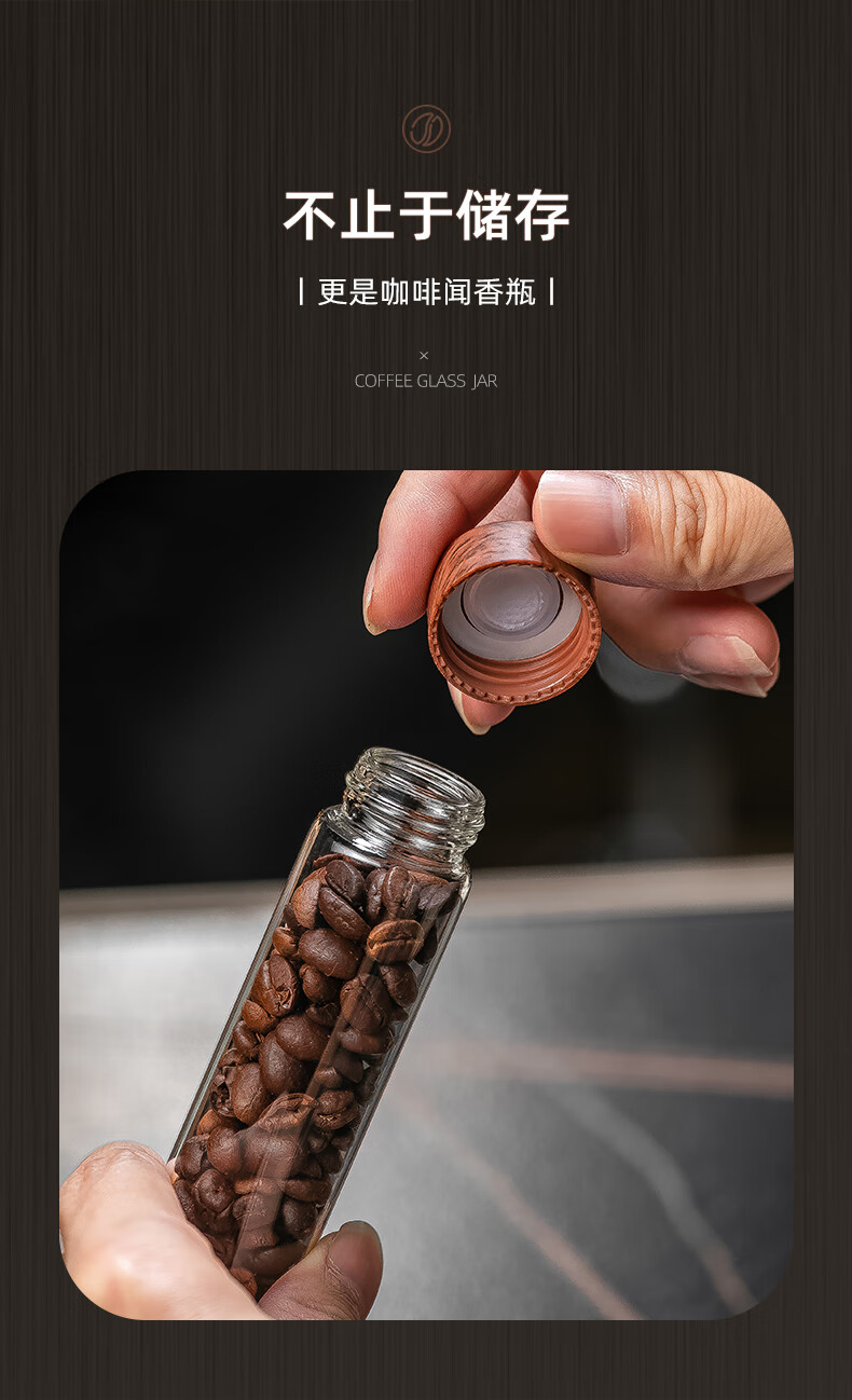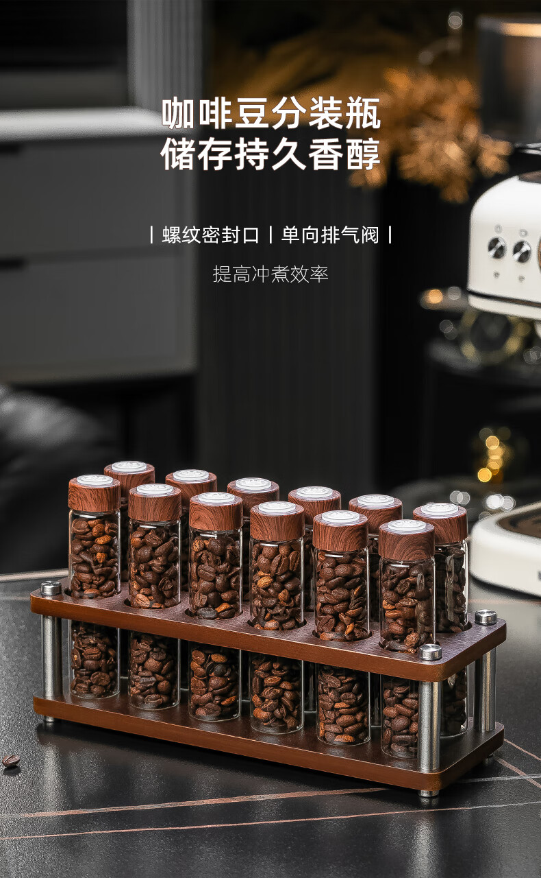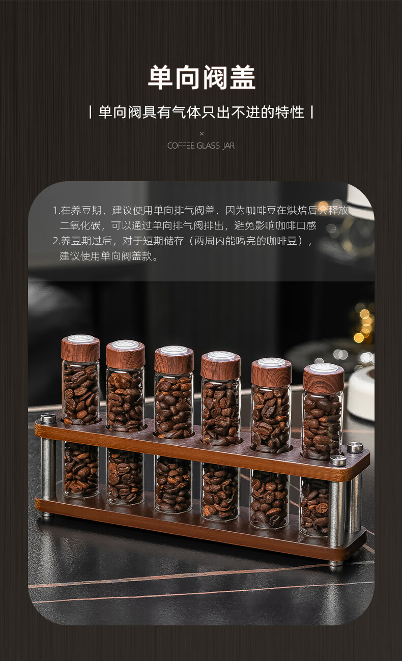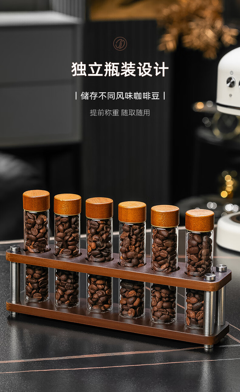 CRISTALGLASS Coffee Bean Dispensing Test Tube Sealed Bottle Single Dispensing Bottle Sealed Storage Can Coffee Can Display Rack Smell Bottle Automatic Venting Cap Bottle 6 Pack + Storage Rack