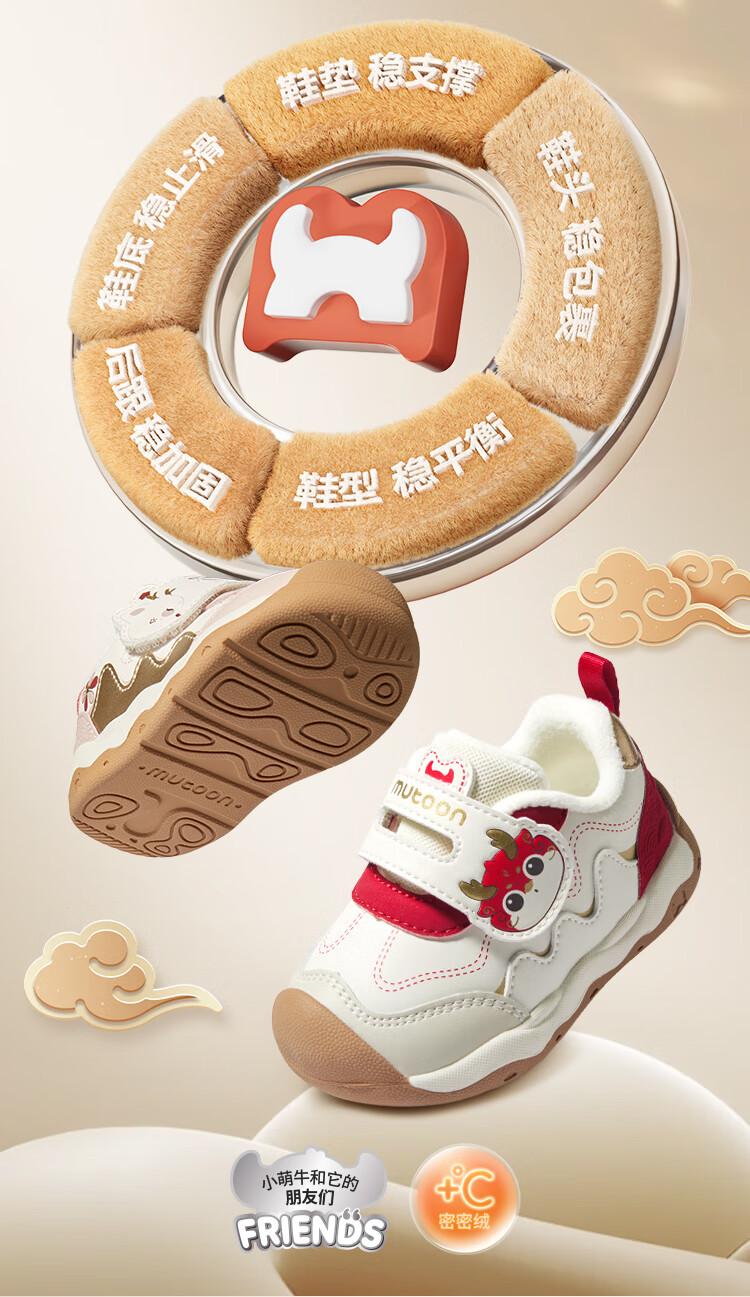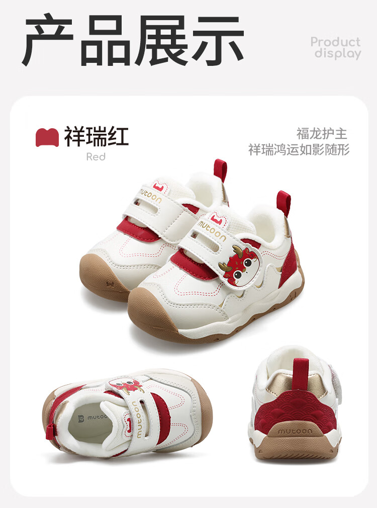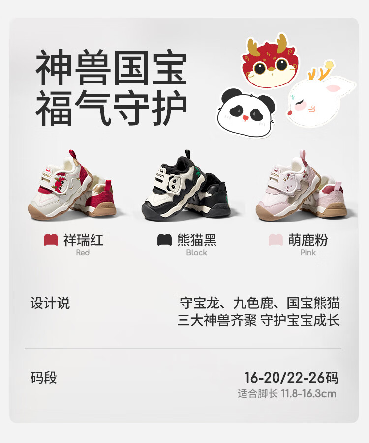 Shepherd boy mythical beast and national treasure baby toddler shoes 2025 winter new cartoon girls plus velvet warm cotton shoes boys shoes auspicious red 23 shoe inner length 15.3cm/suitable for feet 14.8cm