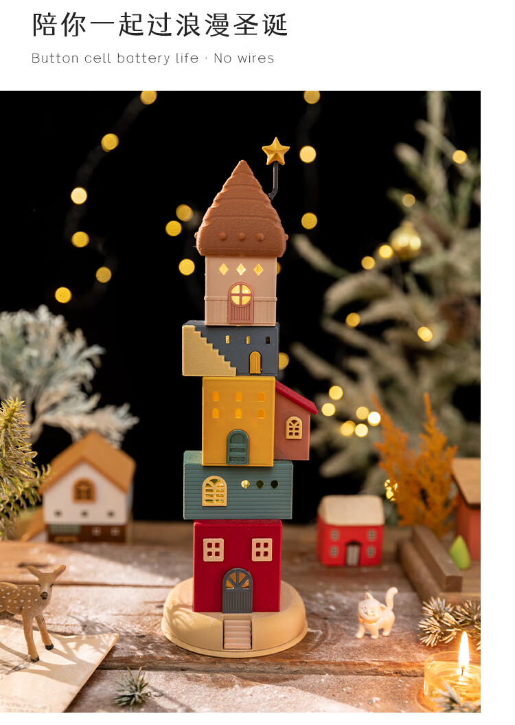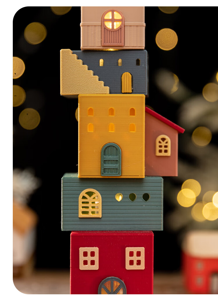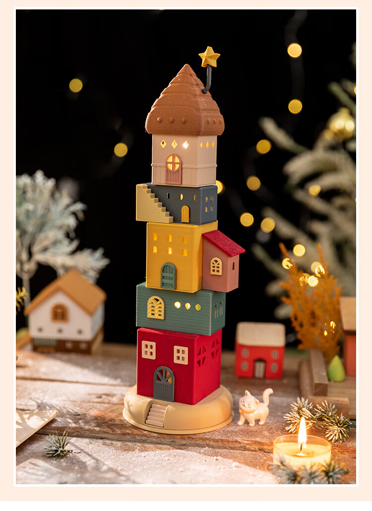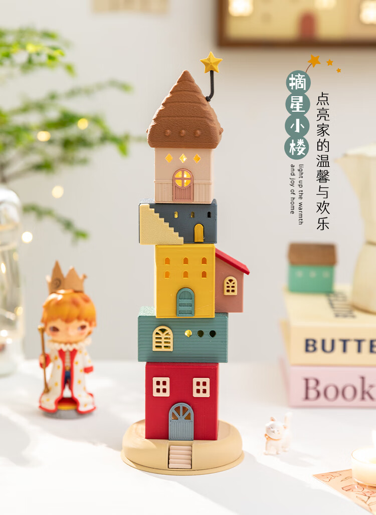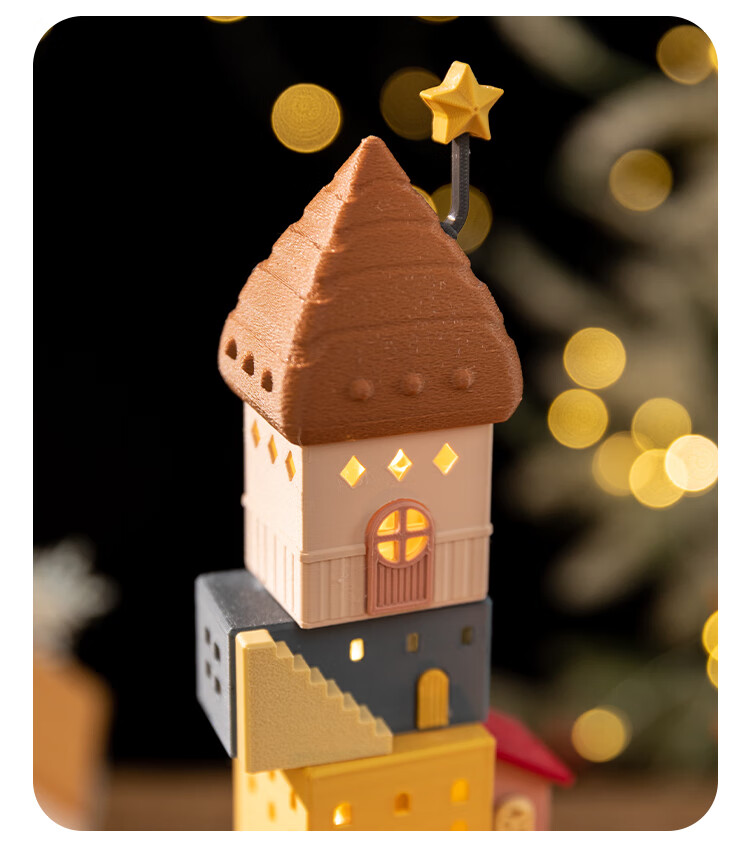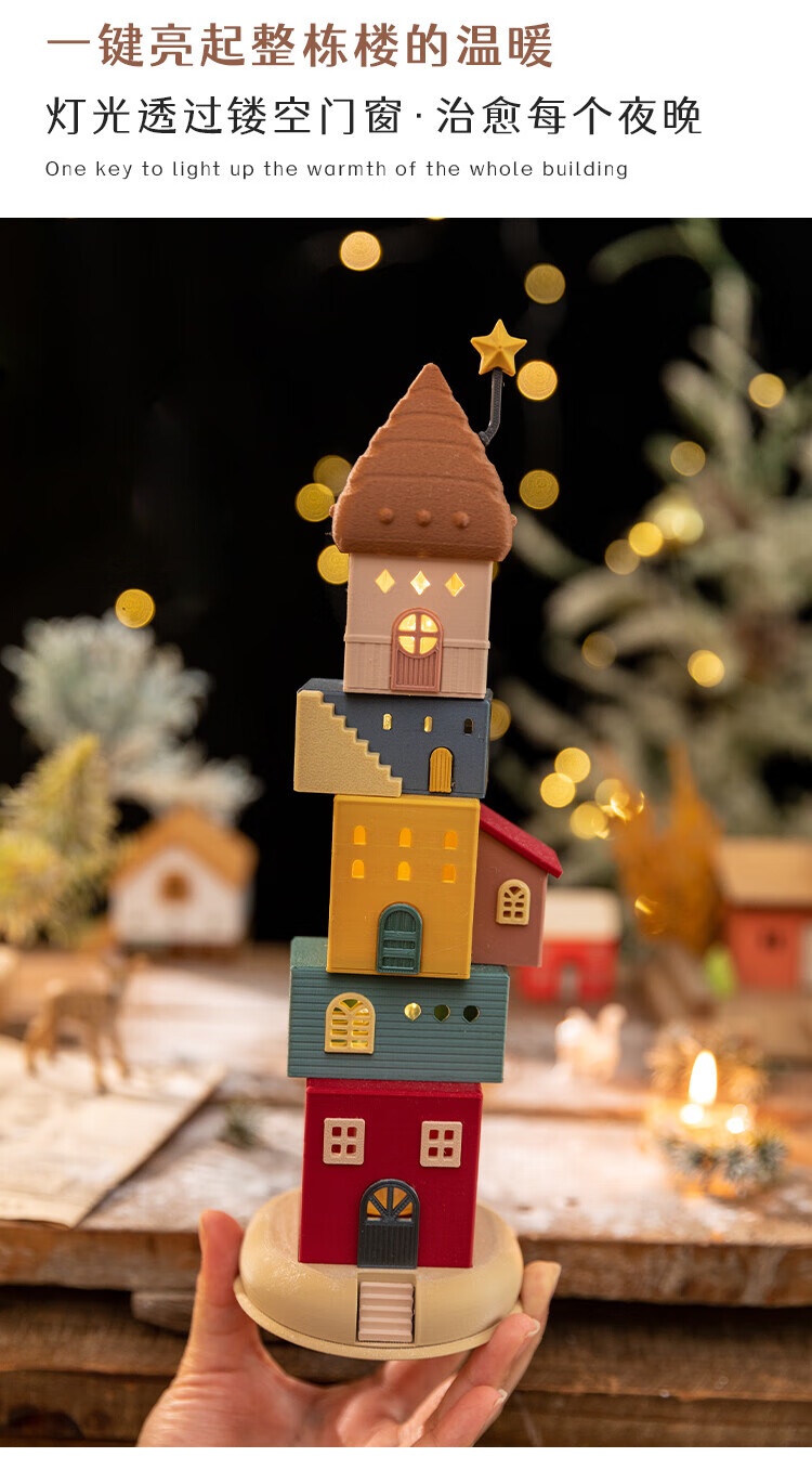 A Ying Home Decoration AYING Cartoon Landscaping House Work Station Entrance Cabinet Desk Children's Room Toys Small Ornaments Luminous Christmas Gifts Star Reaching Building