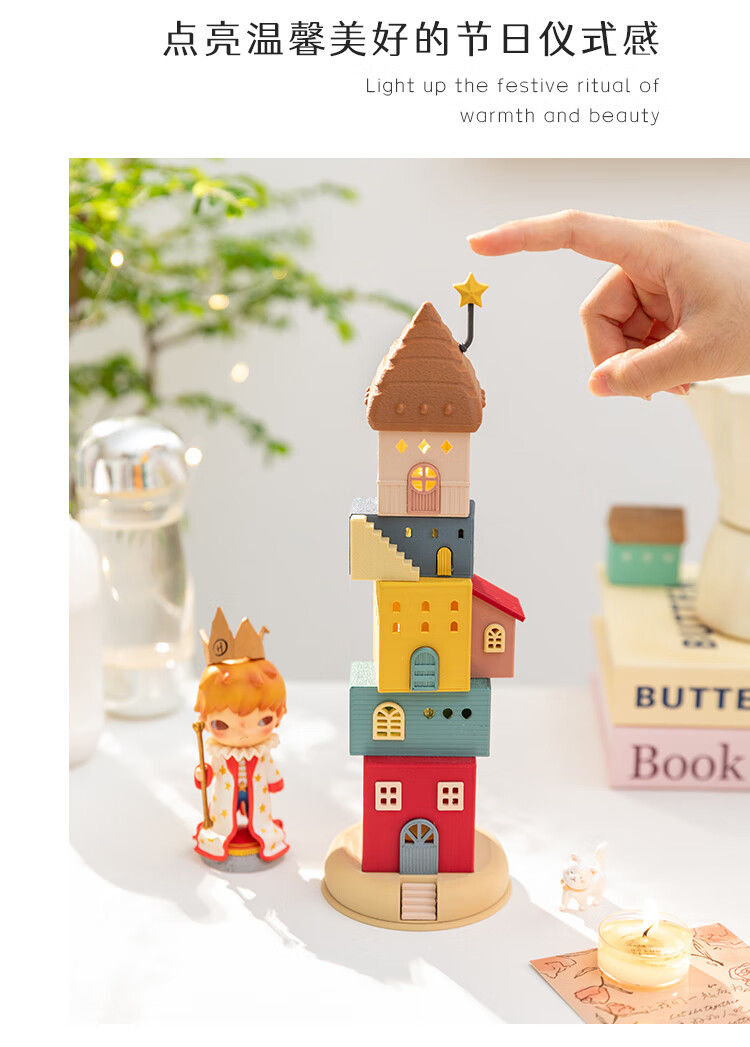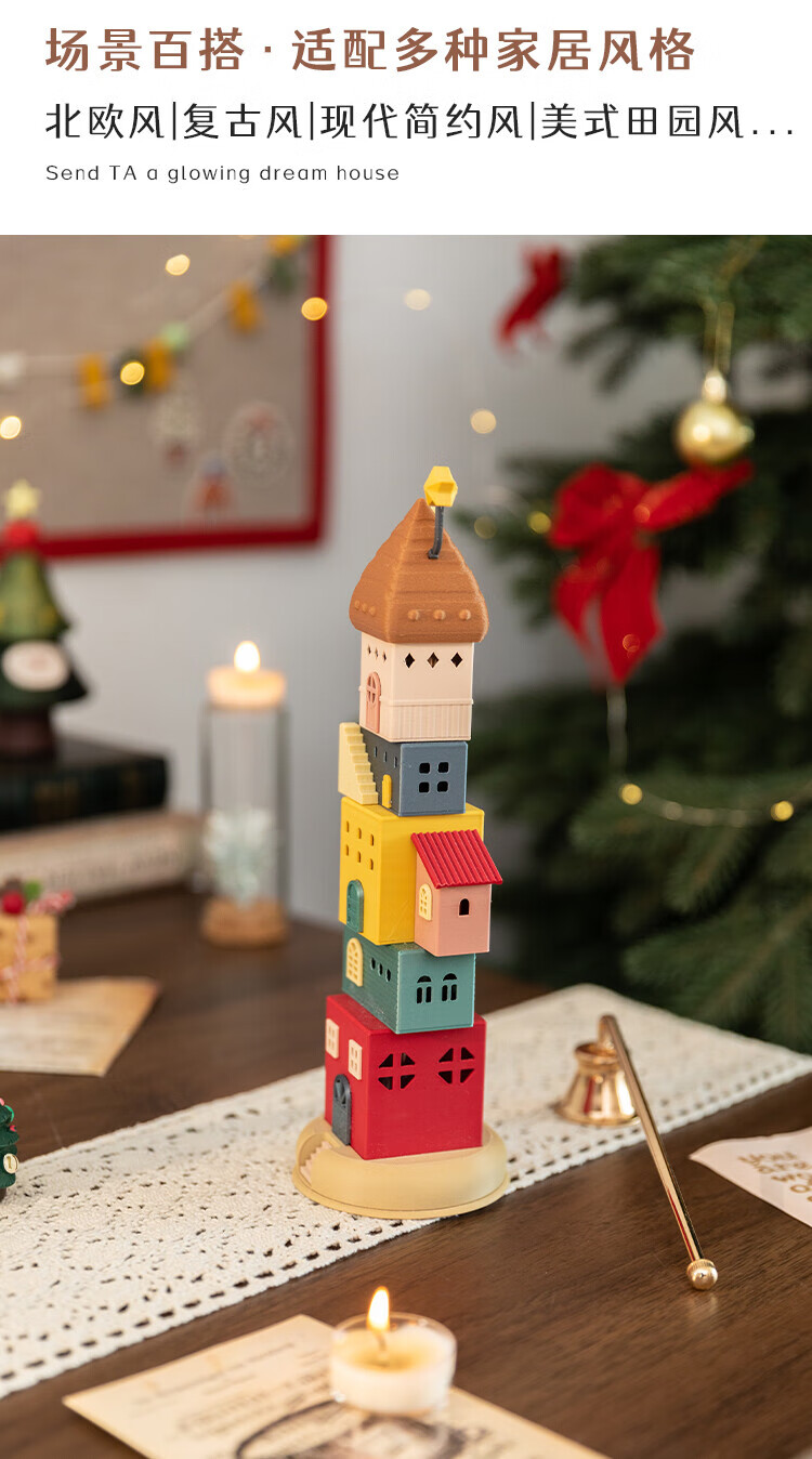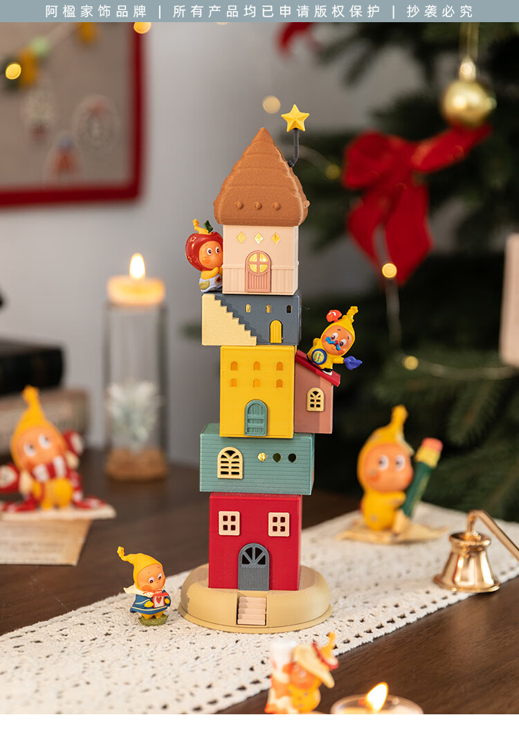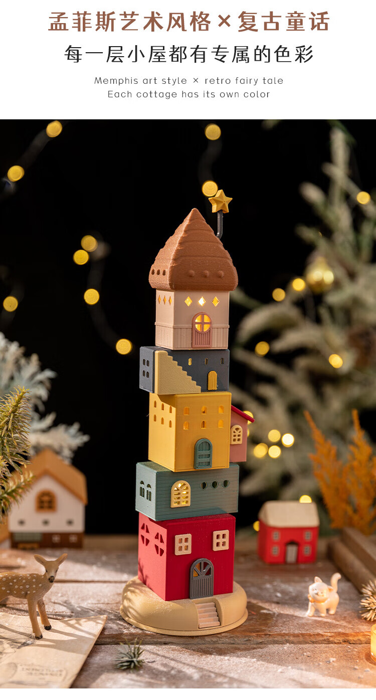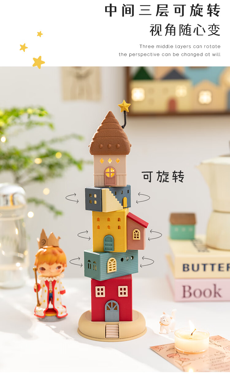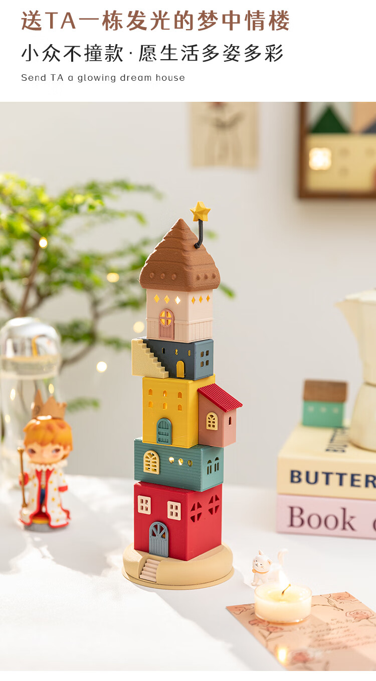 A Ying Home Decoration AYING Cartoon Landscaping House Work Station Entrance Cabinet Desk Children's Room Toys Small Ornaments Luminous Christmas Gifts Star Reaching Building