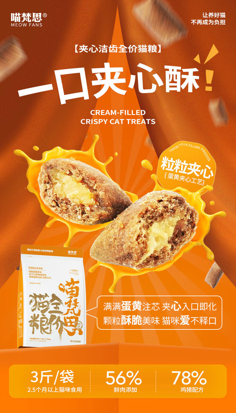 Miaofansi full price gluten-free egg yolk sandwich cat food for adult and young cats, universal tooth cleaning and bad breath relief 15kg bag, sandwich cat food 1 point 5kg*1 bag 1 point 5kg bag