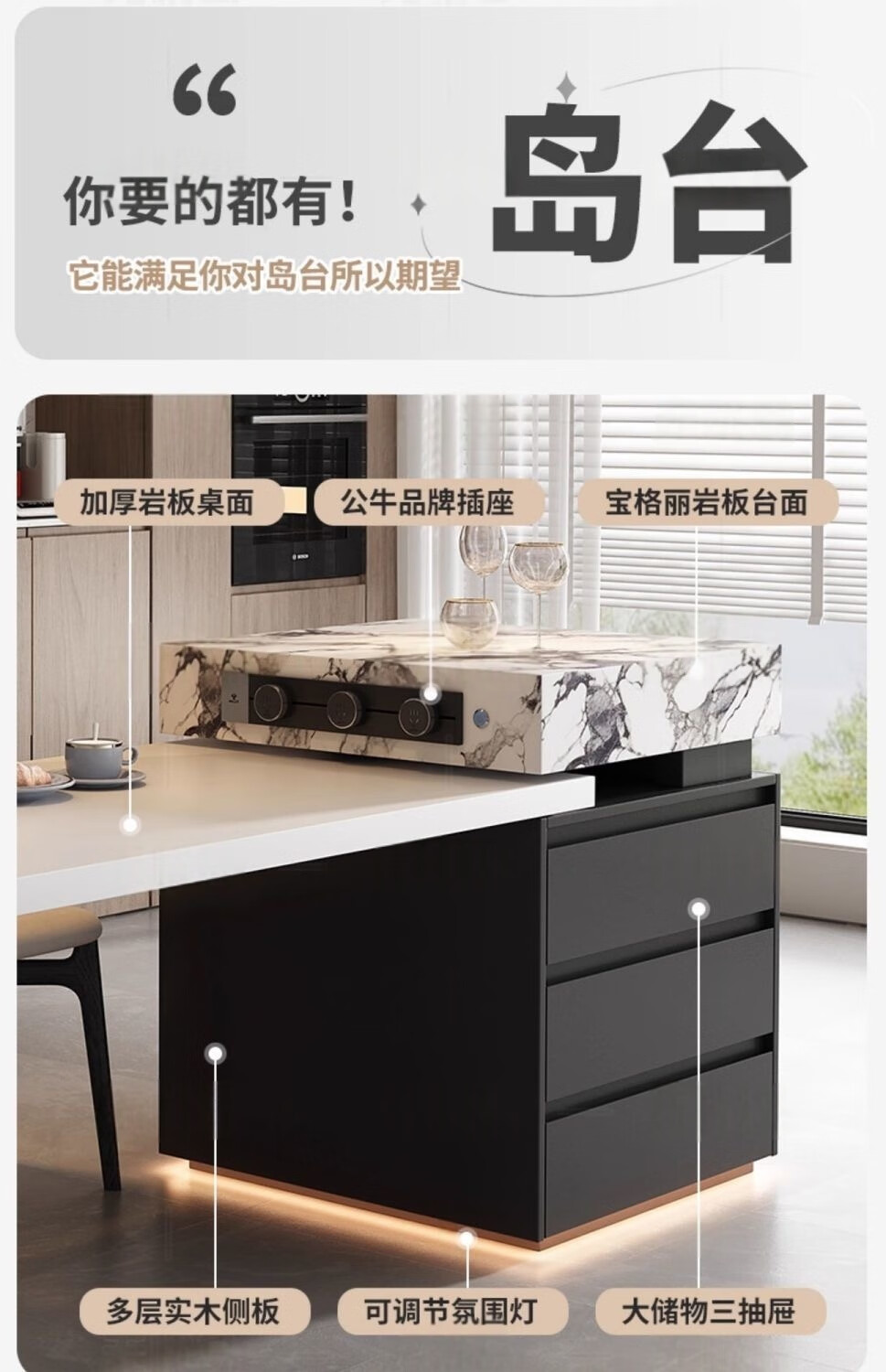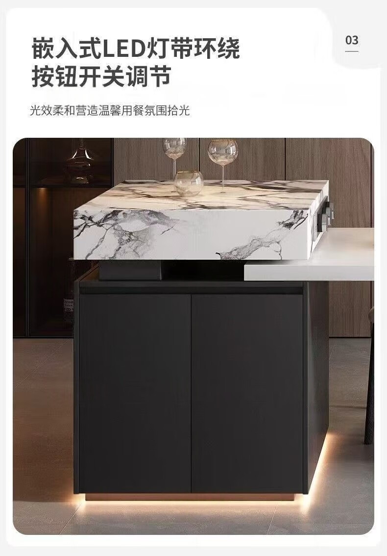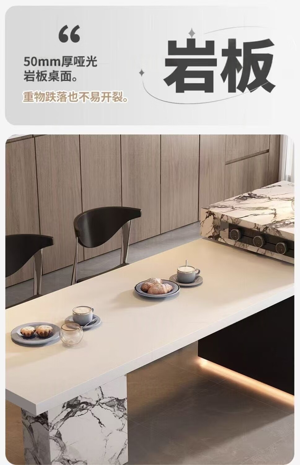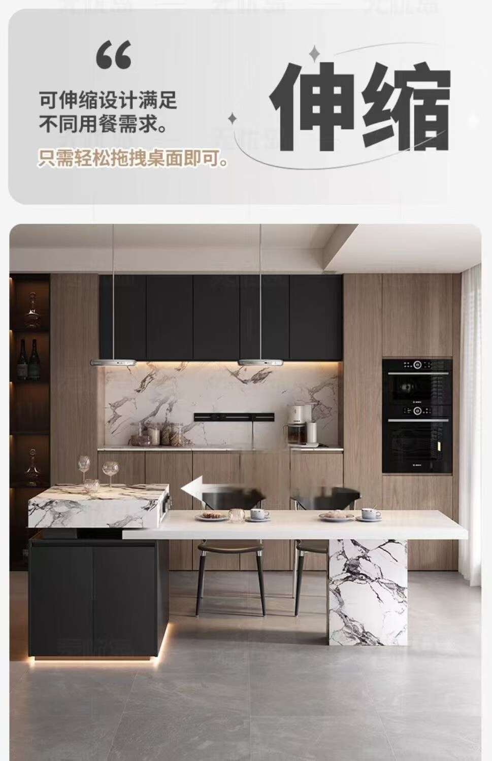 Italian minimalist high-end island dining table integrated retractable high-end slate large-sized medium-sized kitchen countertop island dining table + flat version (track socket) 2 meters one table and four chairs (Eames chair)