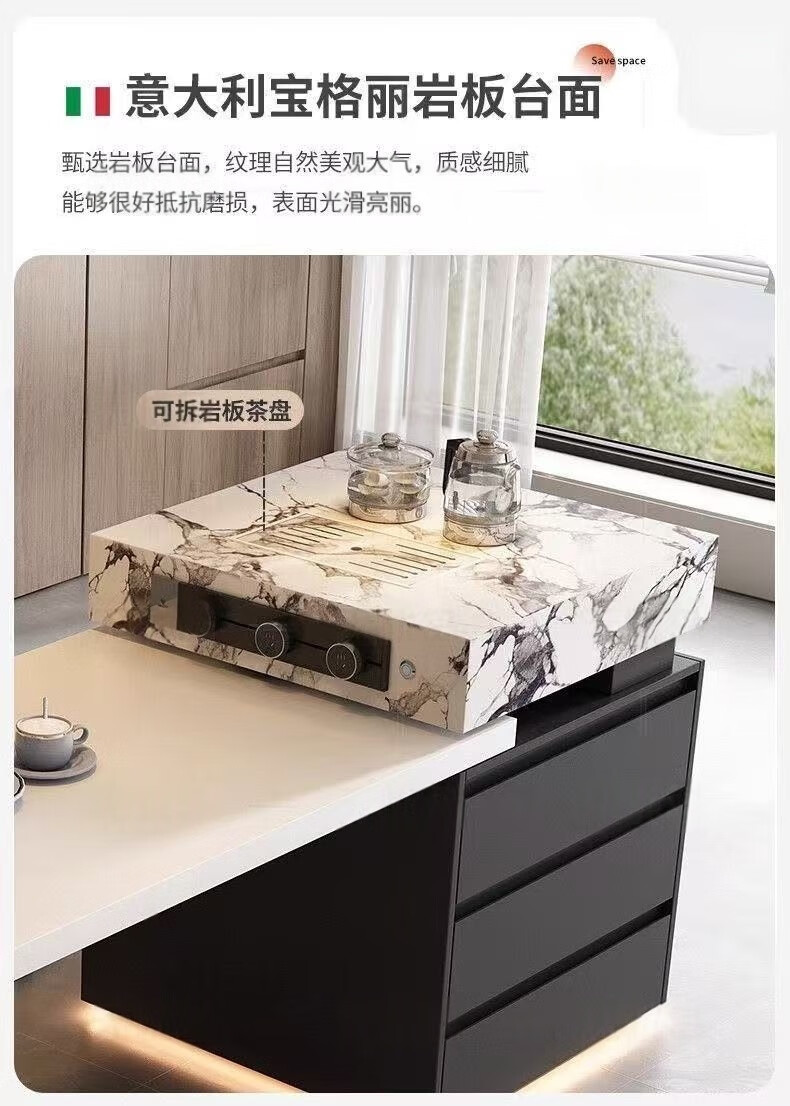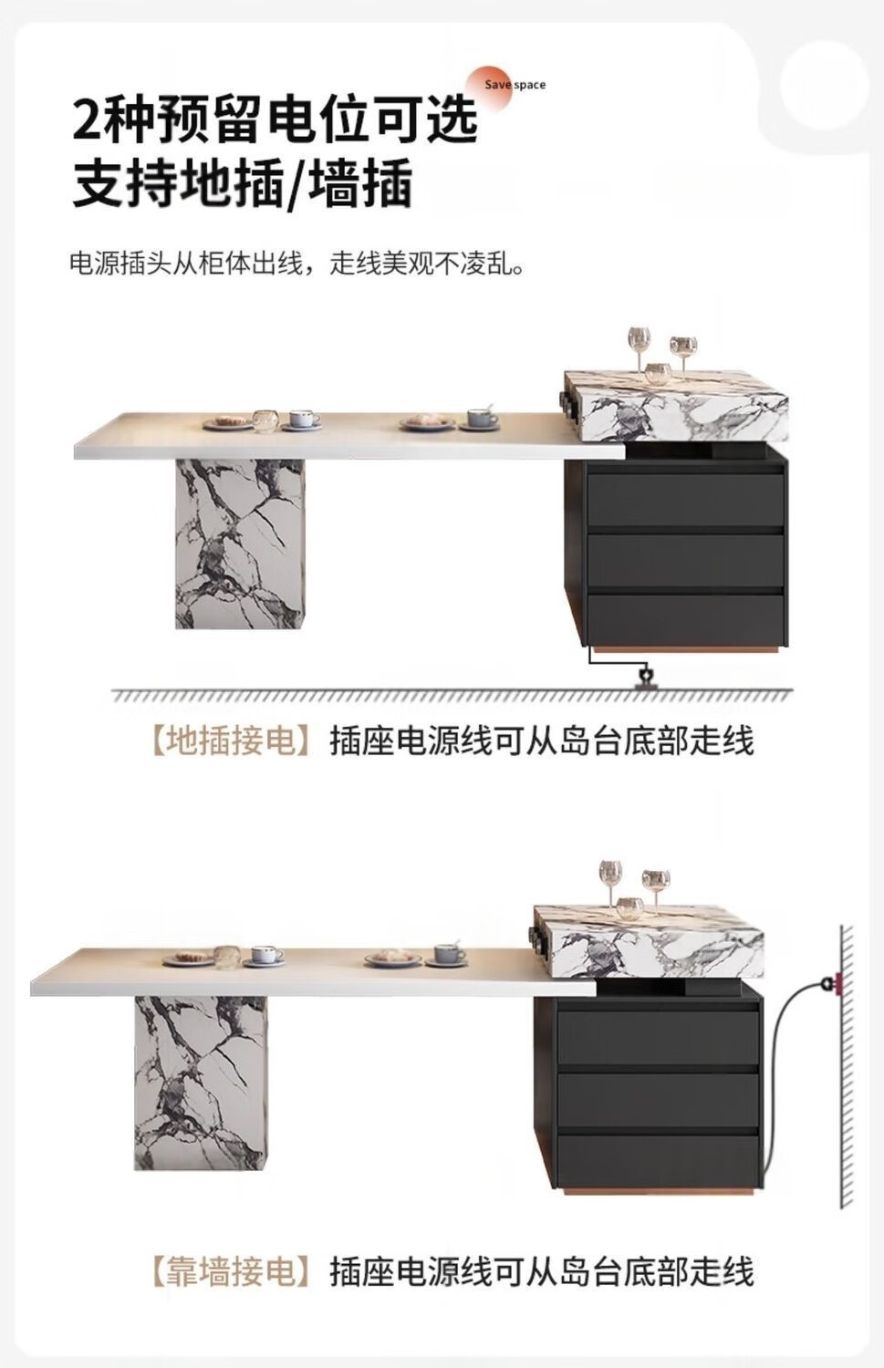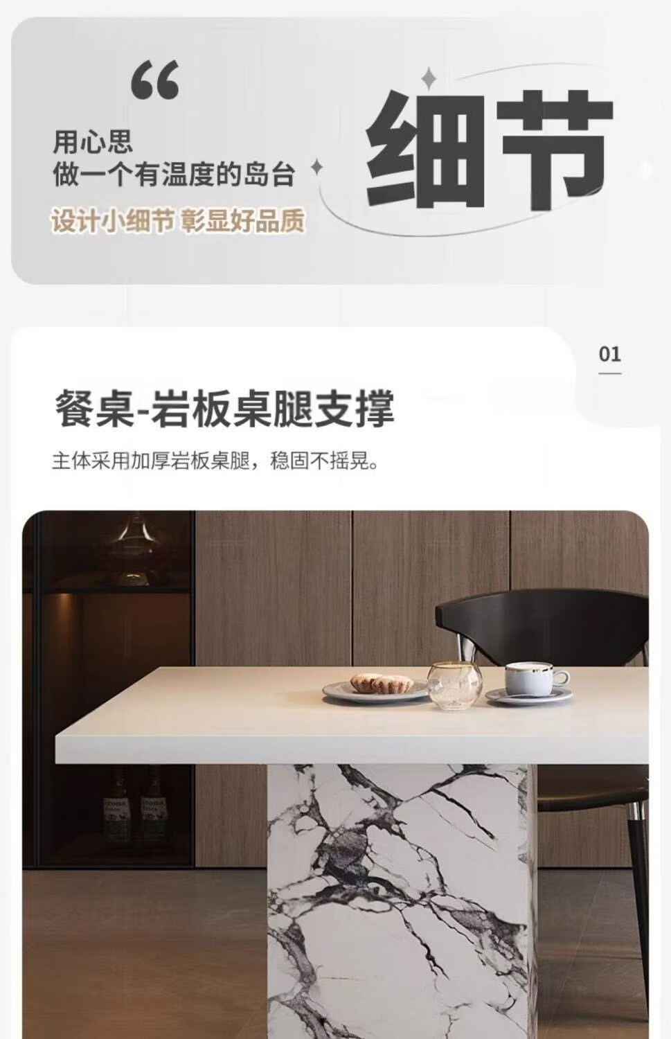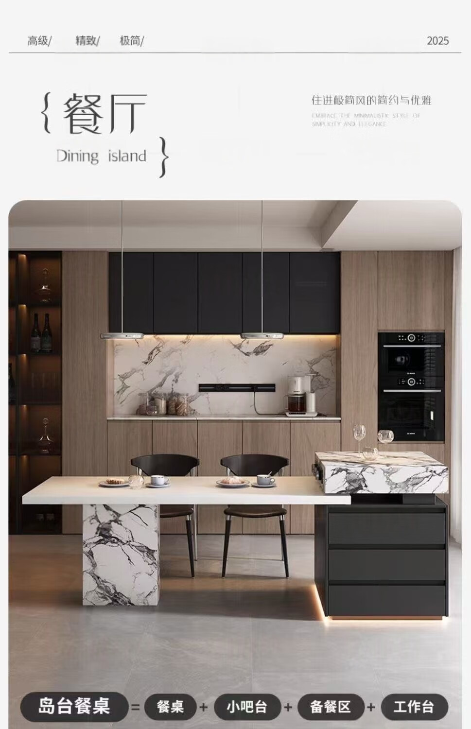 Italian minimalist high-end island dining table integrated retractable high-end slate large-sized medium-sized kitchen countertop island dining table + flat version (track socket) 2 meters one table and four chairs (Eames chair)