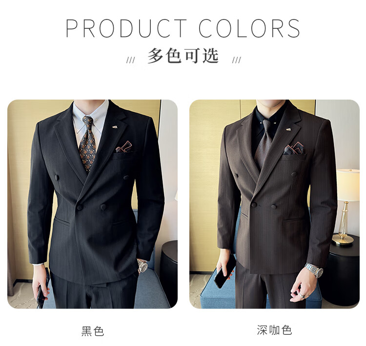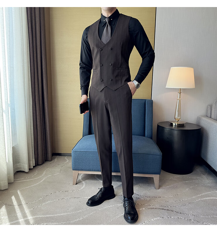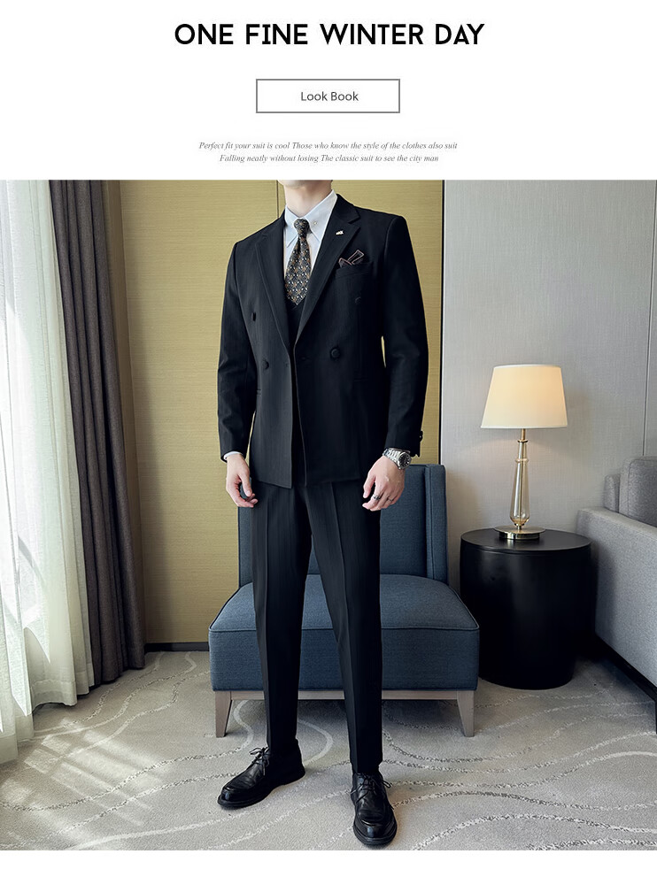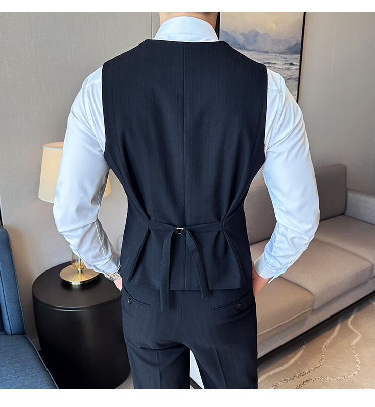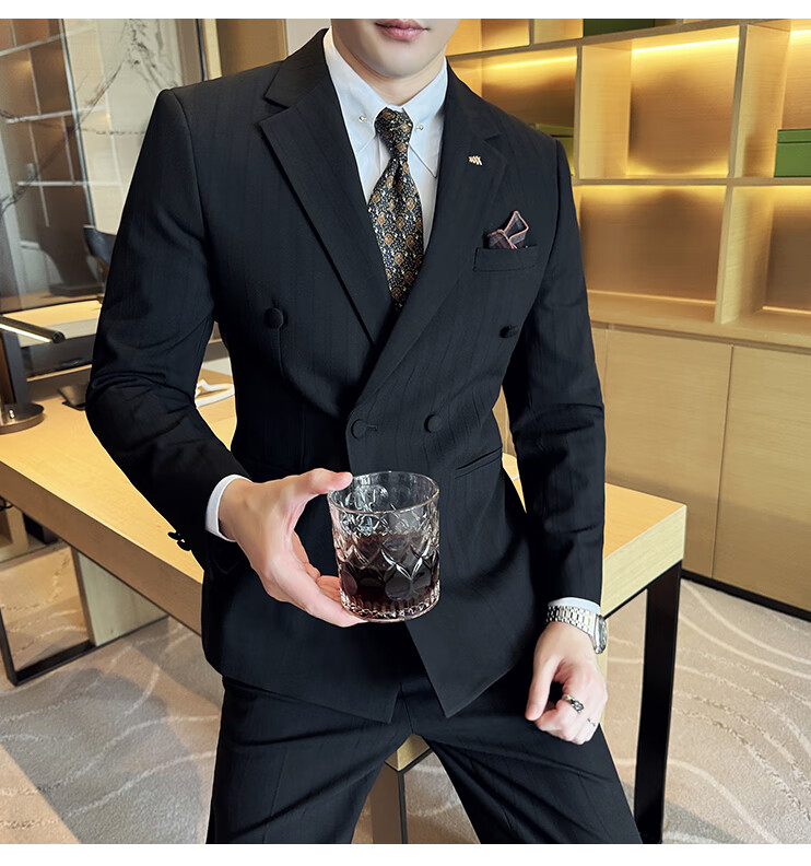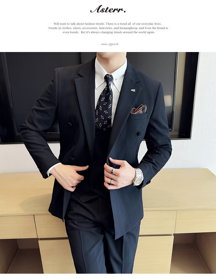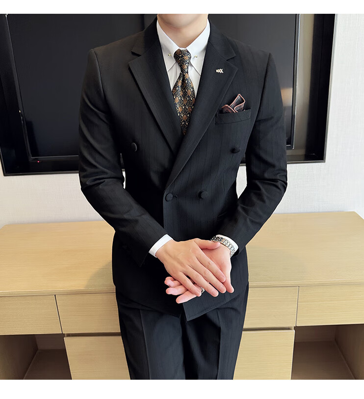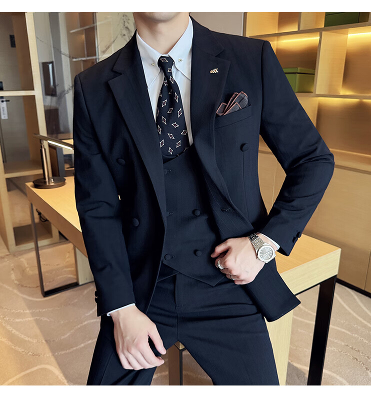 ROMON double-breasted suit men's business professional formal fit groom wedding suit fashionable British navy blue three-piece suit + vest + pants shirt 7XL 64205-220Jin Jin equals 0.5 kg to wear