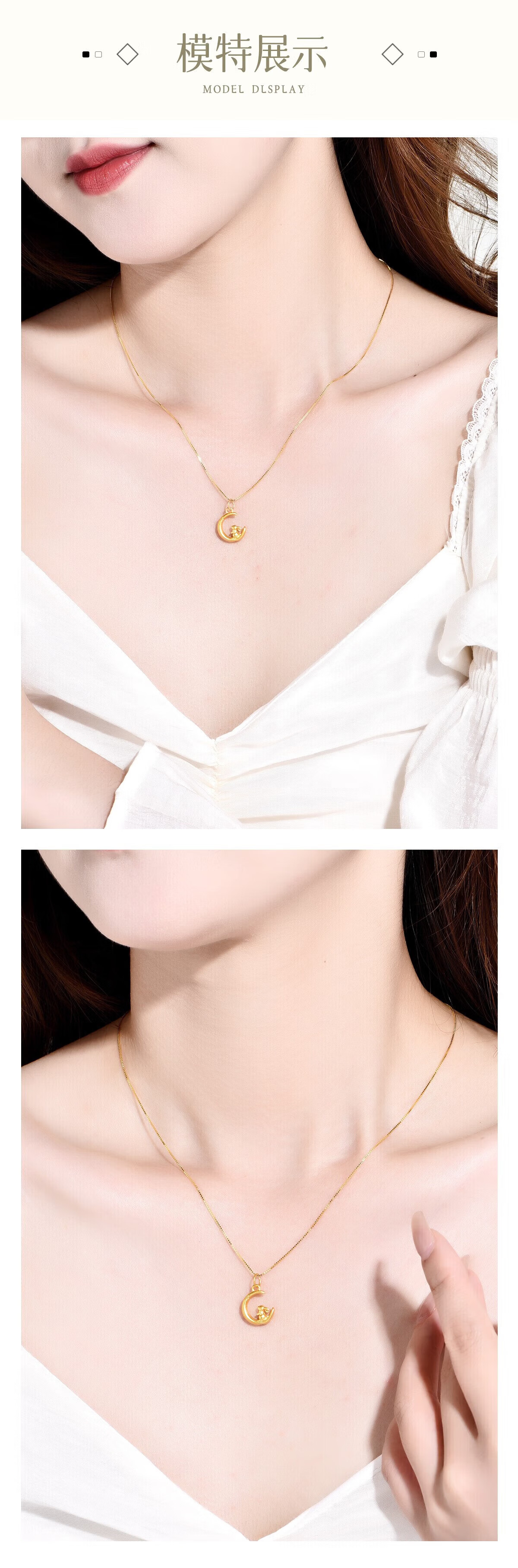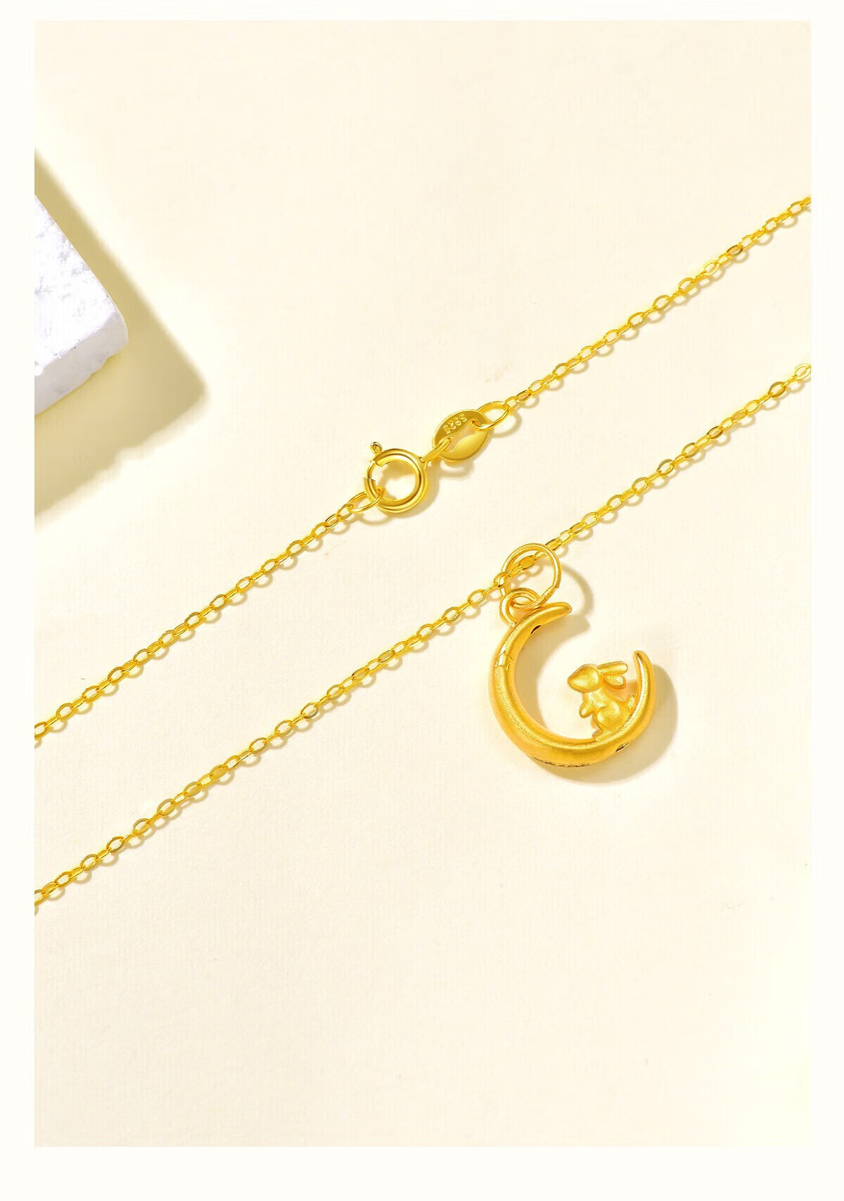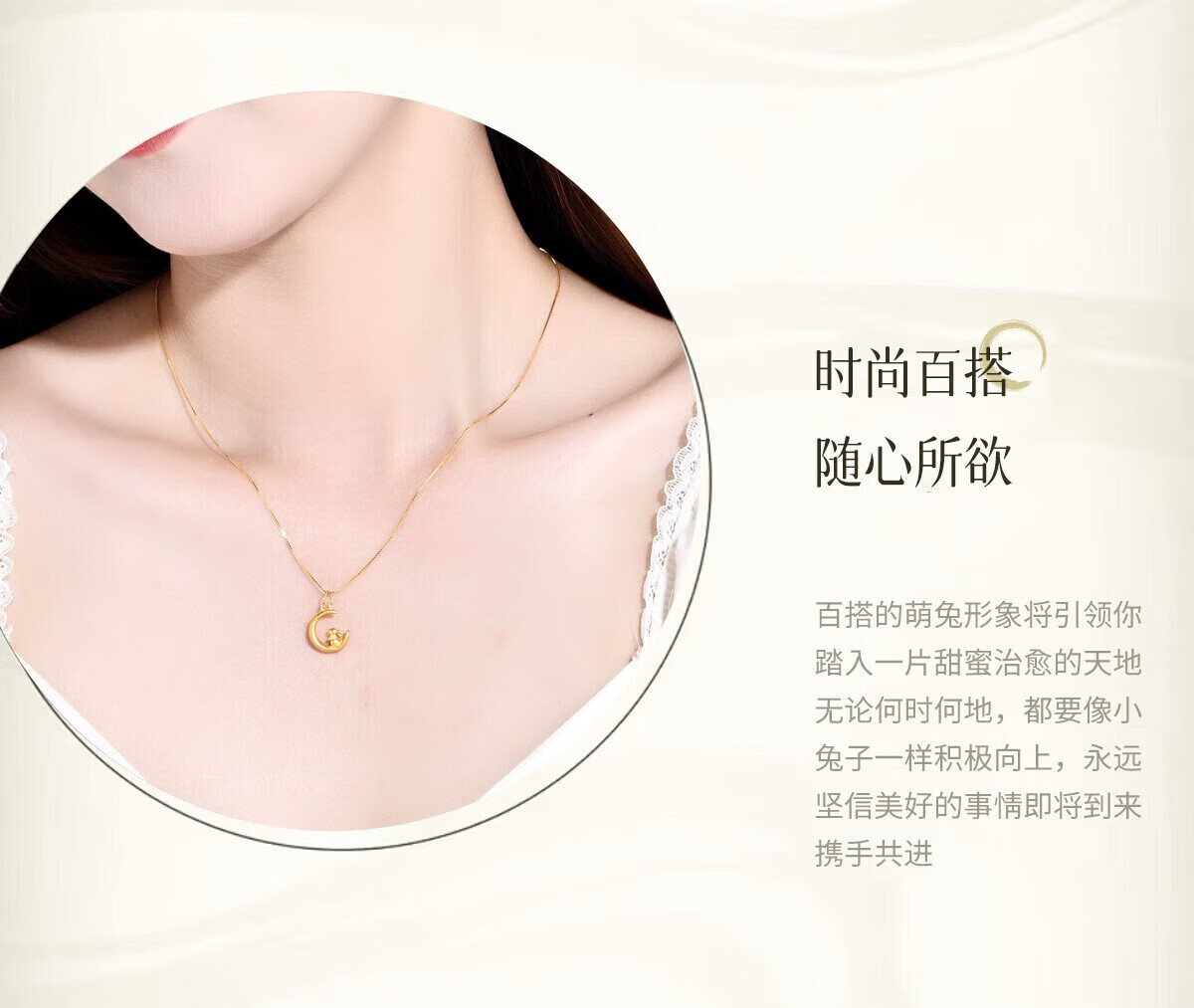 Chow Tai Fook Gold Necklace Women's Hard Gold Moon Rabbit Pendant Small Gold Rabbit Clavicle Chain Zodiac Rabbit Pure Gold Necklace National Day Gift Pure Gold Moon Rabbit Pendant Gold