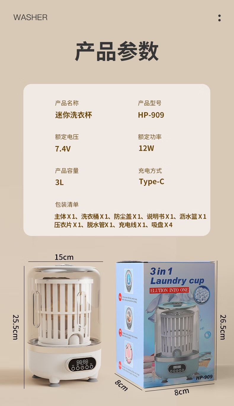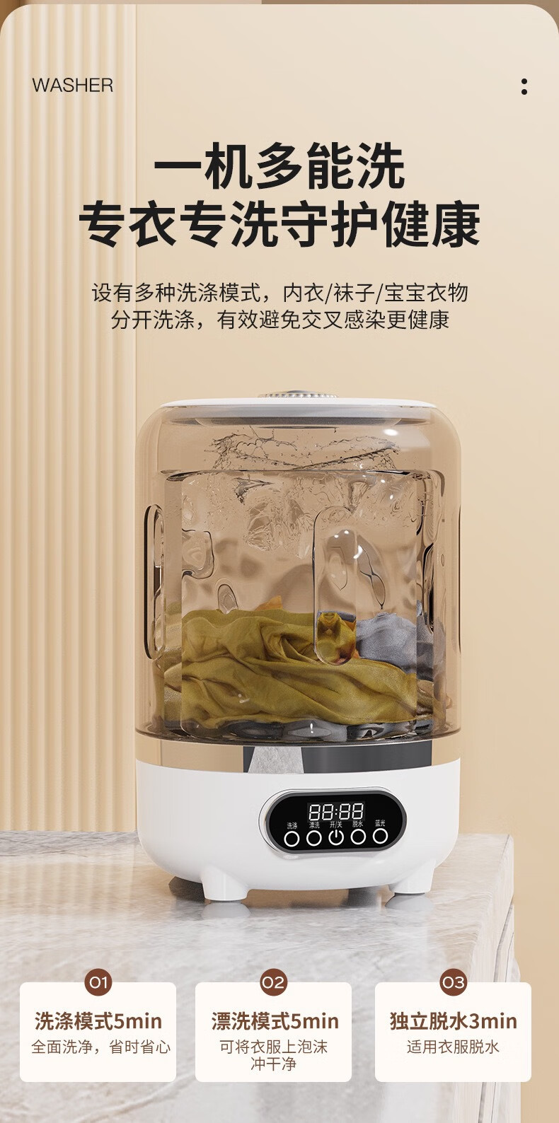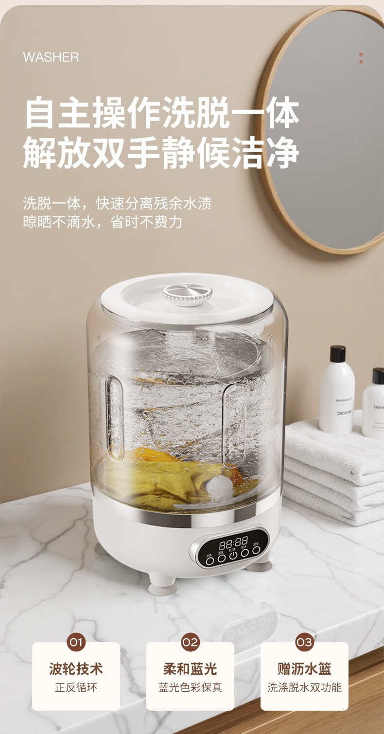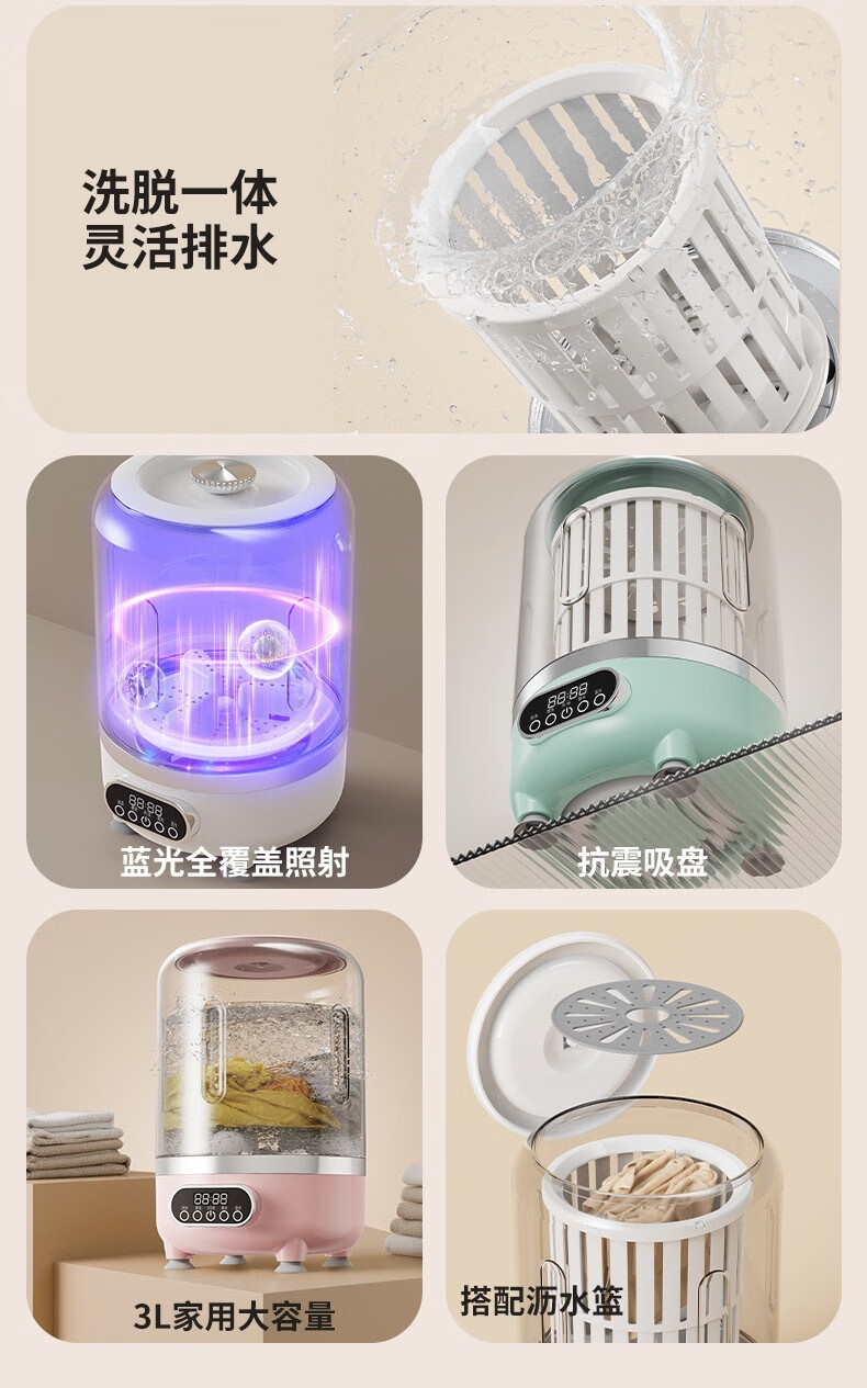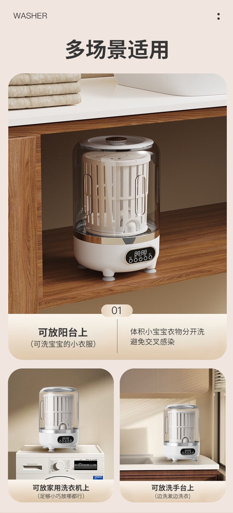 Xiaomi Buyi Trendy Life Appliances Wired Double Cup Laundry Cup New Installation-free Underwear and Sock Washing Machine Pearl White
