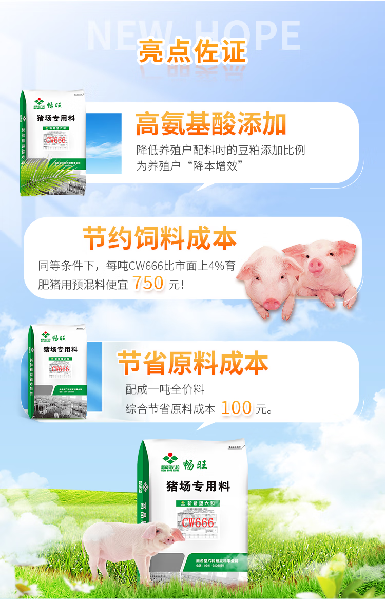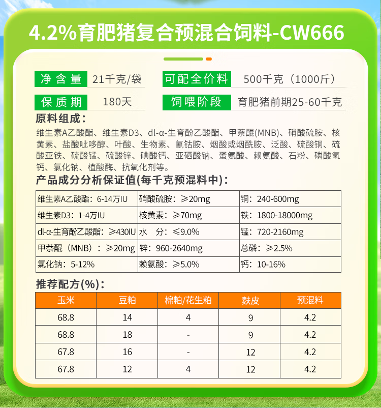 New Hope Liuhe Changwang 4.2% large pig premix pig feed secondary fattening fattening pig feed CW666 4.2% large pig premix CW666 21kg