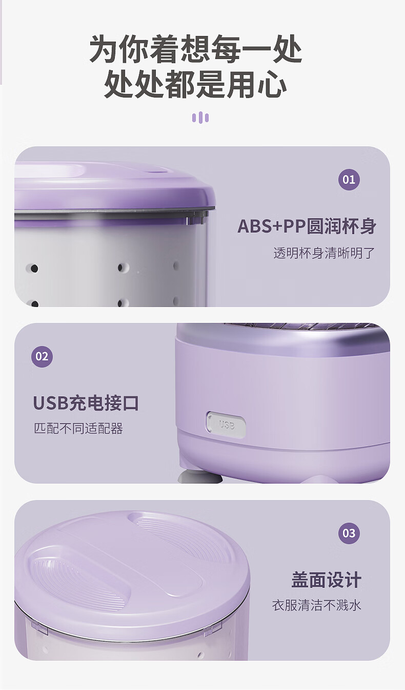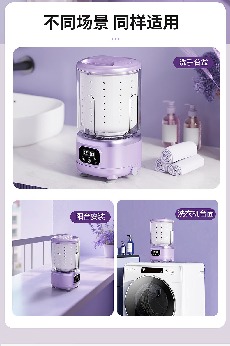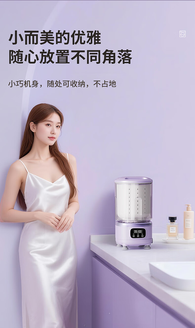 Xiaomi's trendy lifestyle appliance laundry cup, new German wireless mini washing machine, installation-free, special all-in-one washing and removing machine for underwear, socks and socks, flagship model Dark Night Purple AG silver ion UV blue light