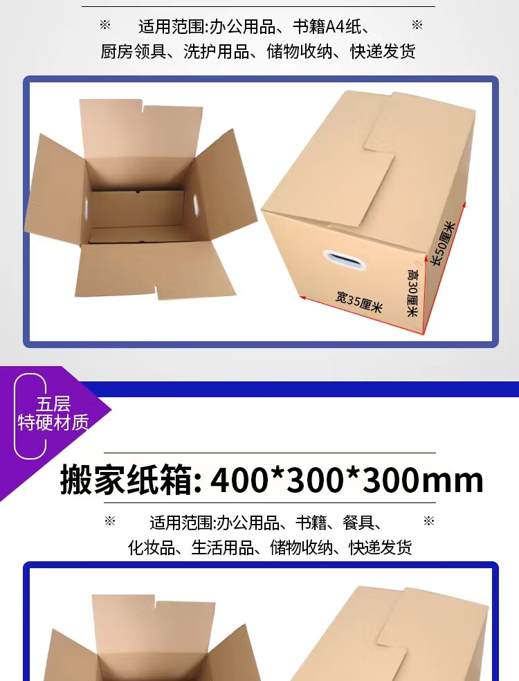 Japanese Unprinted Carton Moving Cardboard Storage Packing Box Overseas Hand-made Hard Buckle Organizing Artifact German Design Glue-free 5 pieces German Design 40*30*30cm 5 layers hard with plastic buckles