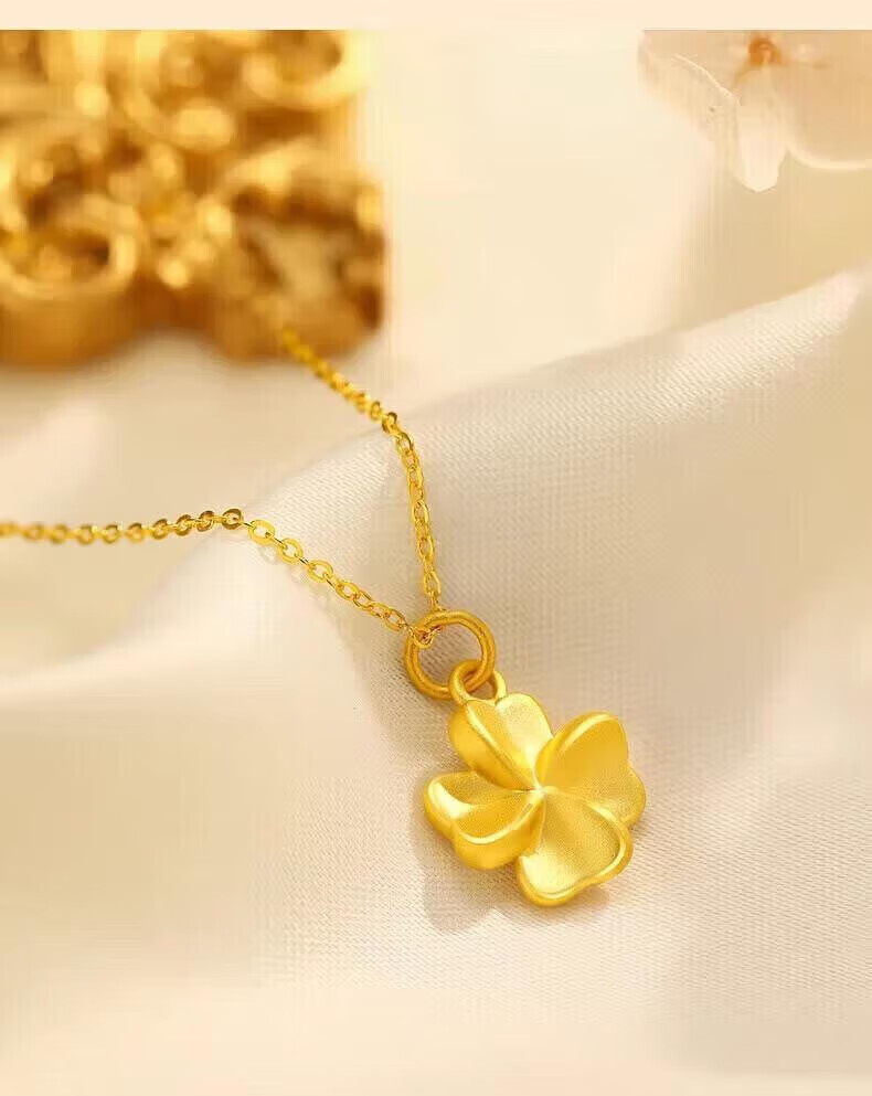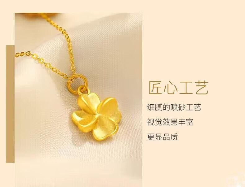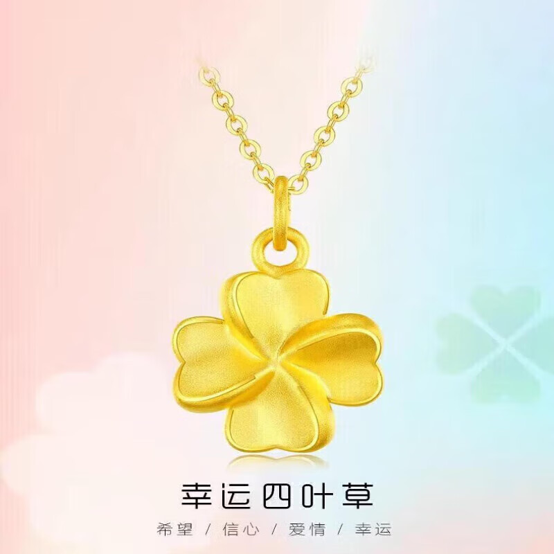 Chow Tai Fook Gold Necklace for Women Hard Gold Lucky Four-Leaf Clover Pendant Meet Lucky Pendant Pure Gold Necklace for Women Back to School Season Gift