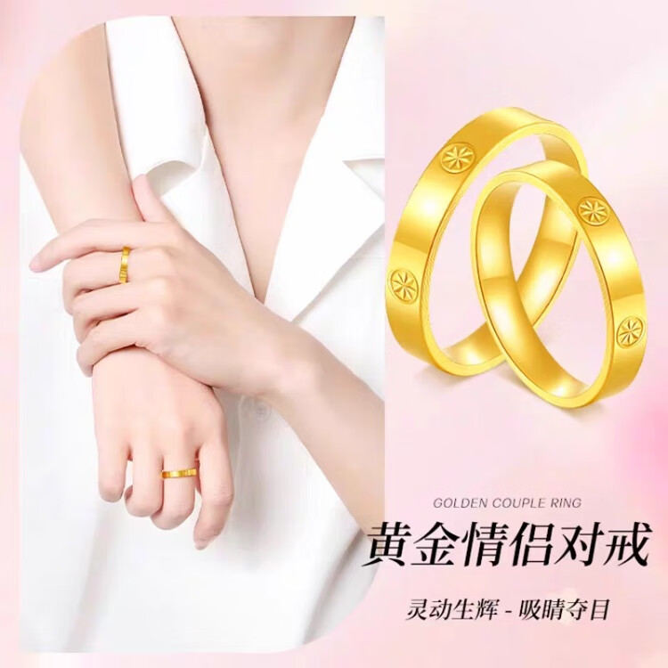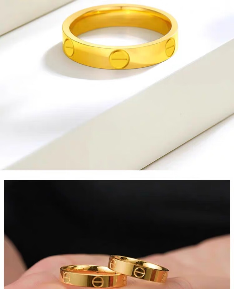 Yingtang gold Kajia love ring plain circle one-word men's circle rice-shaped diamond pattern ring for male and female friends to give birth to rice-shaped pattern ring closed No. 23 circle