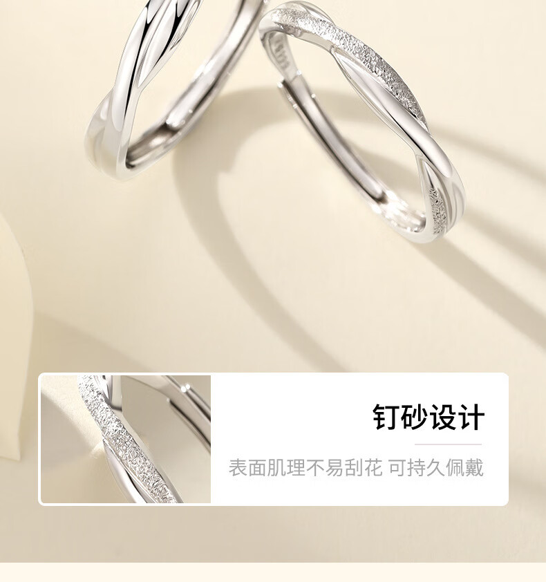 Chinese Jewelry SINO GEM Mobius Couple Ring Men's and Women's Silver Ring Ring Opening Adjustable Birthday Gift for Boyfriend and Girlfriend Mobius Couple Ring + Brand Gift Box