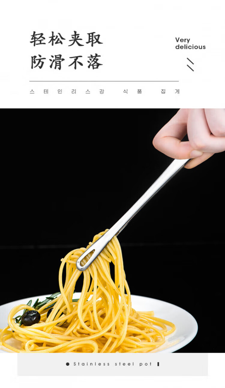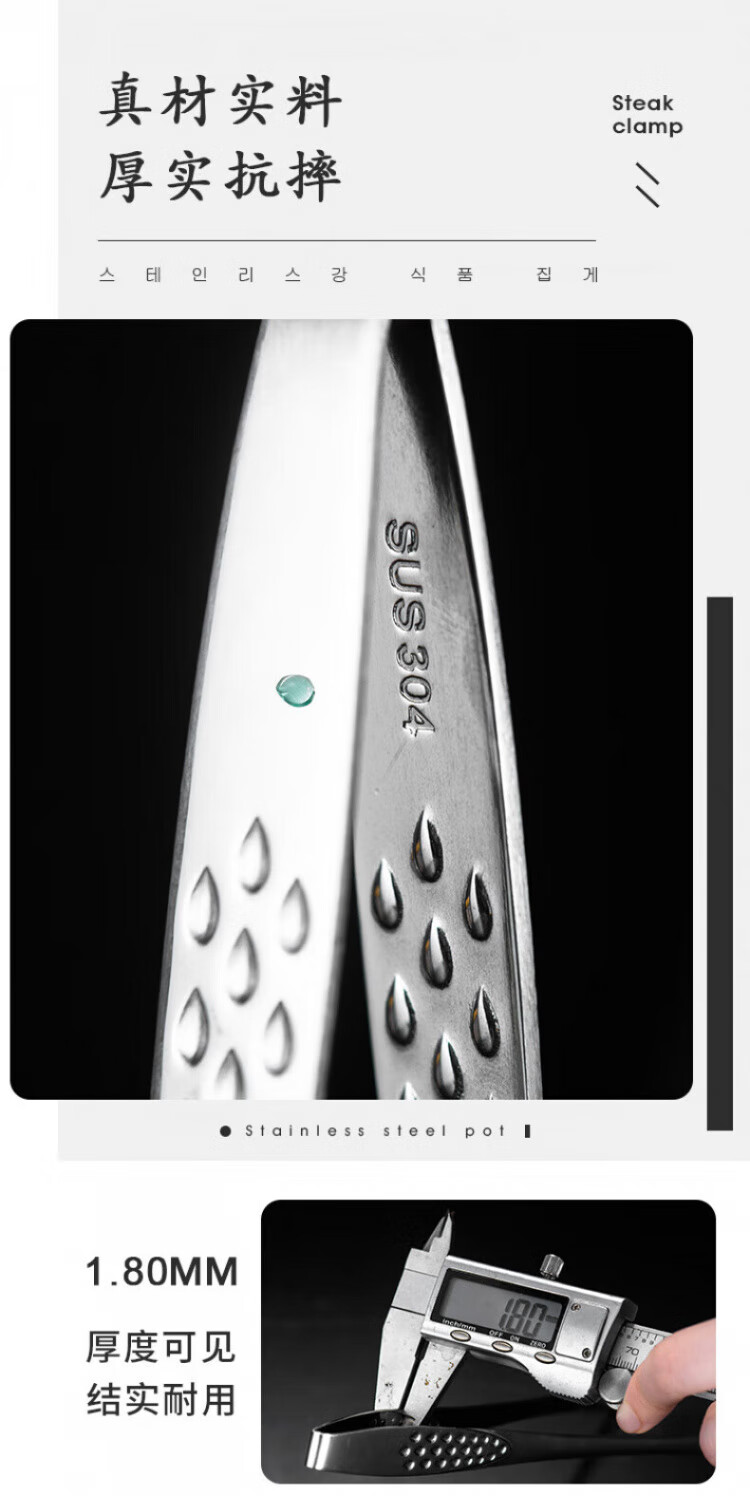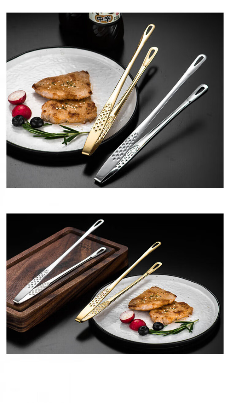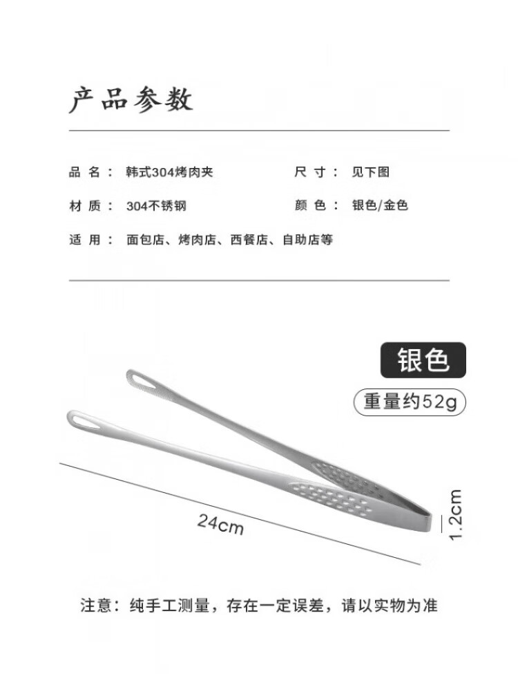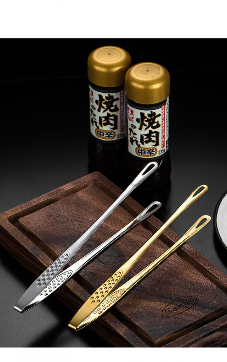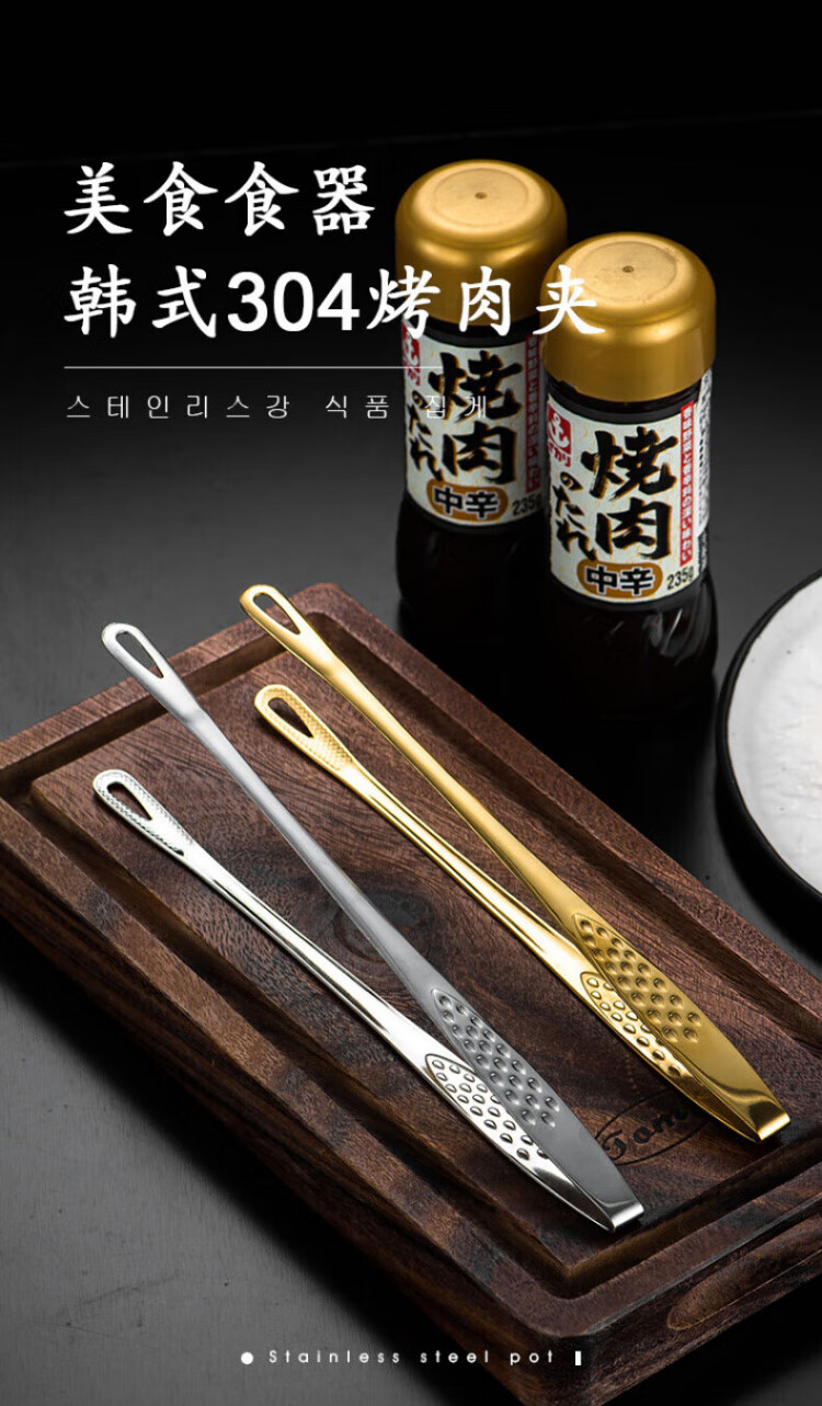 QCSK German Korean barbecue clip 304 stainless steel barbecue clip steak clip buffet barbecue clip gold extension material 304 Korean barbecue clip-24CM silver
