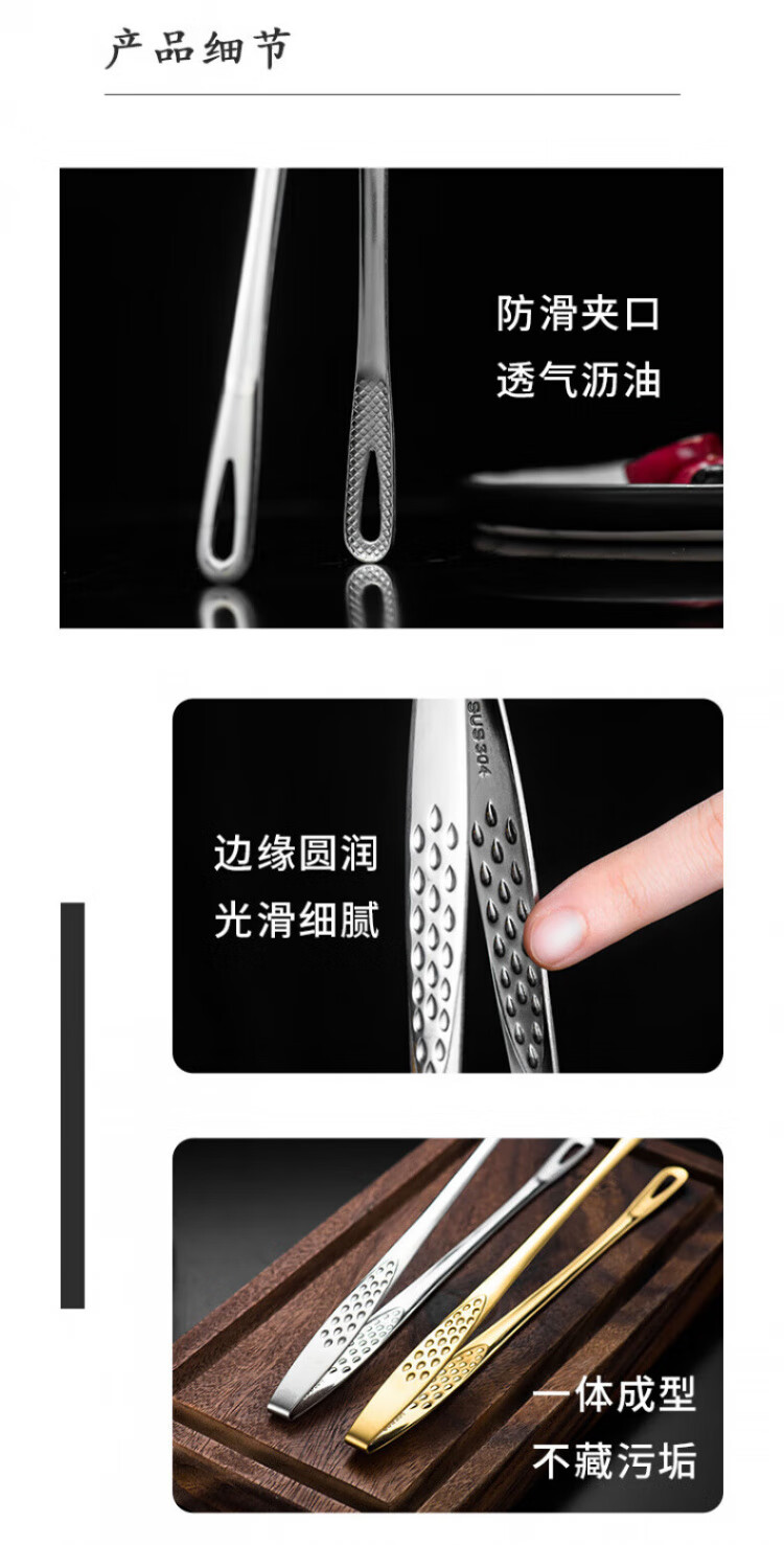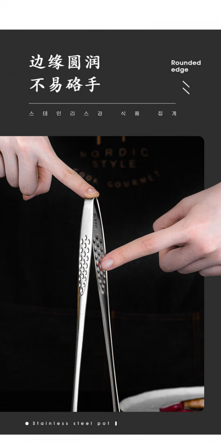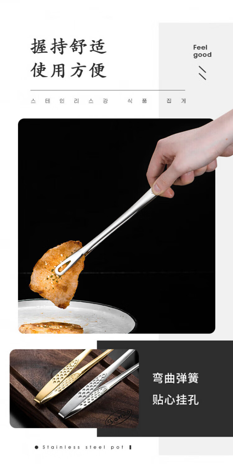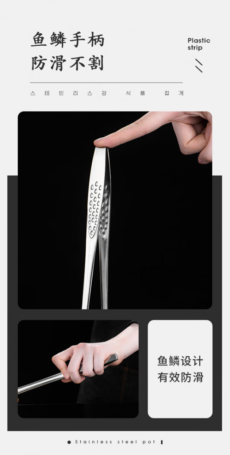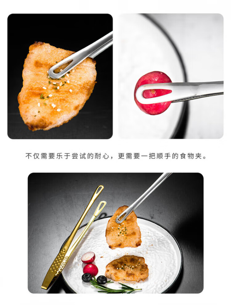 QCSK German Korean barbecue clip 304 stainless steel barbecue clip steak clip buffet barbecue clip gold extension material 304 Korean barbecue clip-24CM silver