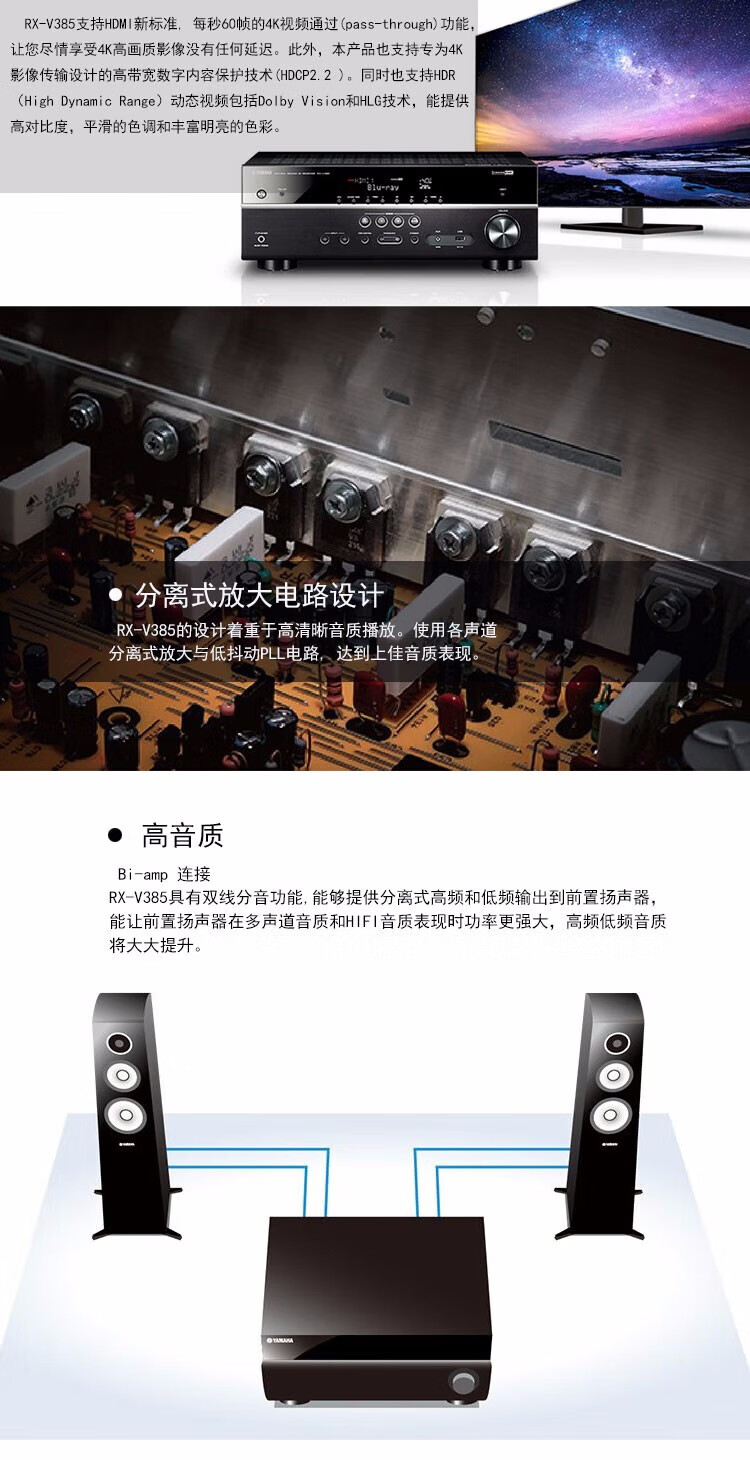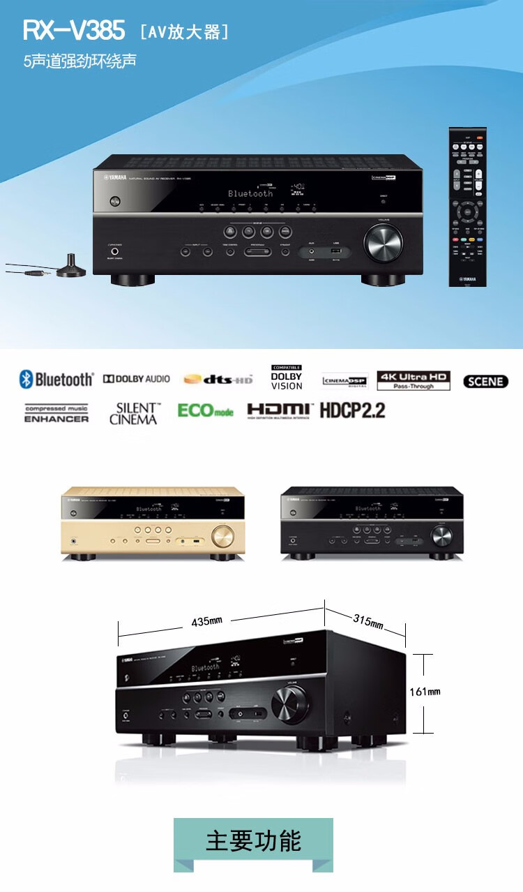 Yamaha (YAMAHA) RX-V385 (black/gold)/ARXV4A home theater 8K high-power AV amplifier 5.2-channel Bluetooth decoding amplifier RX-V385 (black)