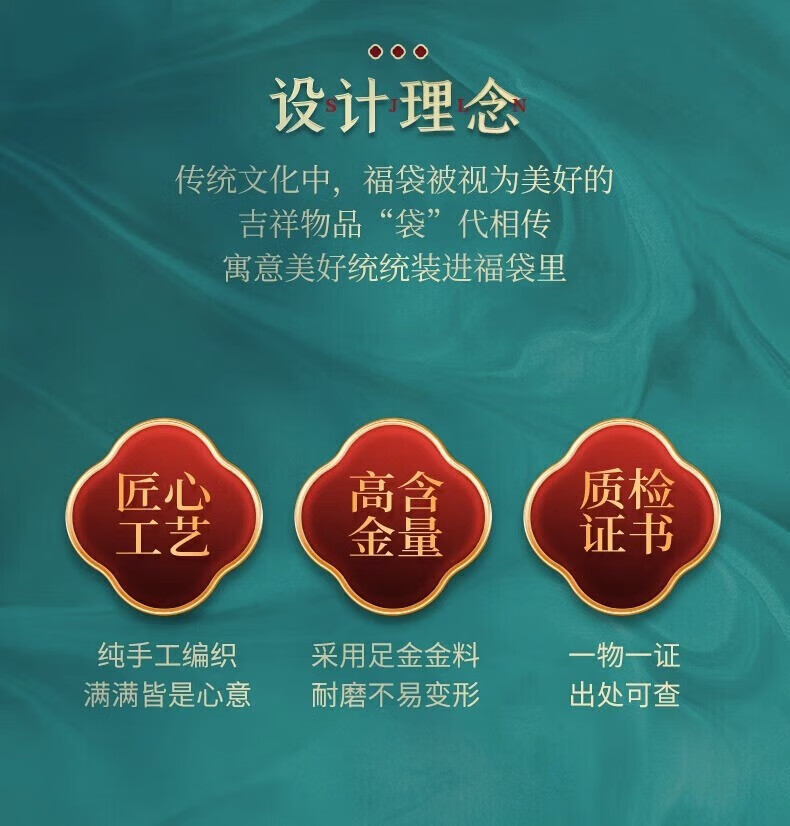 Chow Tai Fook gold pure gold 999 filigree blessing money bag pendant pure gold hollow word