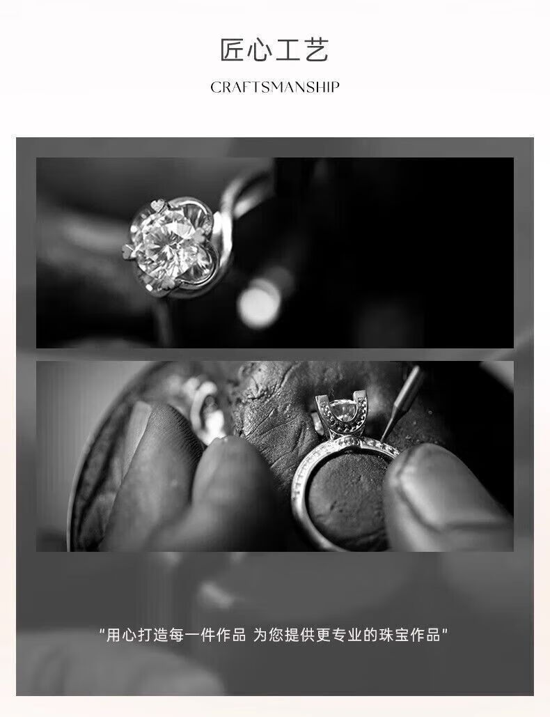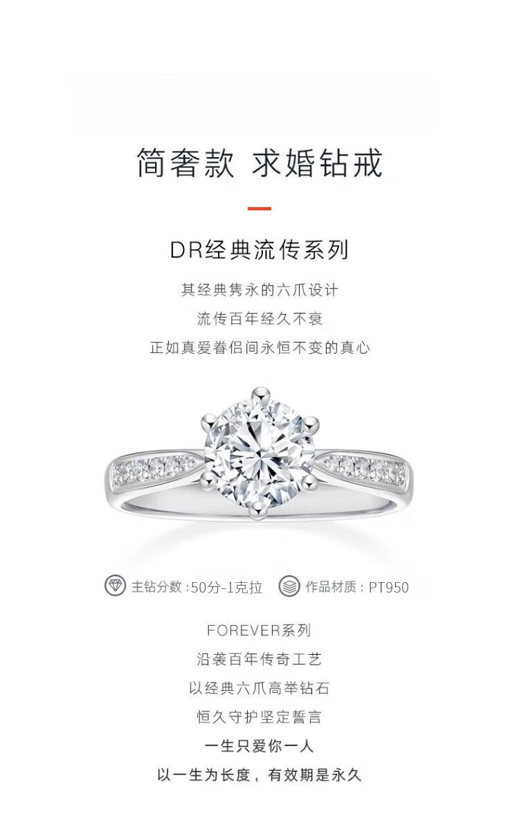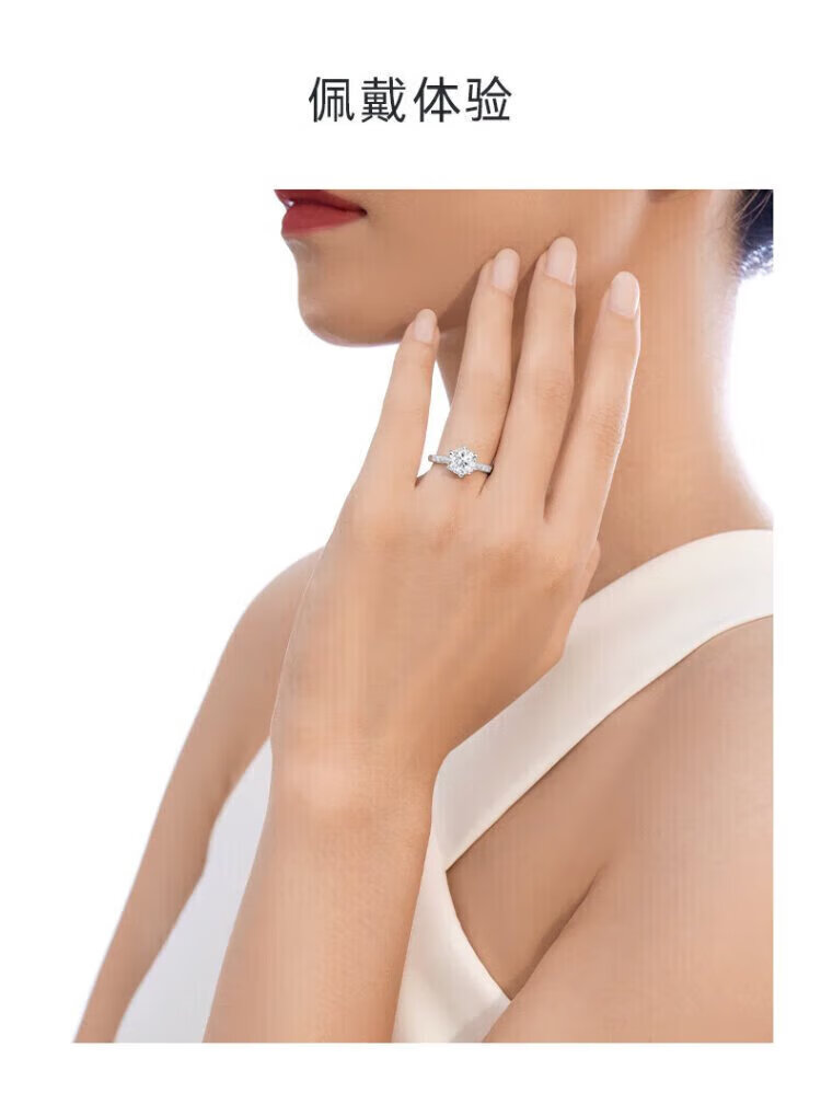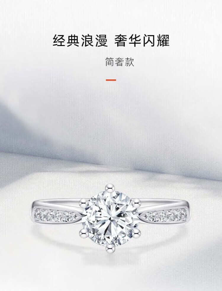 Chow Tai Fook Proposal Diamond Ring K Gold/Platinum PT950 Simple Luxury Six-Prong Moissanite Diamond Ring Gift Valentine's Day Birthday Gift 1 Carat D-E Color/Extreme White Gift Box + Certificate PT950 Live (Size Adjustable)