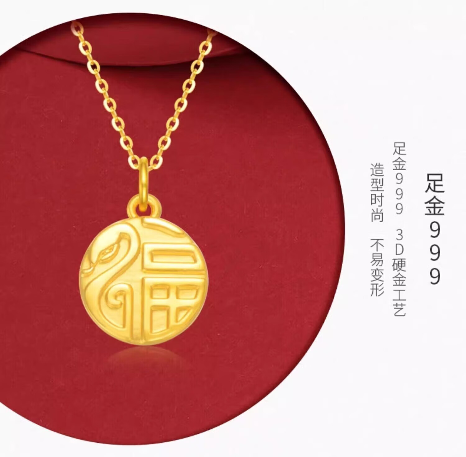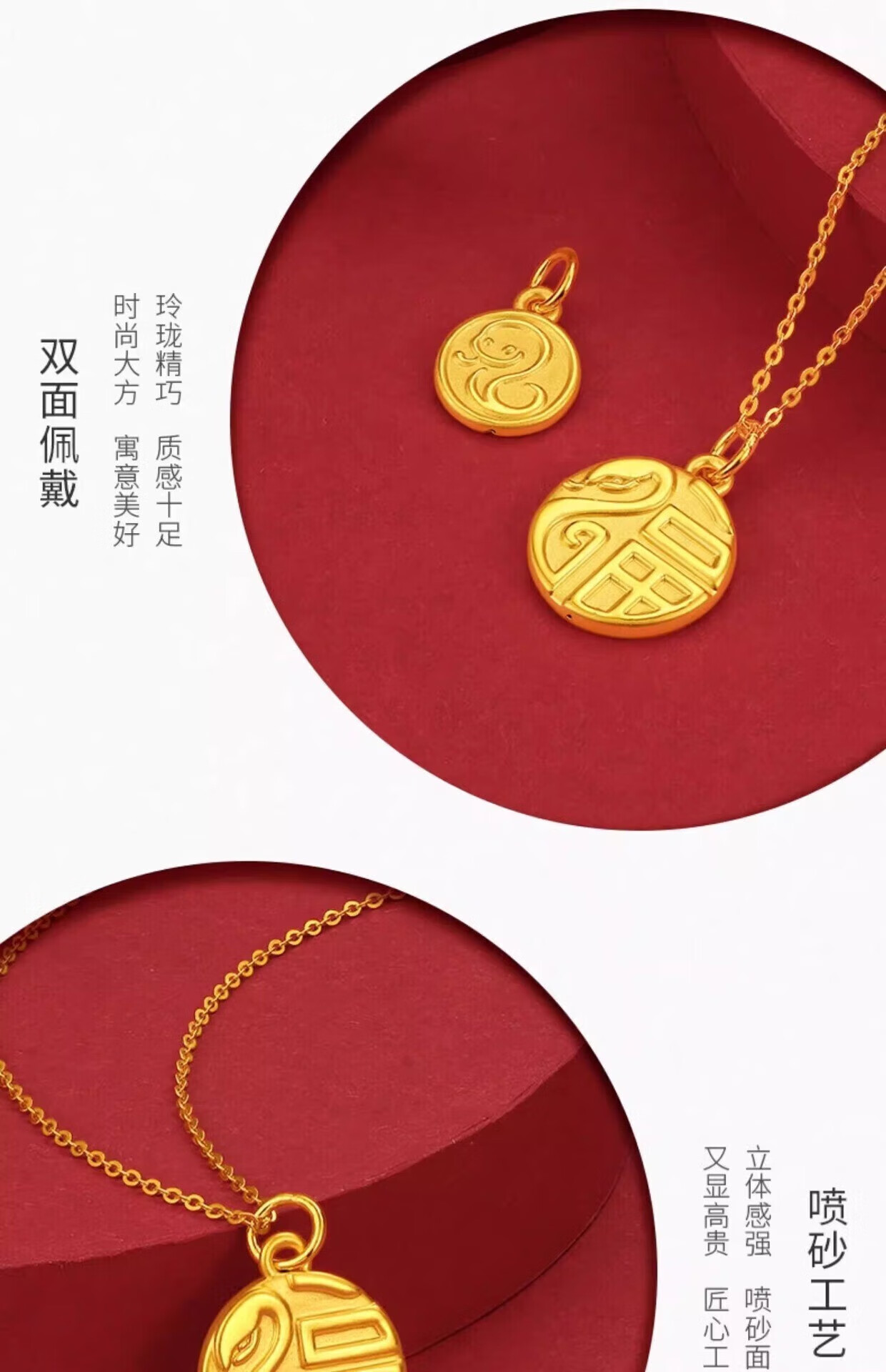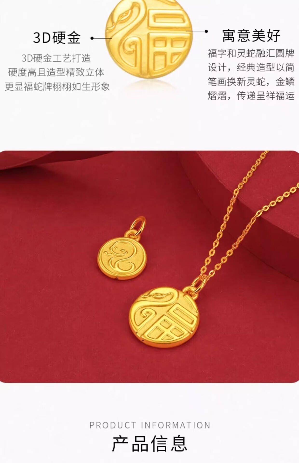 Chow Tai Fook Gold Pure Gold 999 Fortune Snake Brand Pendant Pure Gold Zodiac Zodiac Year Clavicle Necklace Gold Snake Fortune Brand with 18k Titanium Gold Chain
