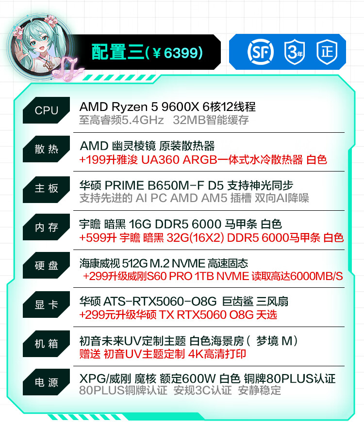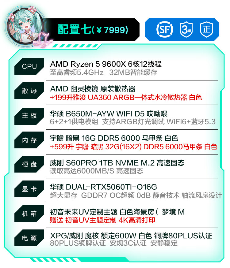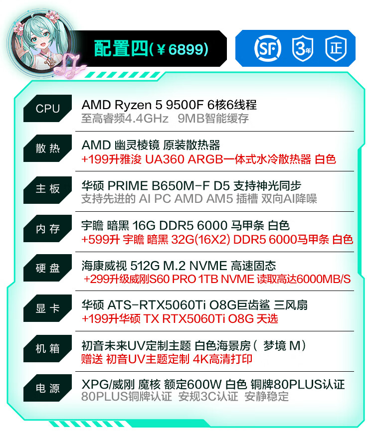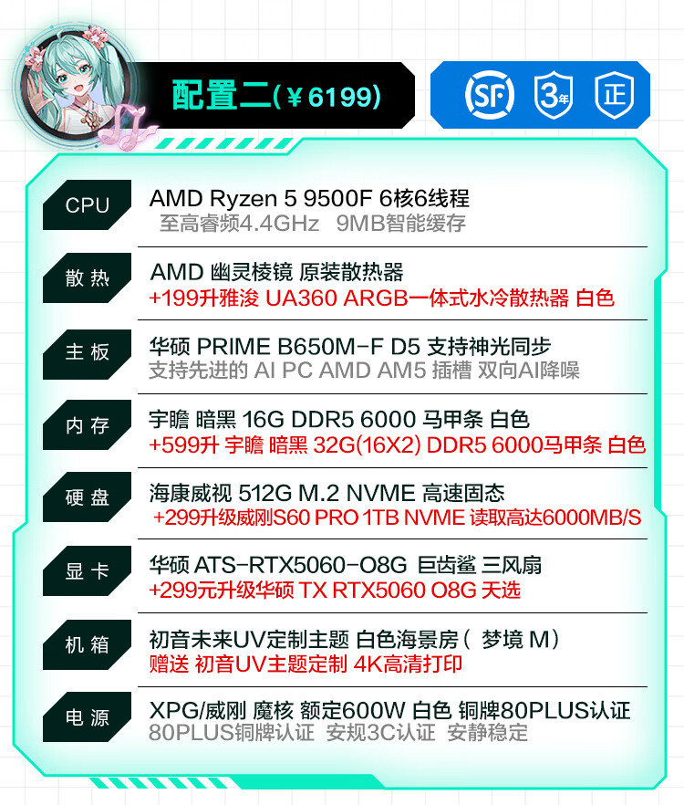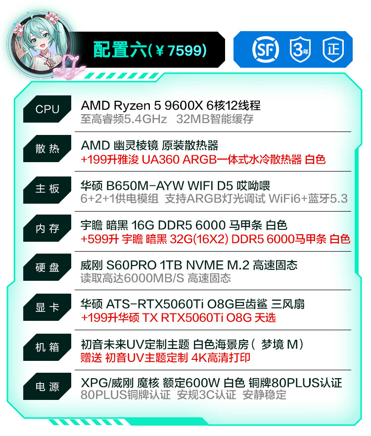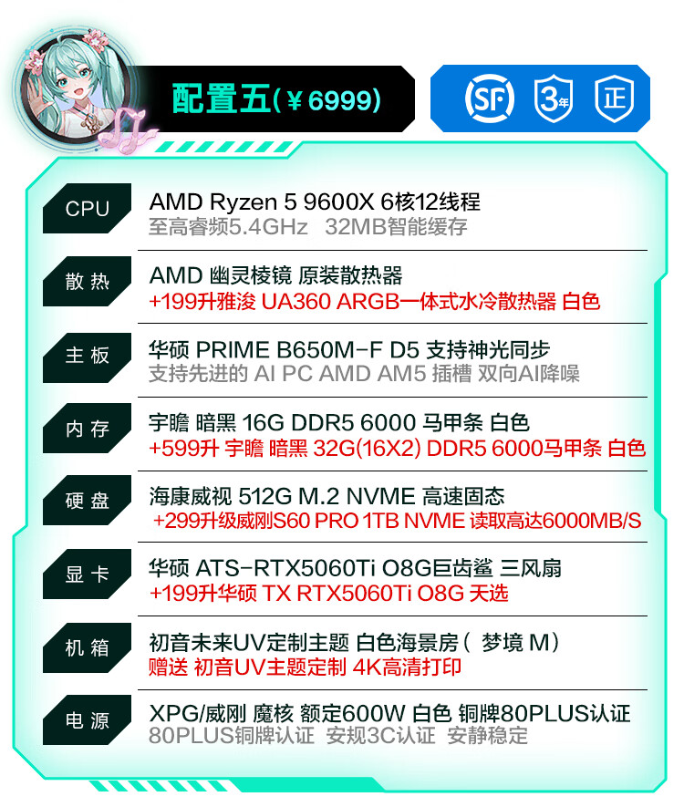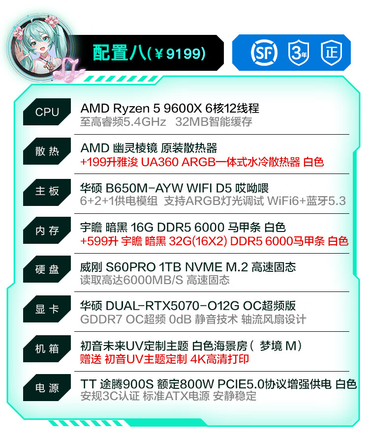 ASUS 24-issue interest-free AMD 9600X ASUS RTX5070 5060Ti host 5060 desktop assembly computer game live broadcast AI design rendering video editing complete machine configuration 5 9600X + ASUS 5060TI