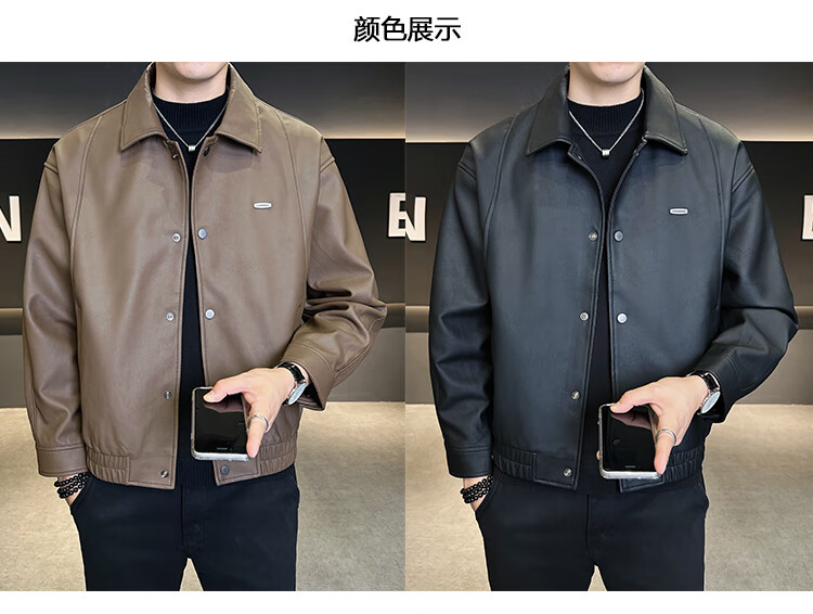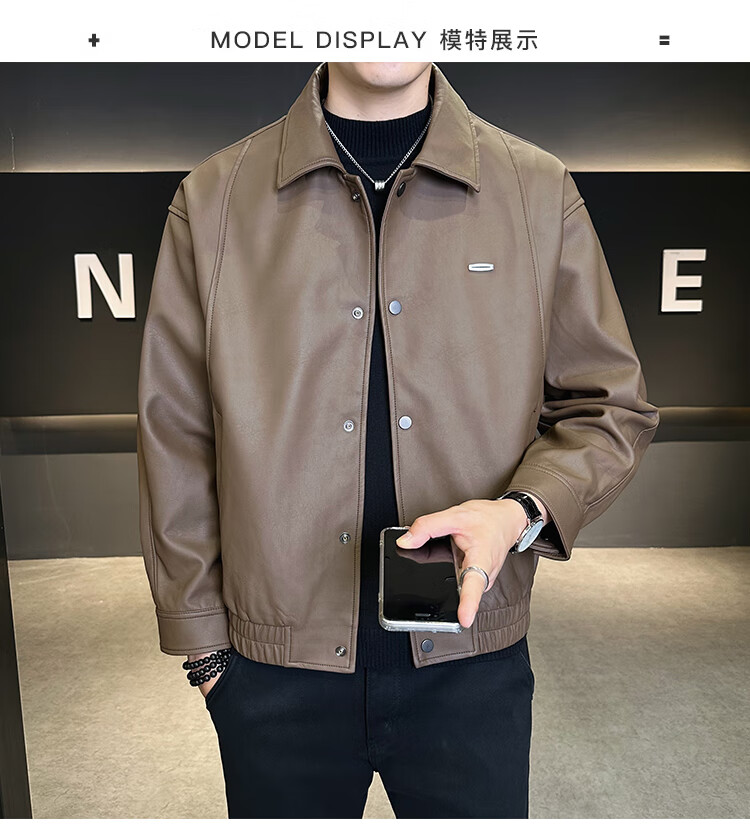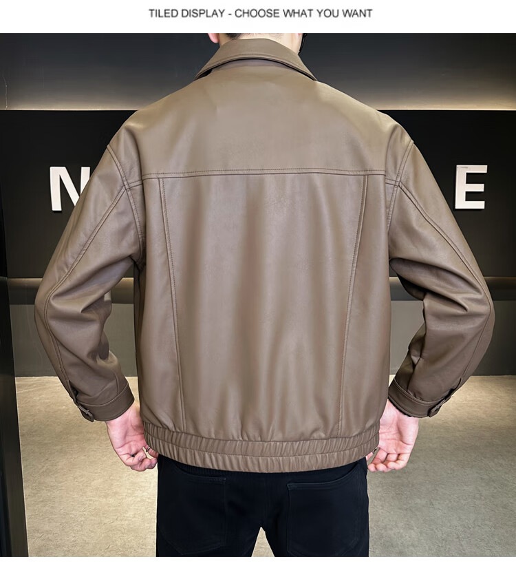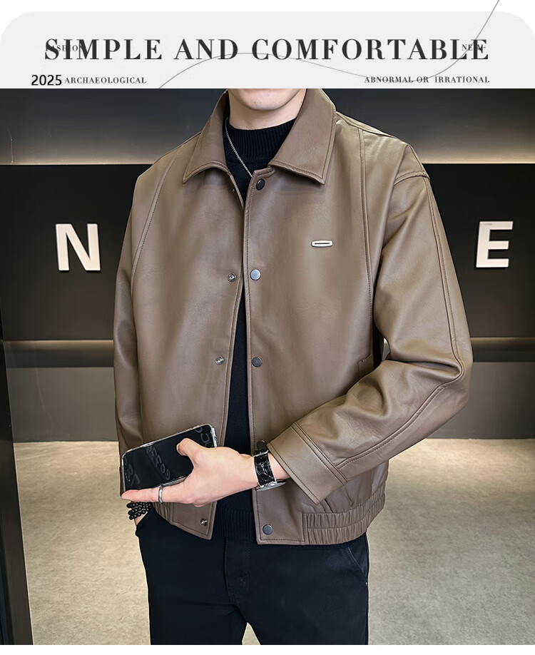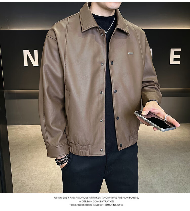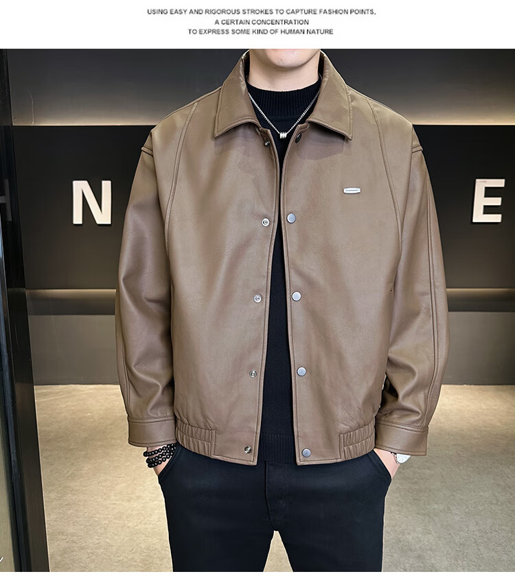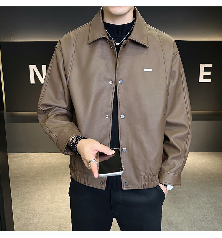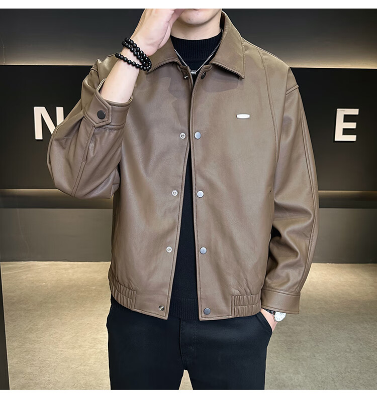 Hengyuanxiang Leather Jacket Men's 2026 New Spring and Autumn Trendy Lapel Casual Men's Motorcycle Leather Jacket Brown XL