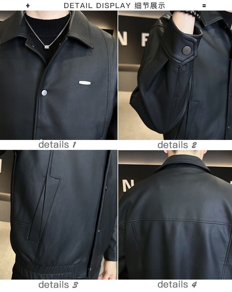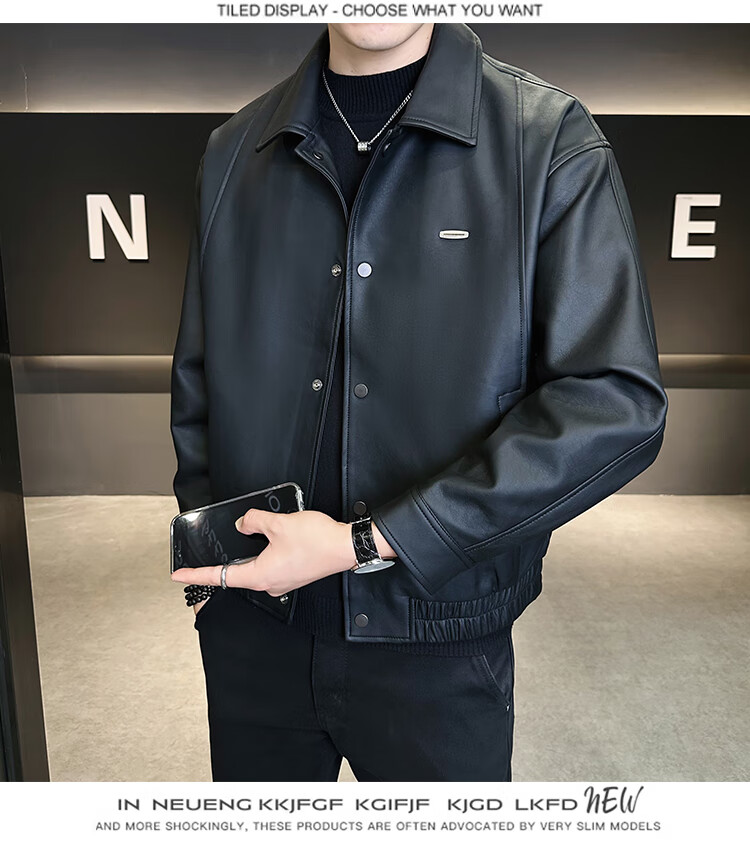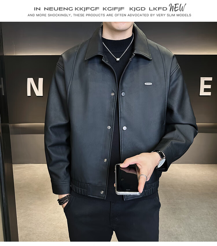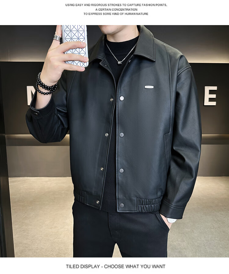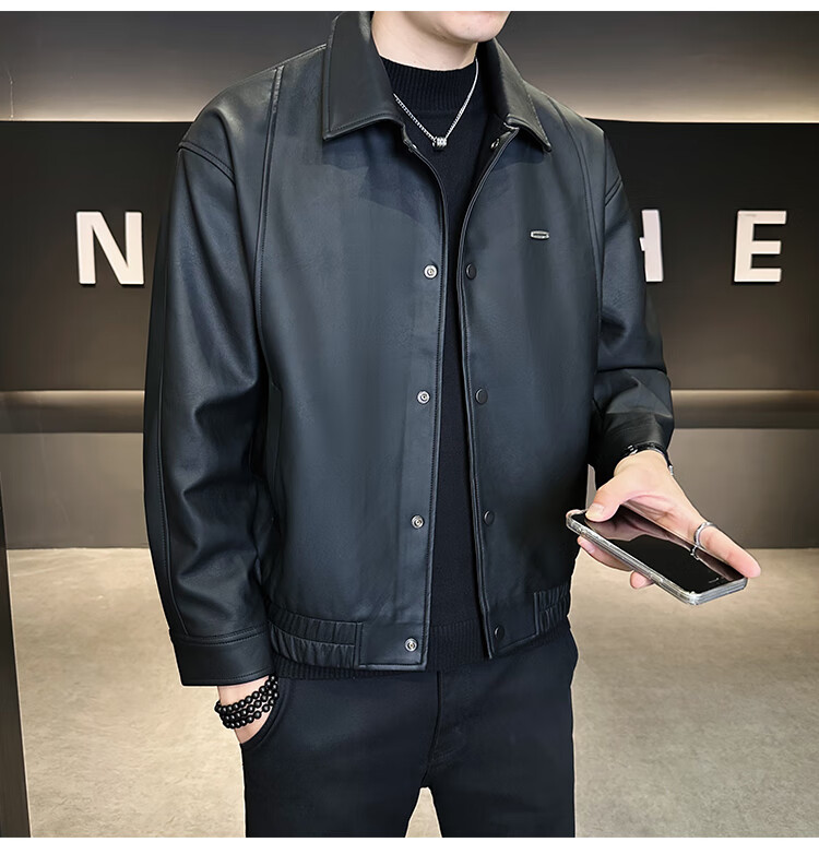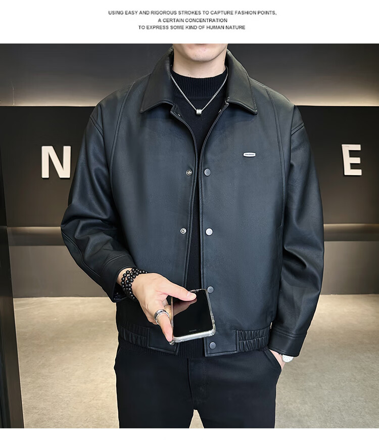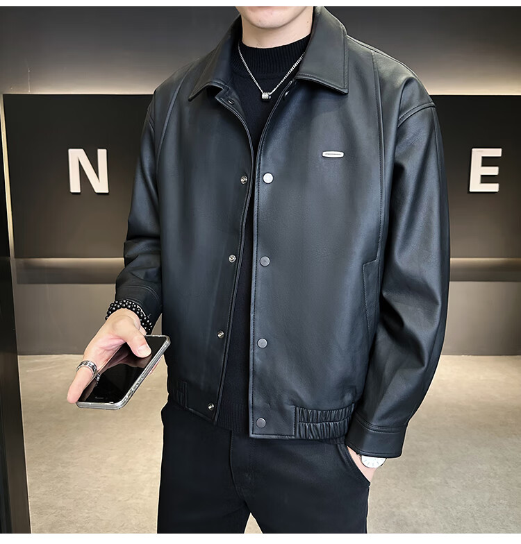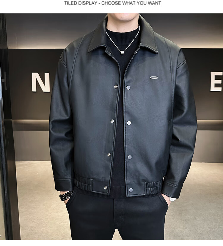 Hengyuanxiang Leather Jacket Men's 2026 New Spring and Autumn Trendy Lapel Casual Men's Motorcycle Leather Jacket Brown XL