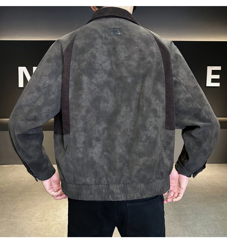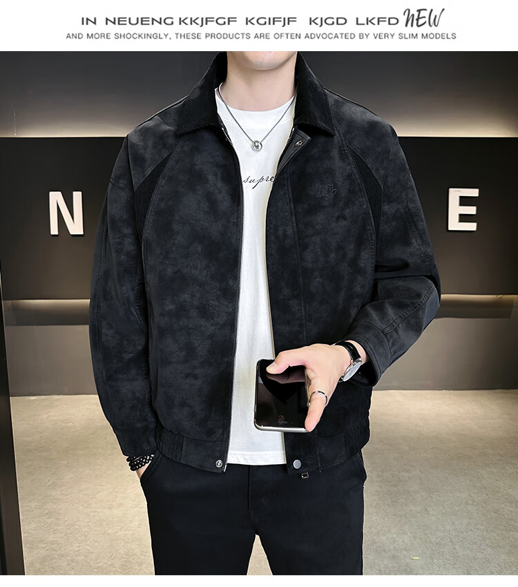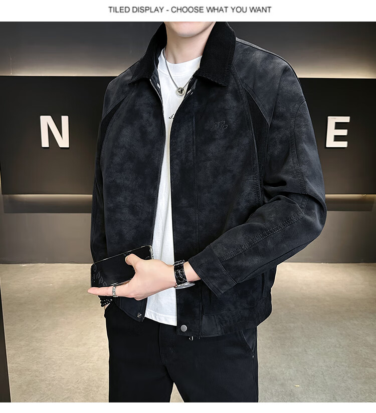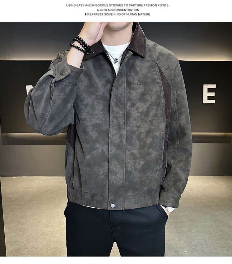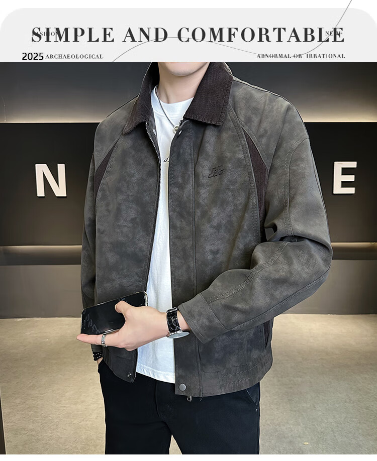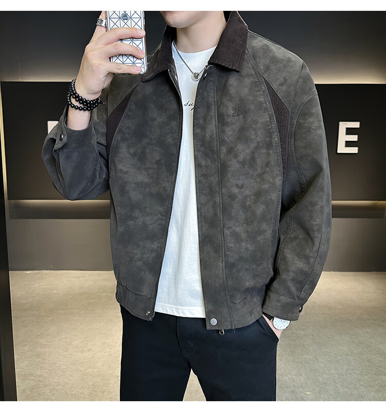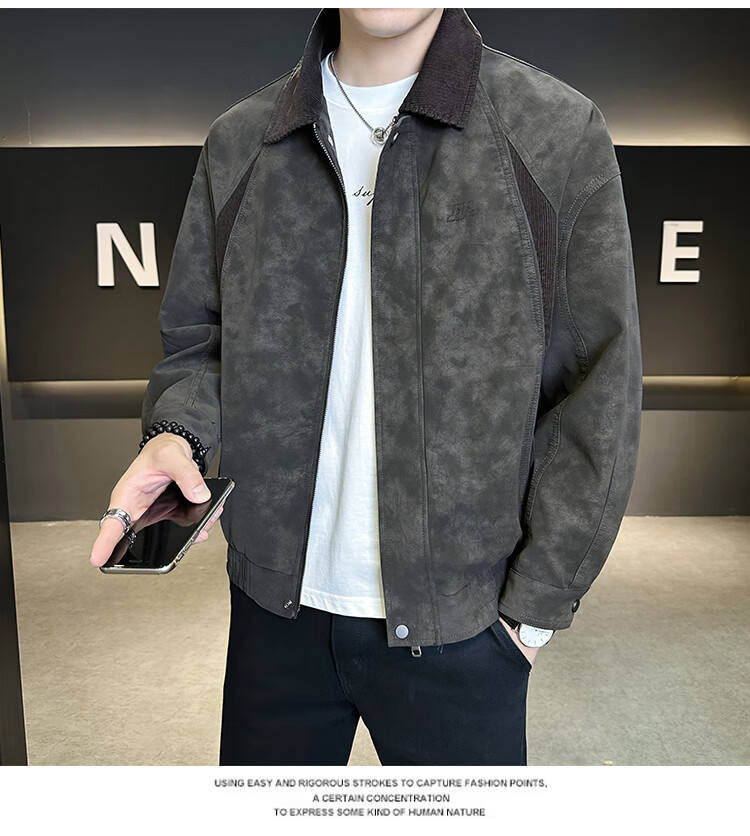 Hengyuanxiang Leather Jacket Men's Spring and Autumn 2026 New Lapel Fashion Brand Style Splicing Men's American Retro Leather Jacket Green XL