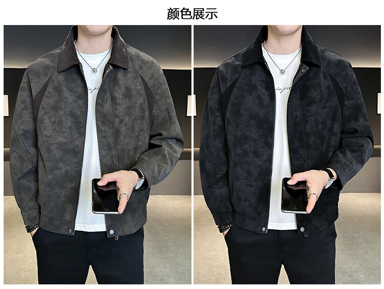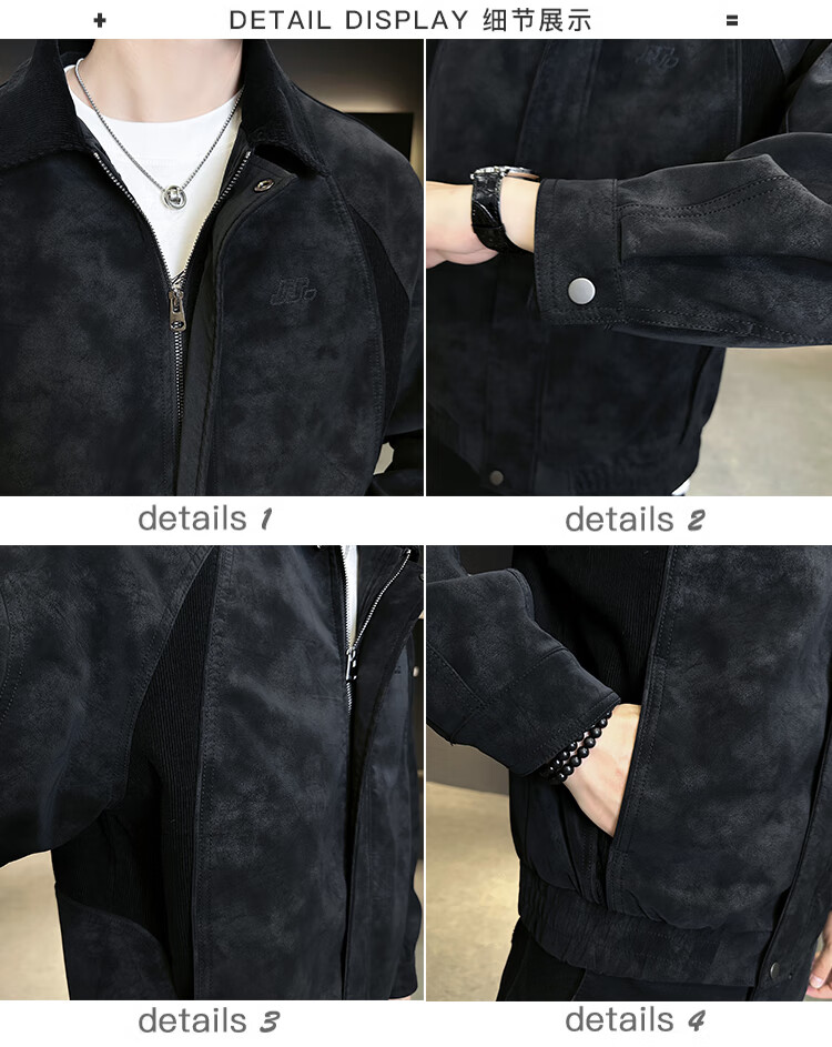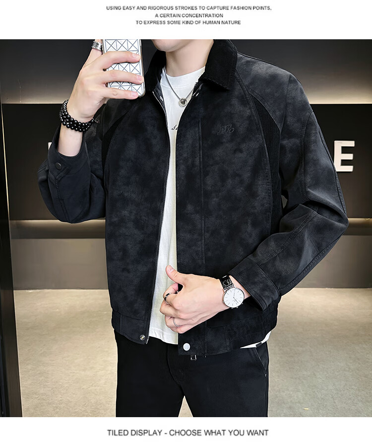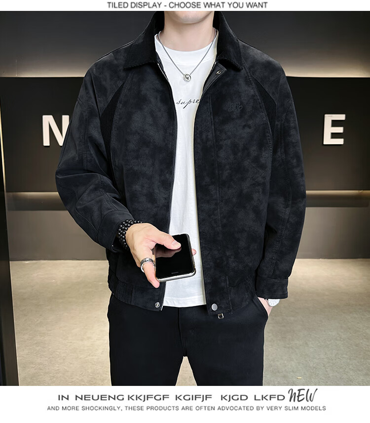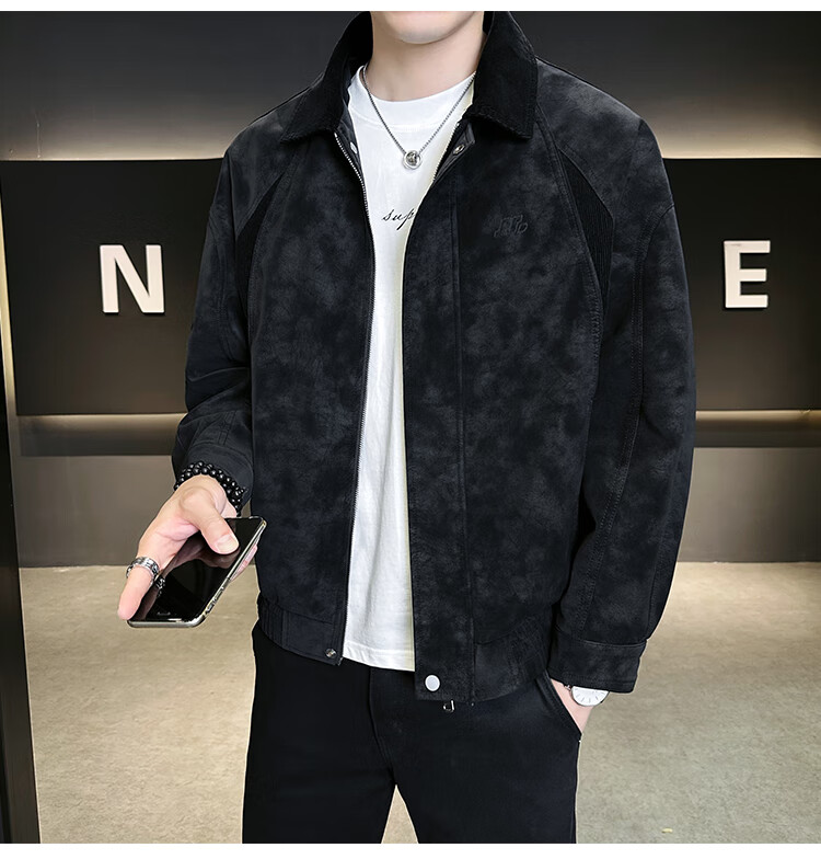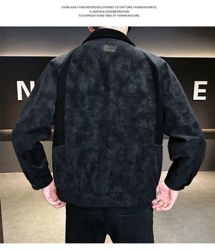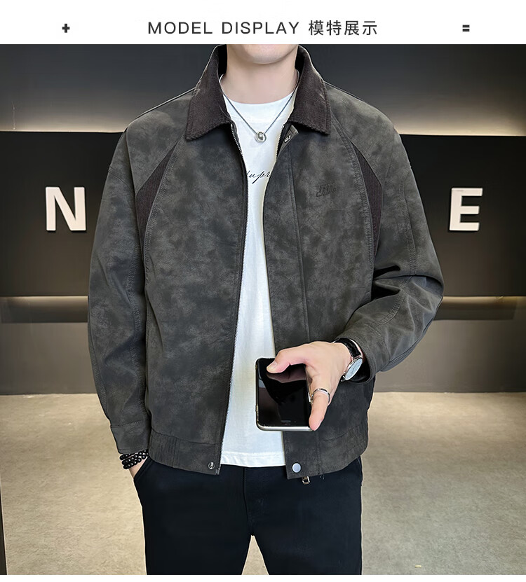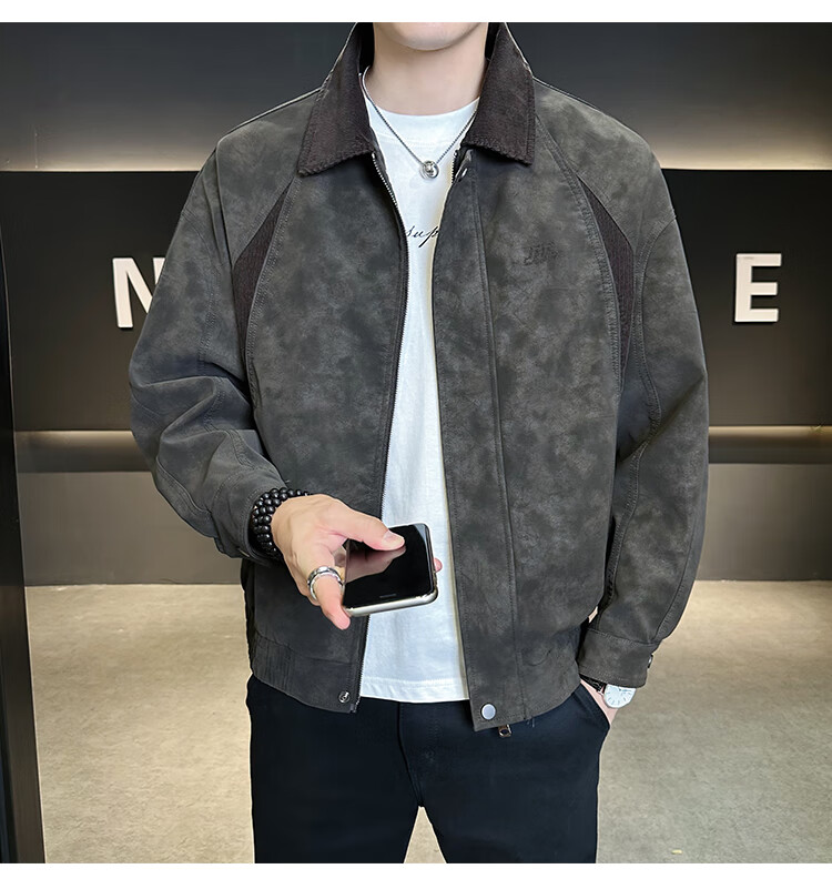 Hengyuanxiang Leather Jacket Men's Spring and Autumn 2026 New Lapel Fashion Brand Style Splicing Men's American Retro Leather Jacket Green XL
