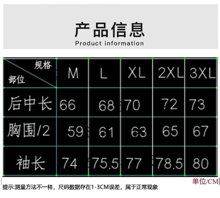 China(cm) 72-76 76-81 81-87 87-93 93-98