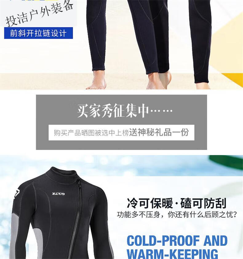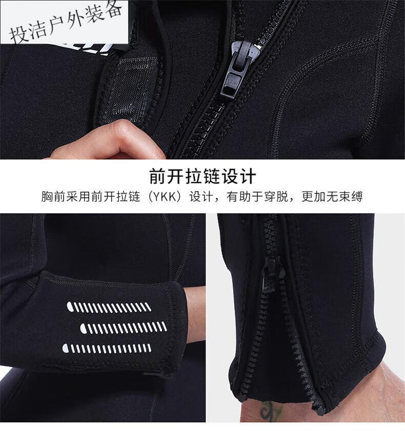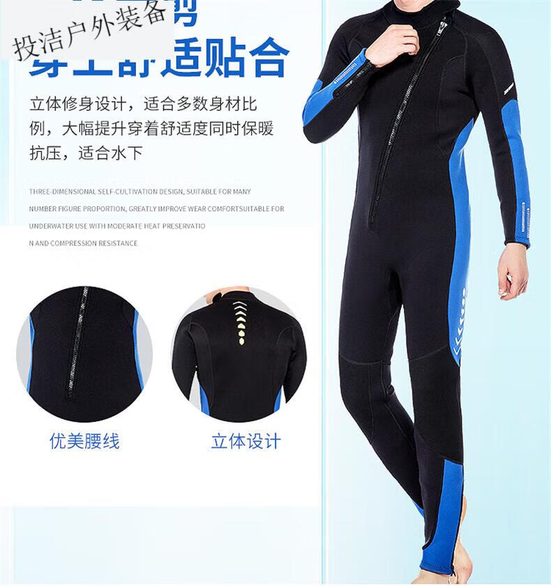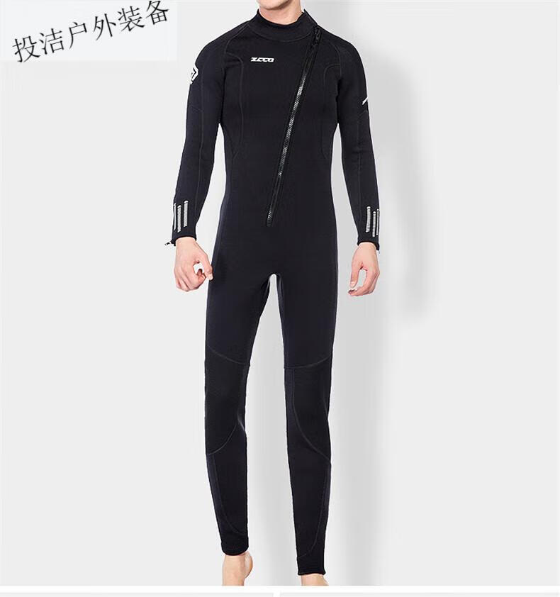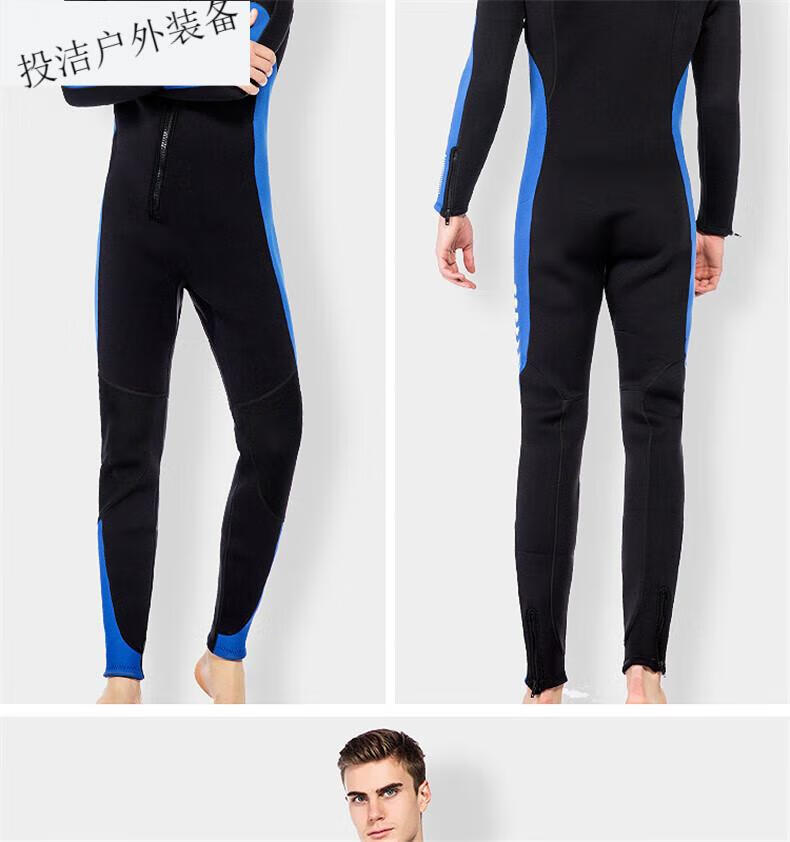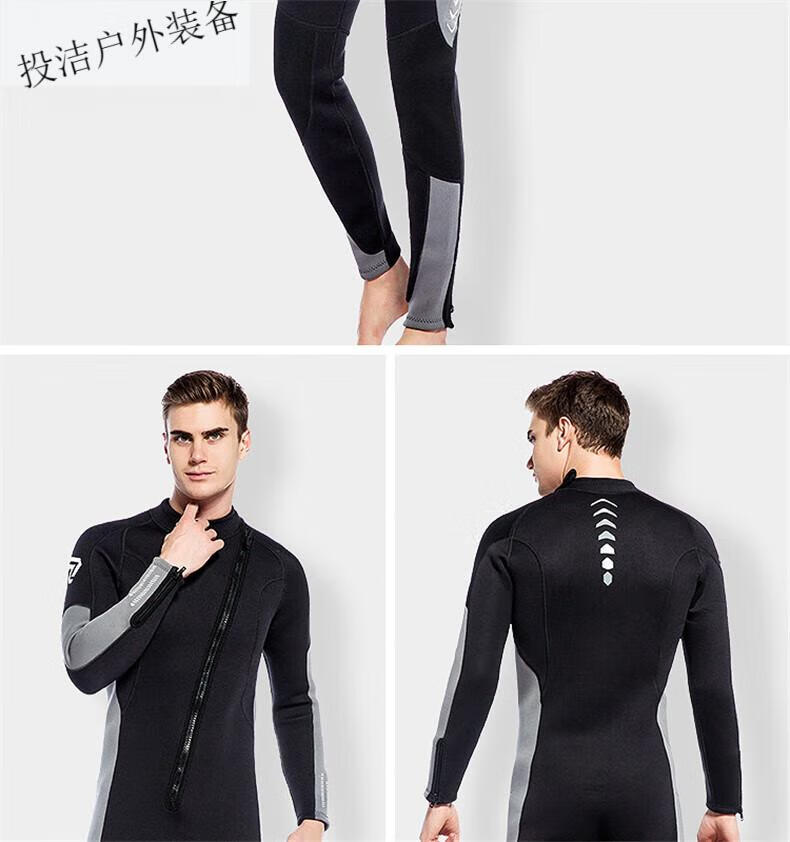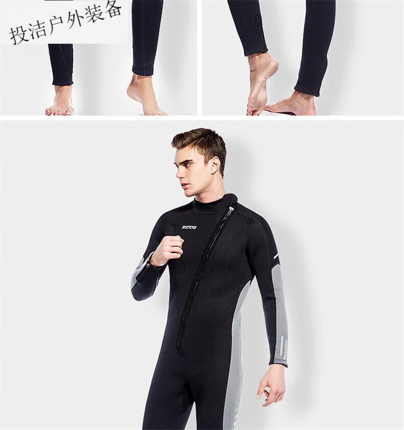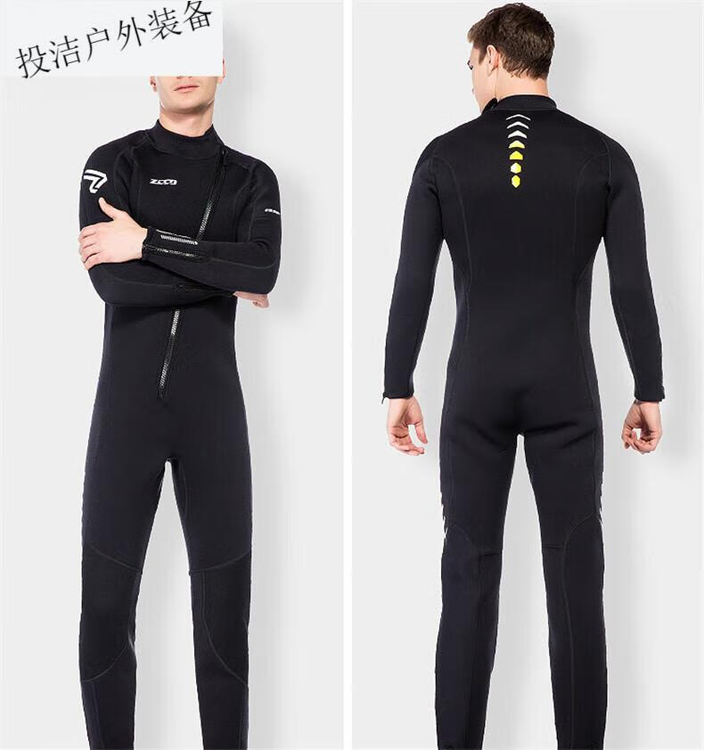 MieLanat 1.5/3/5 warm wetsuit for men, one-piece paddleboard wetsuit, winter swimsuit, women's surfing and sailing cold-proof leather 1.5MM - black and orange front zipper - men's feet M