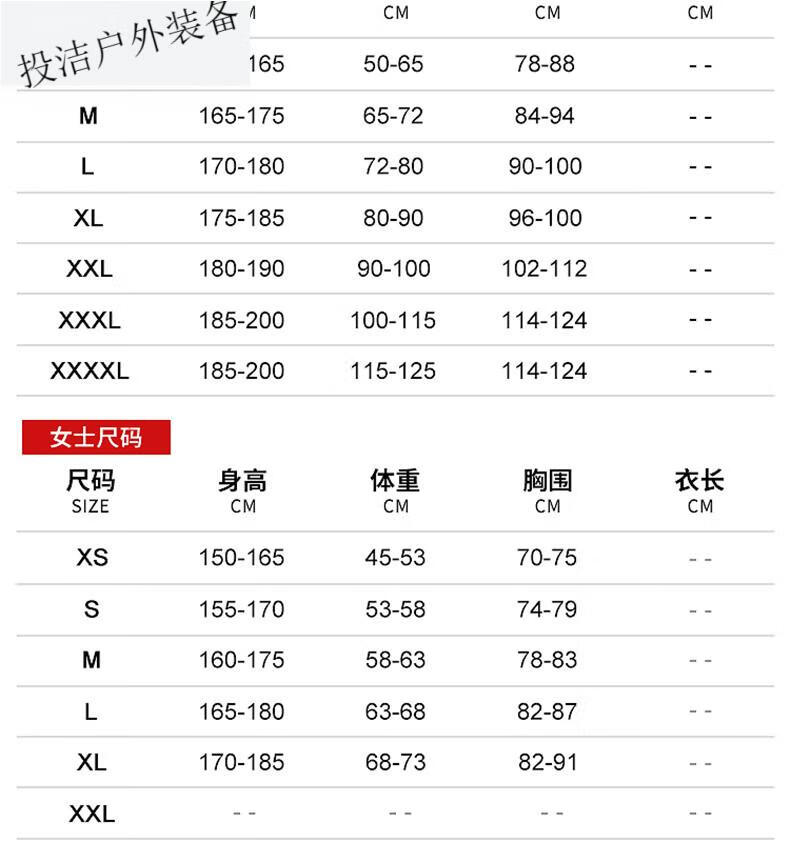 China (cm) 160-165/84-86 165-170 / 88-90 167-172 / 92-96 168-173 / 98-102 170-176 / 106-110