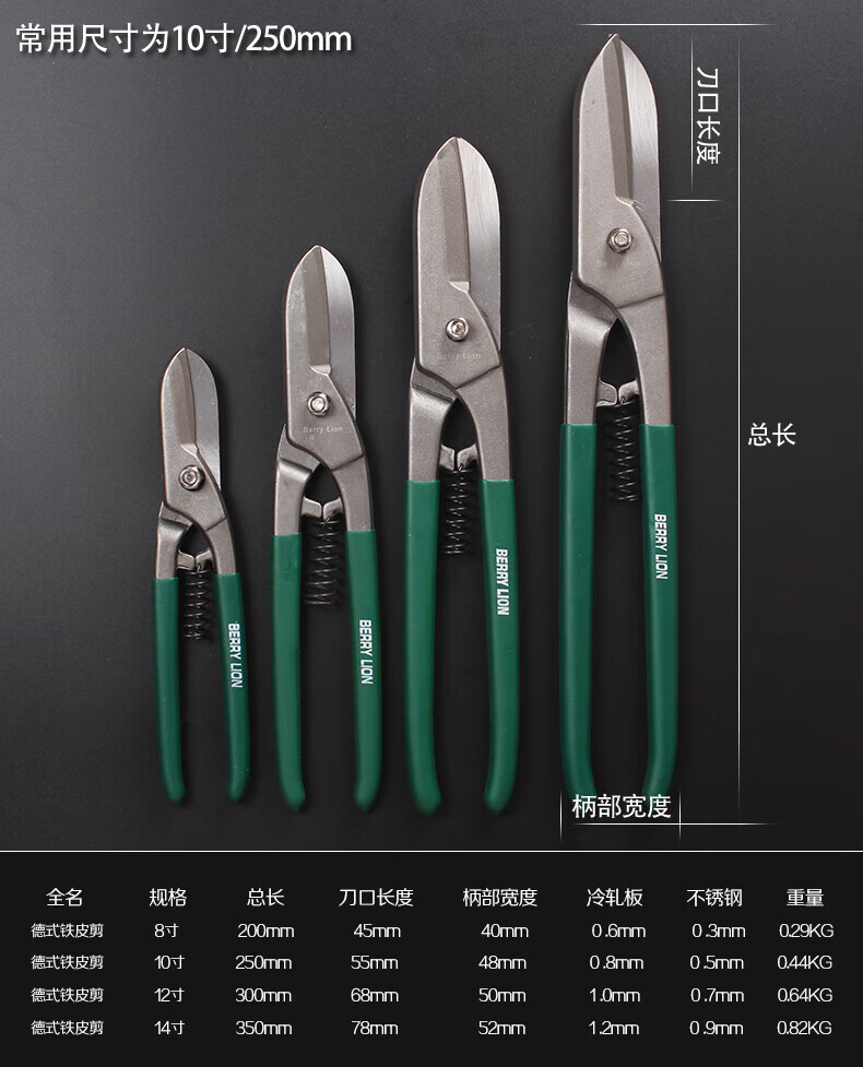 Berry Lion German-style iron scissors, white iron scissors, wire mesh scissors, iron plate scissors, galvanized sheet scissors, aviation scissors 8/200mm