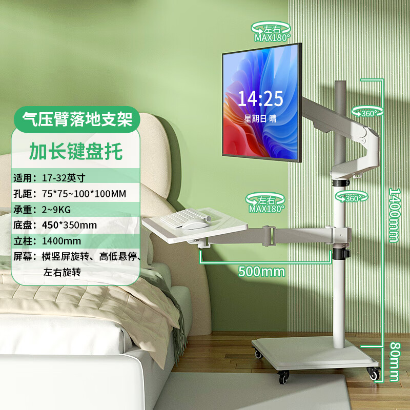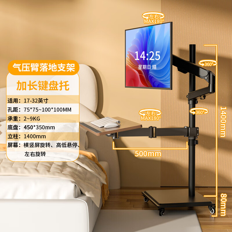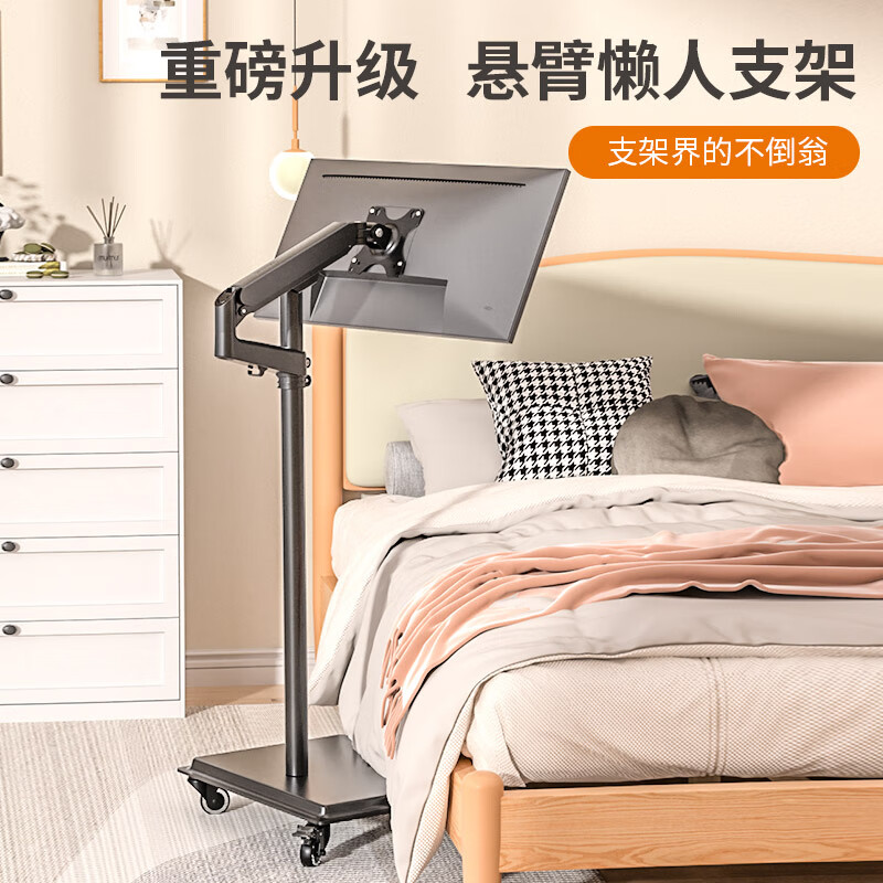 Solid cool computer monitor floor stand mobile game base station desktop host trolley e-sports room modification keyboard table sofa bedside lazy person lying down watching games and dramas extended arm keyboard tray | with mobile phone clip 17-32 inch mobile stand