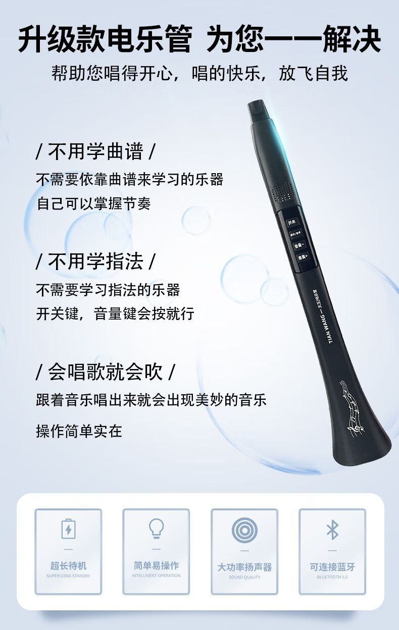 Large-volume electric blowpipe, electric music pipe with built-in Bluetooth speaker, a new type of square dance instrument that can be played without learning