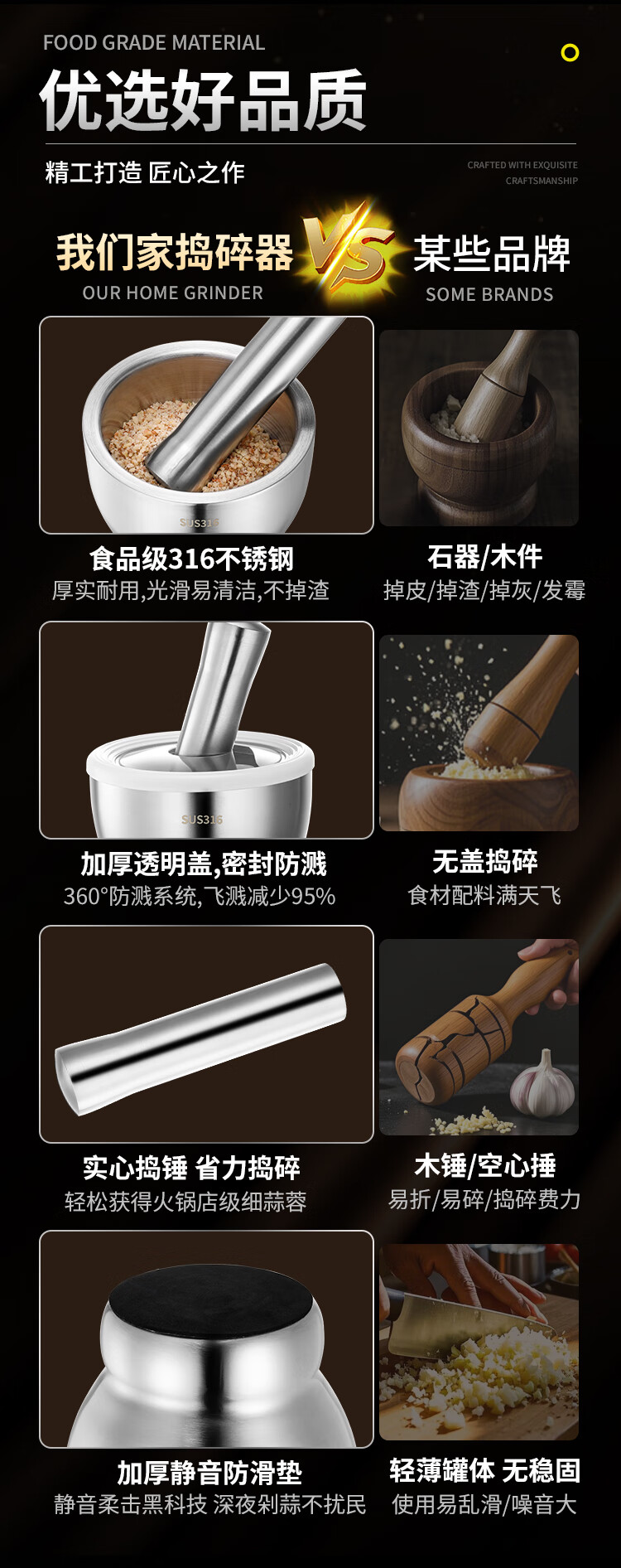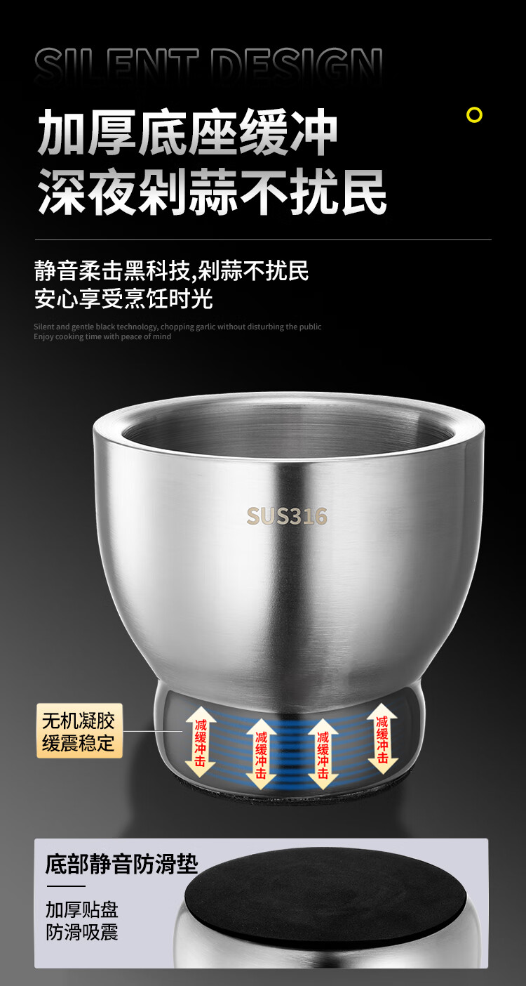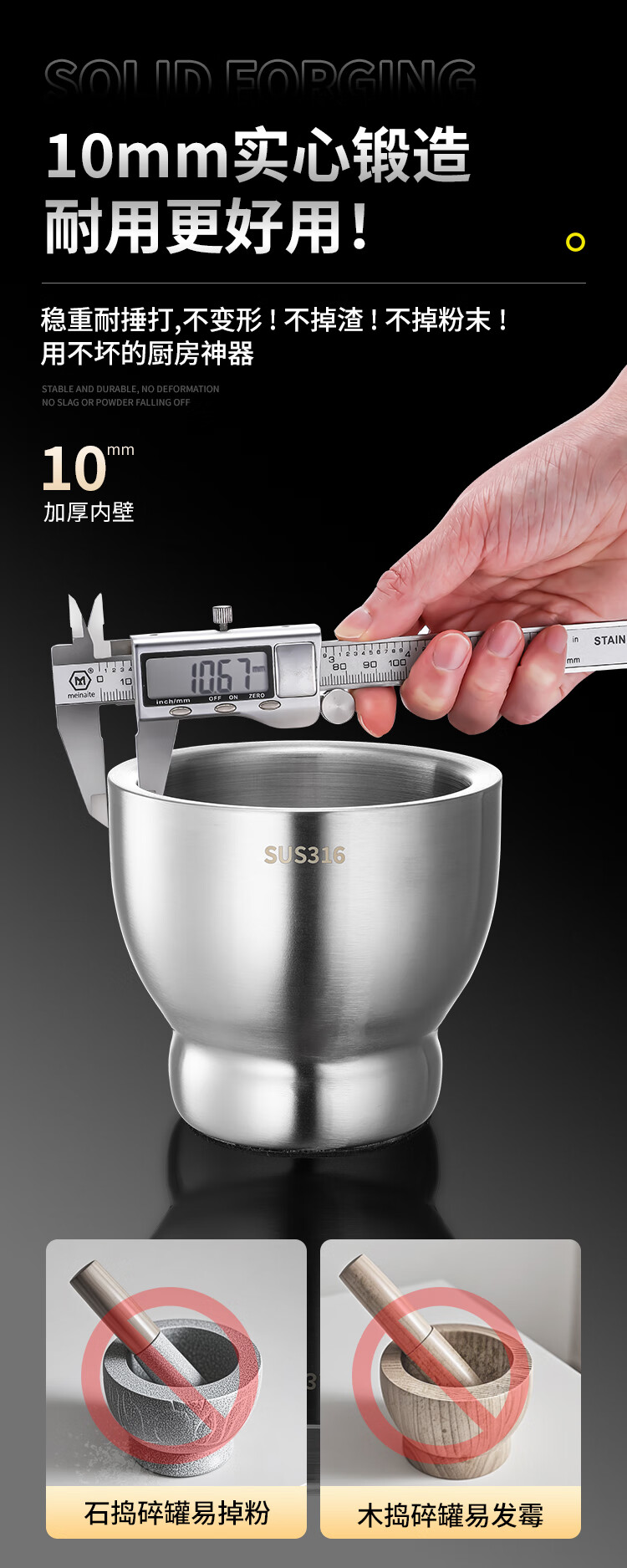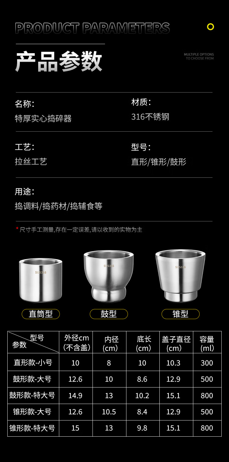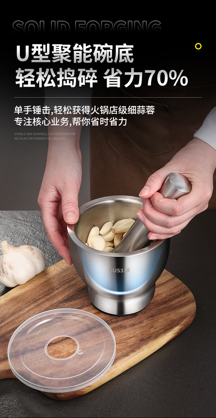 Dijer German imported quality 316 stainless steel garlic pounder, medicine grinder, pounding jar, garlic mortar, household manual beating, large drum shape, extra thick 316 steel, no slag, no powder, upgraded bottom silent