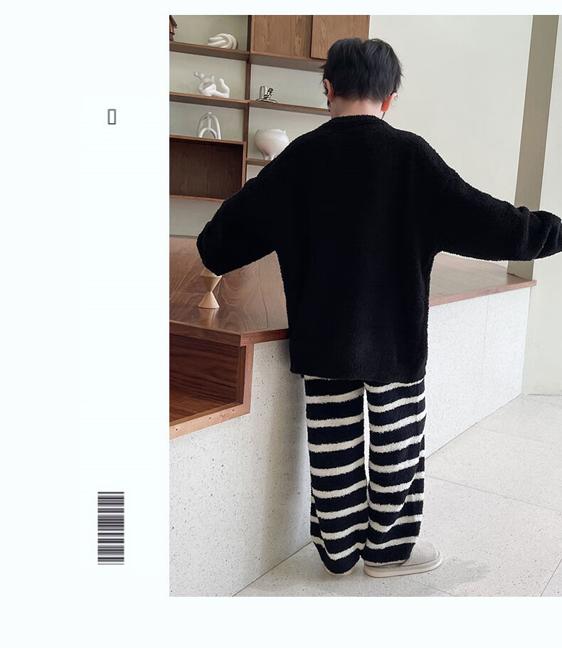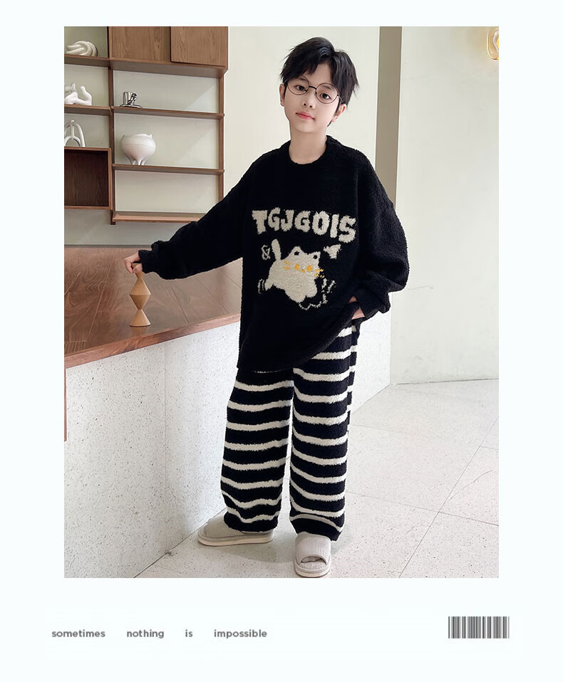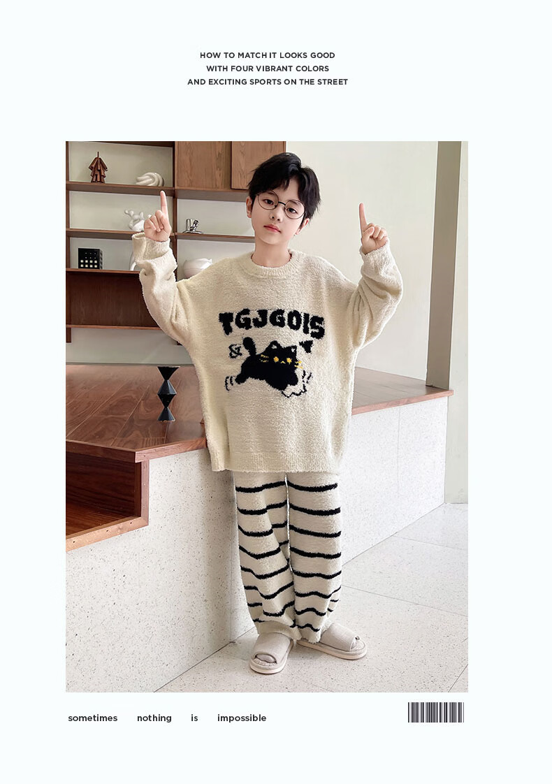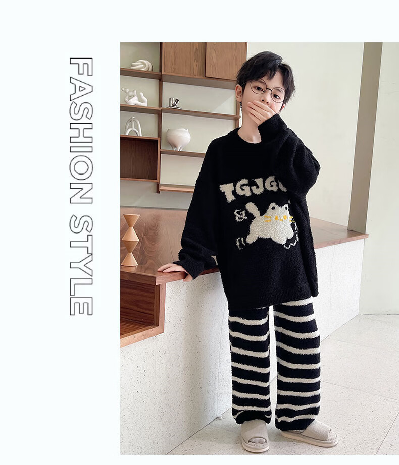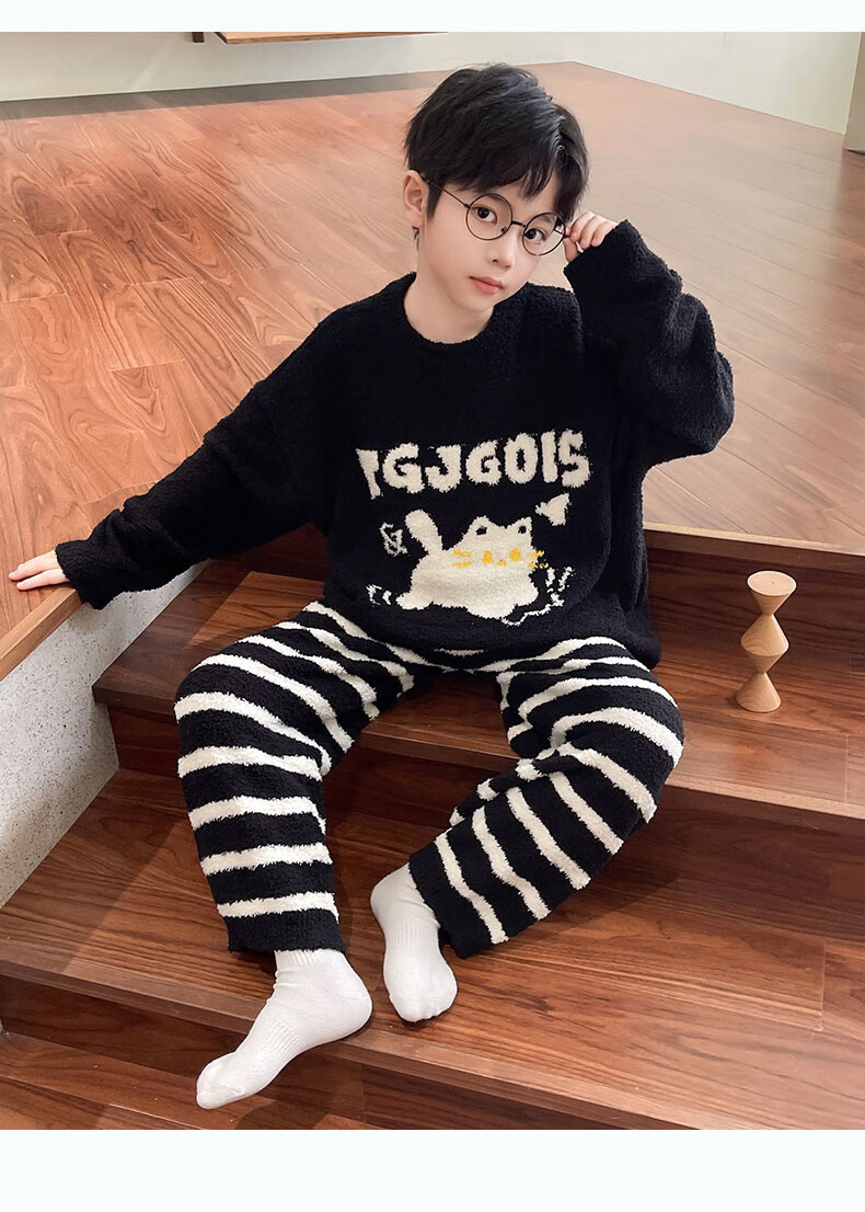 G.duck children's clothing boys' pajamas winter home clothes plus velvet autumn and winter big children thickened coral velvet boys' flannel trendy white 120 m