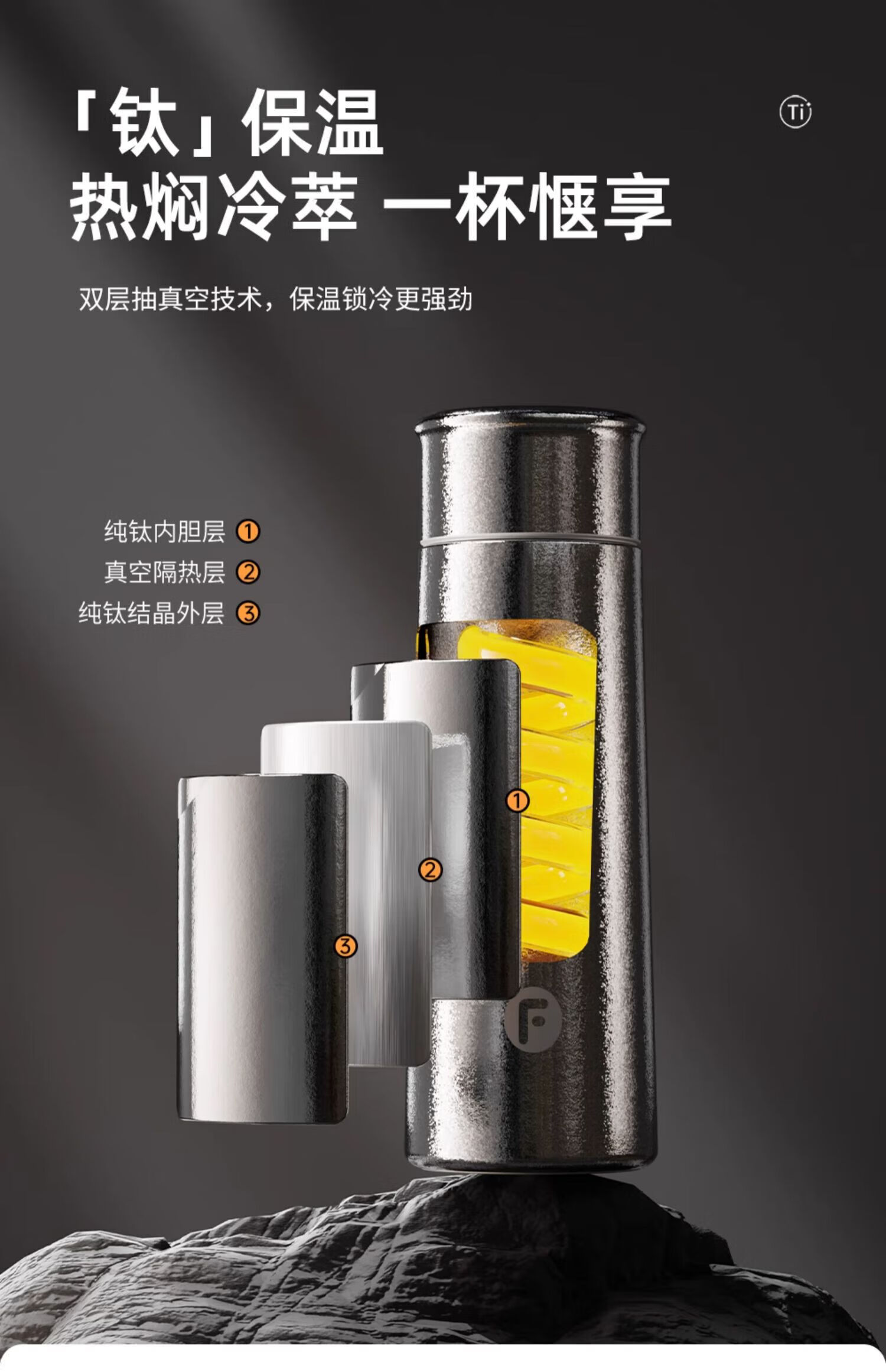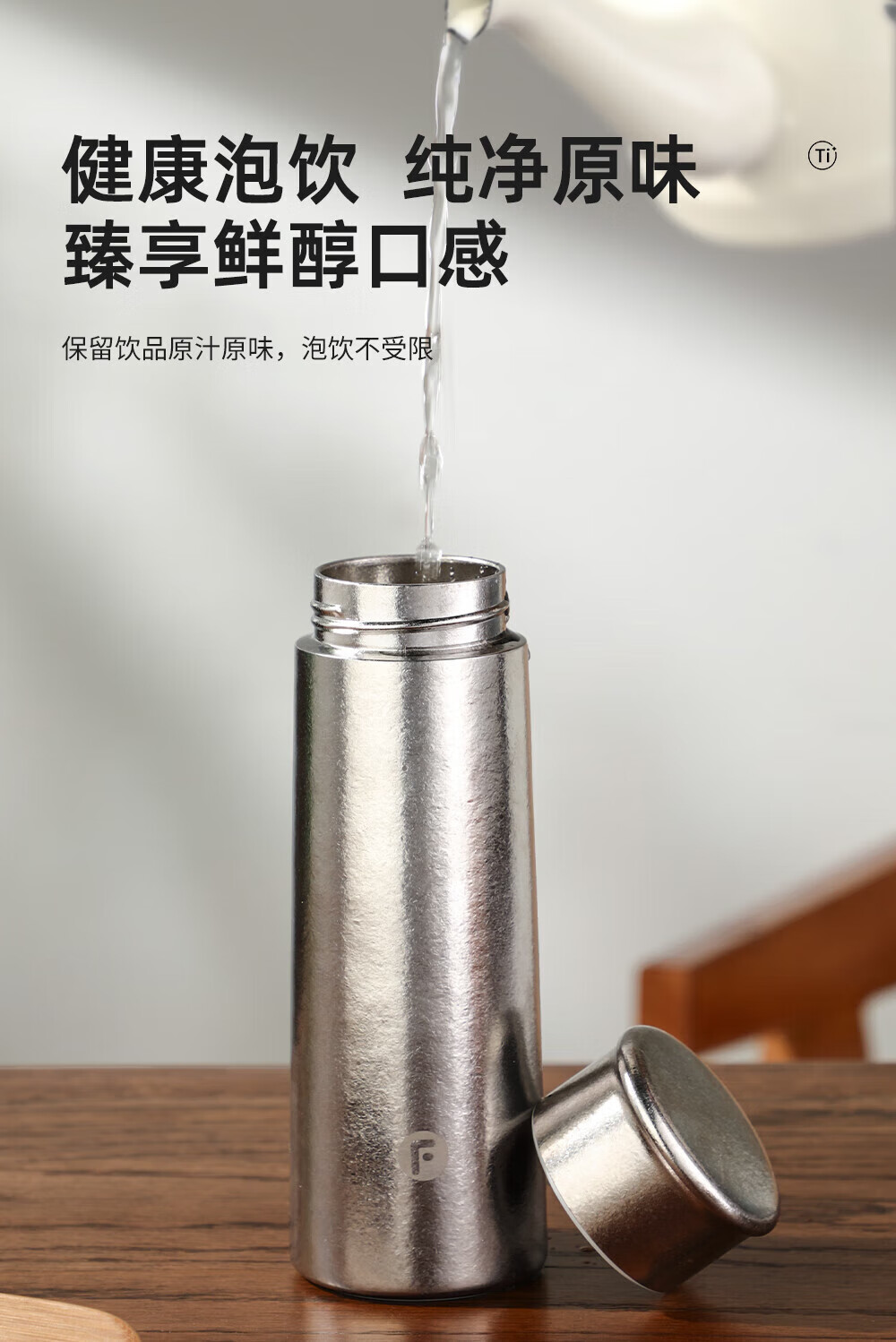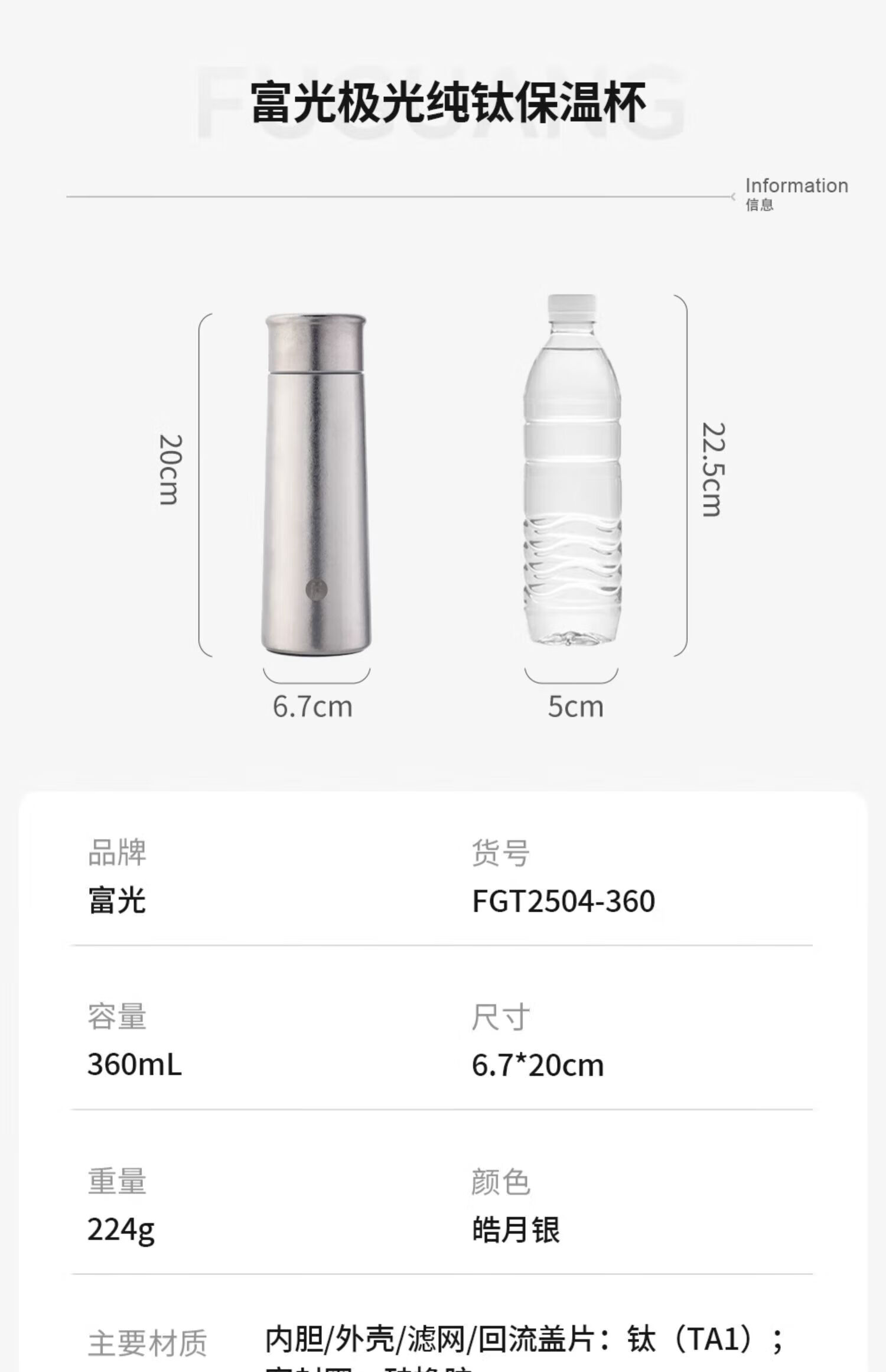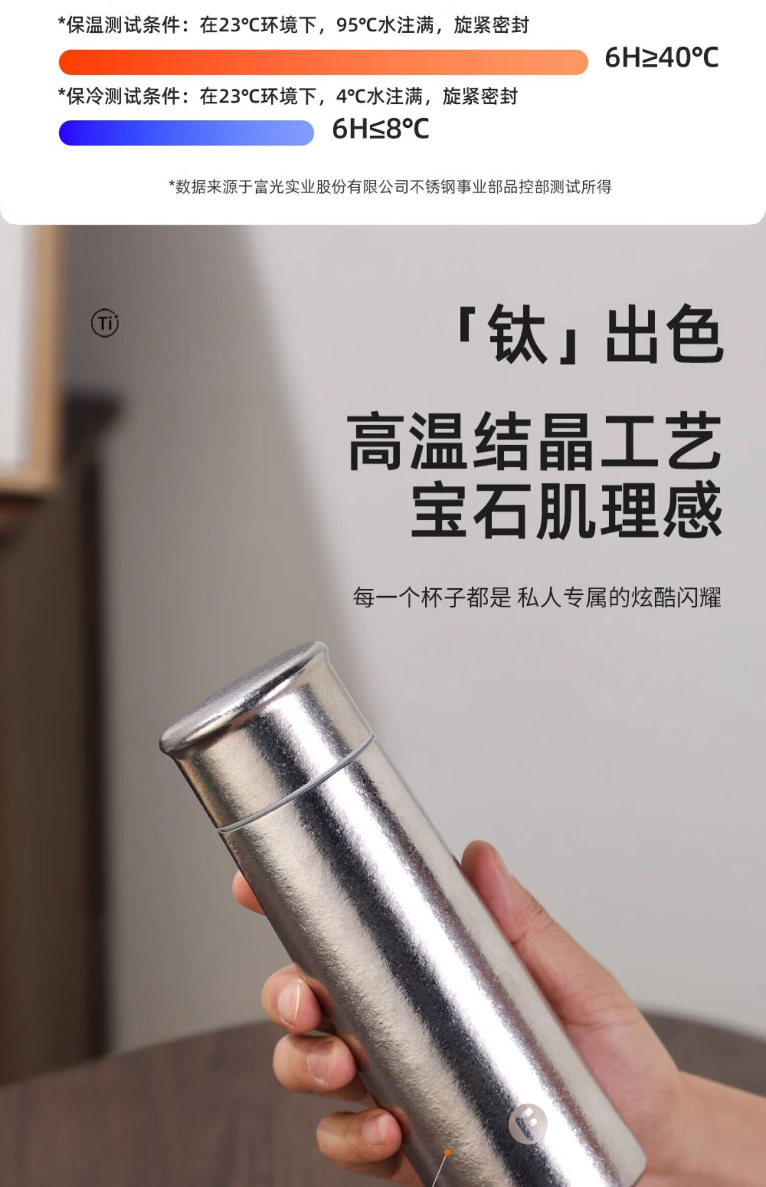 Fuguang pure titanium thermos cup for men and women, double-layer titanium tea water separation, health-preserving stew cup, titanium crystal tea cup, Haoyue Silver 360ml