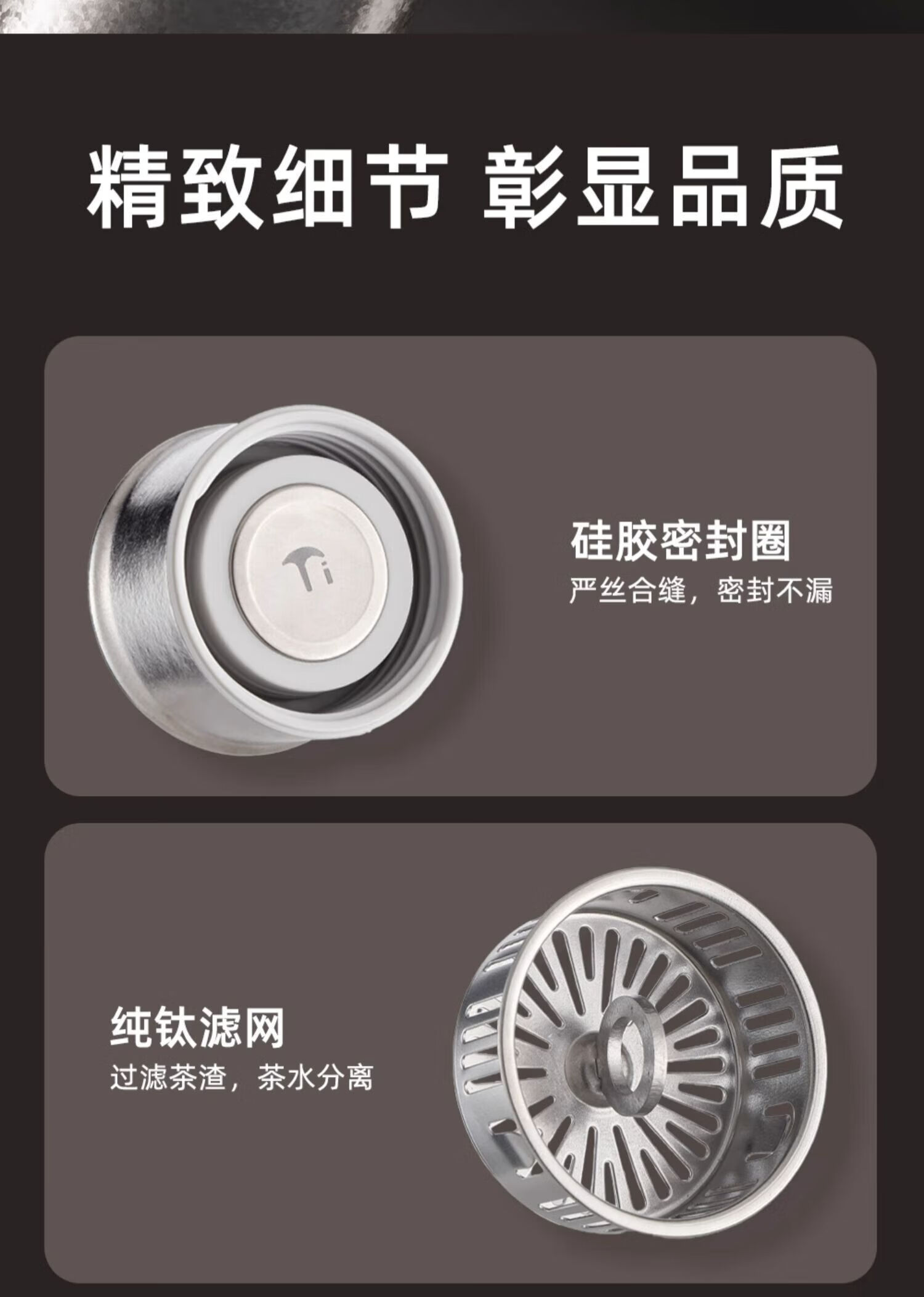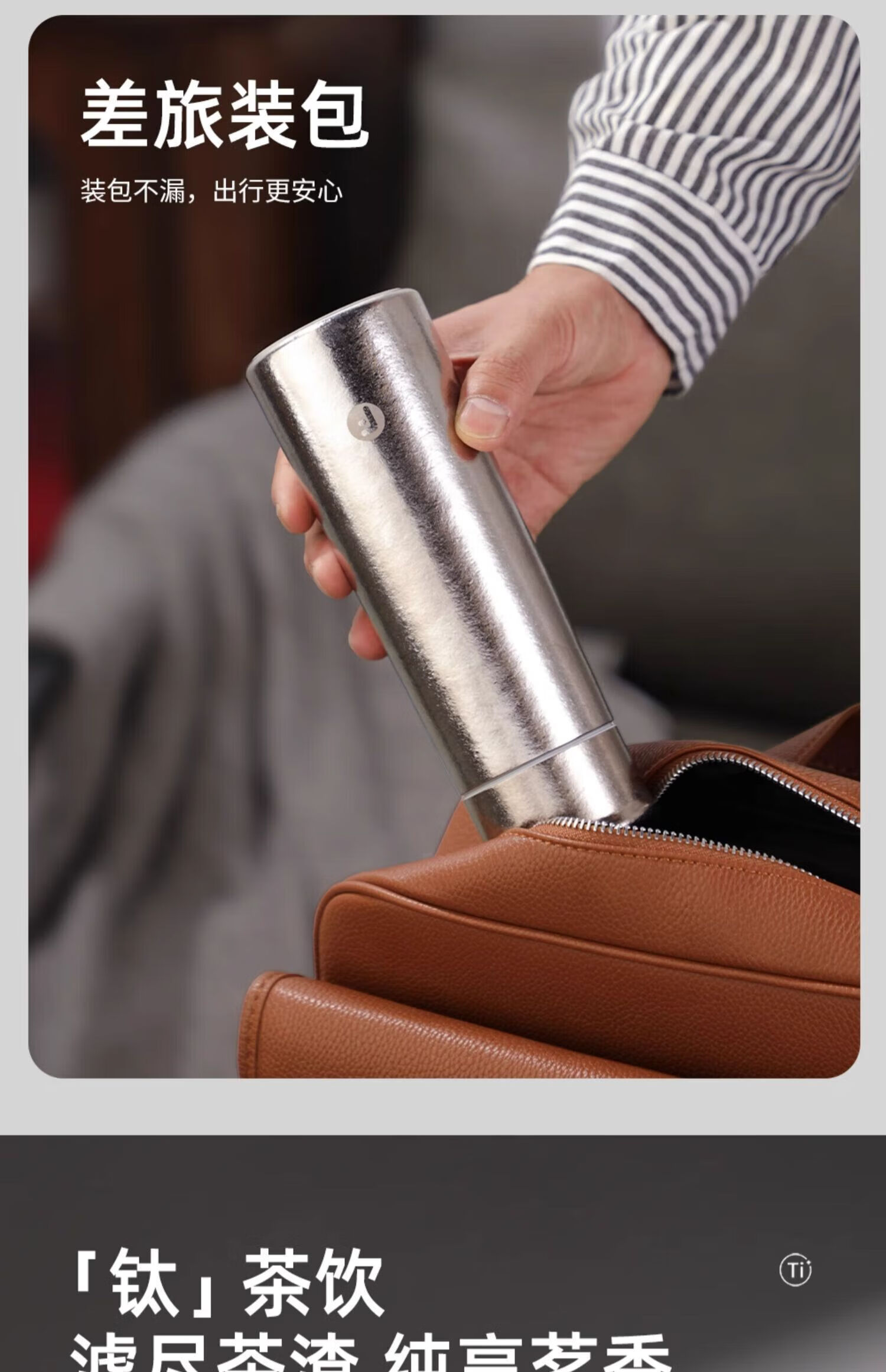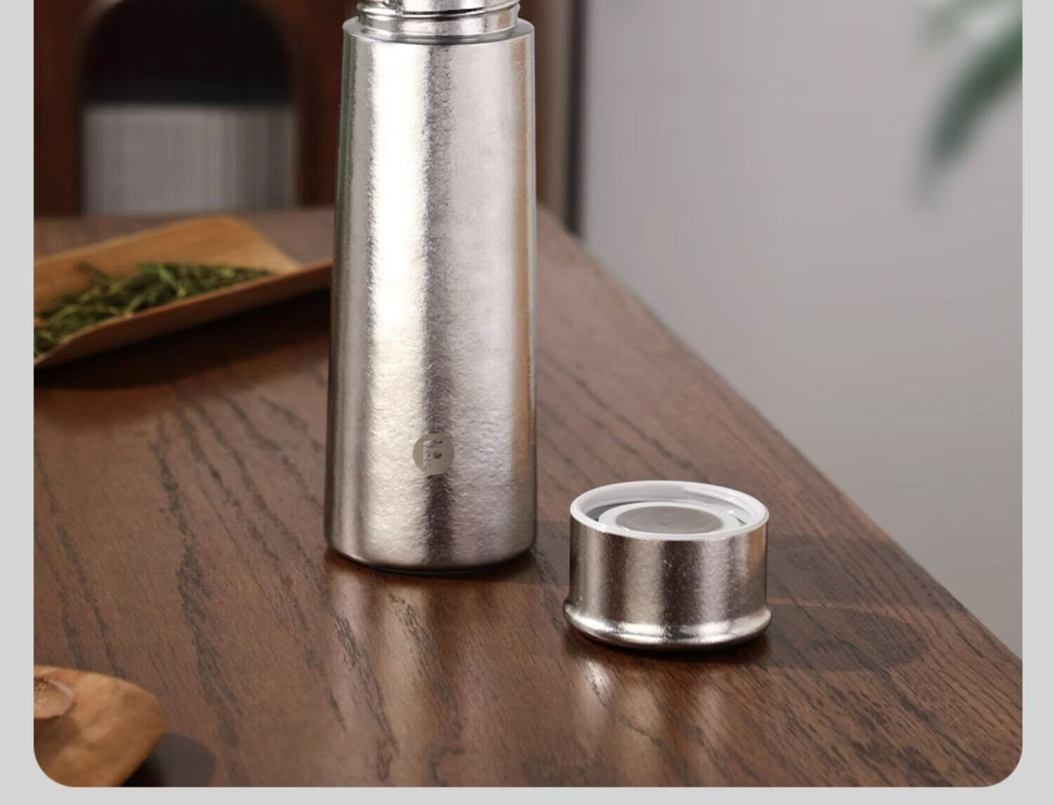 Fuguang pure titanium thermos cup for men and women, double-layer titanium tea water separation, health-preserving stew cup, titanium crystal tea cup, Haoyue Silver 360ml