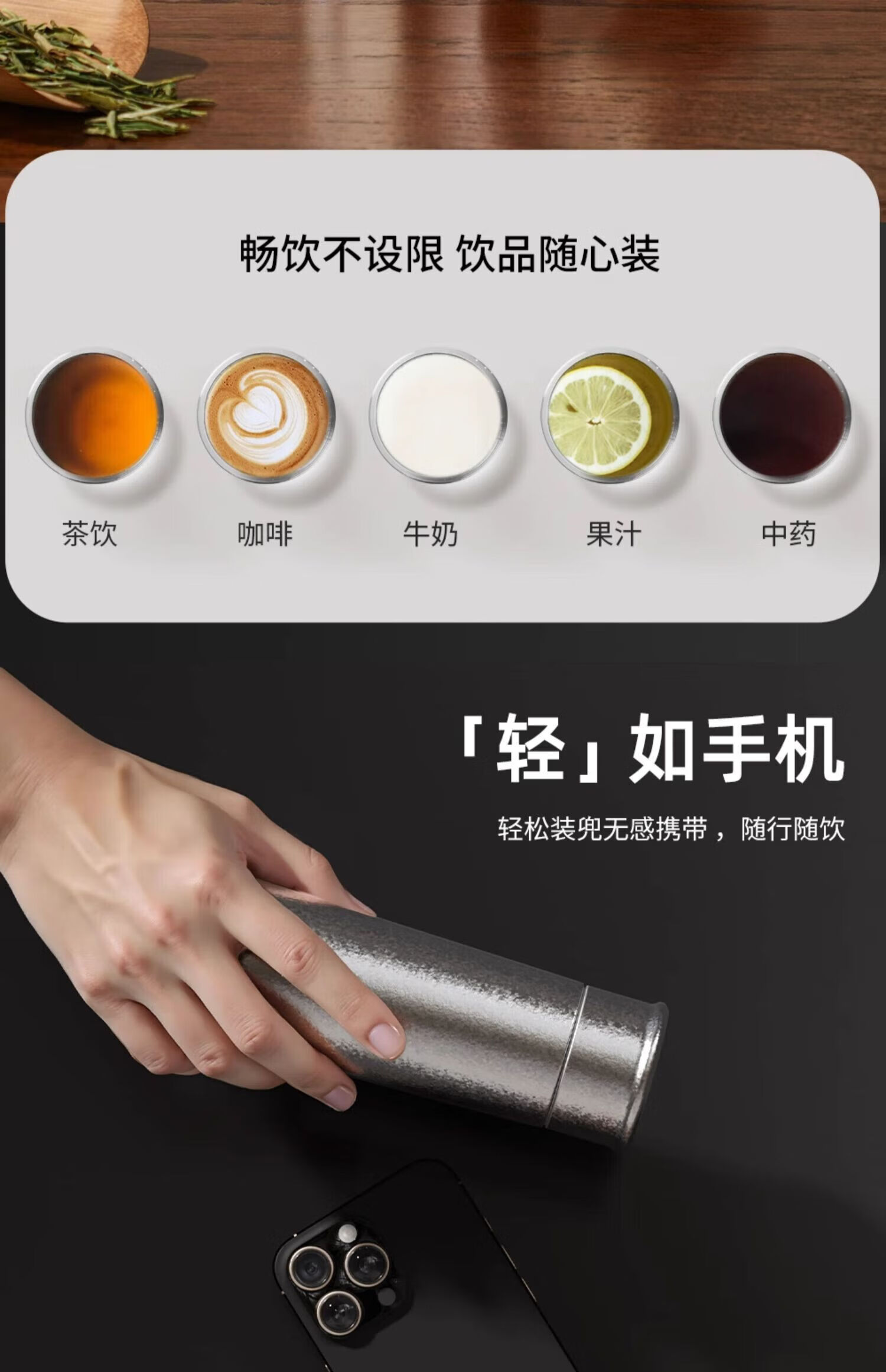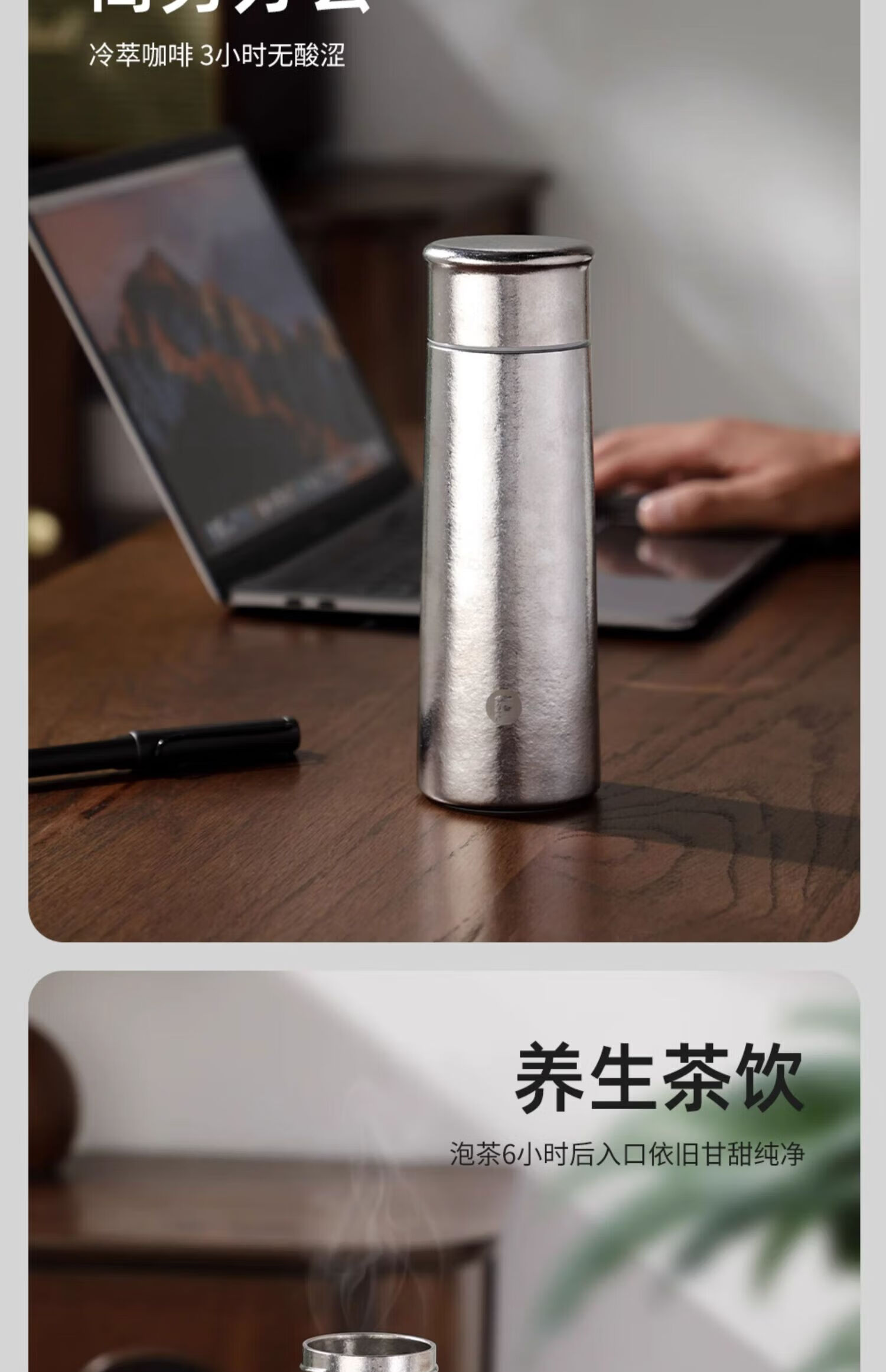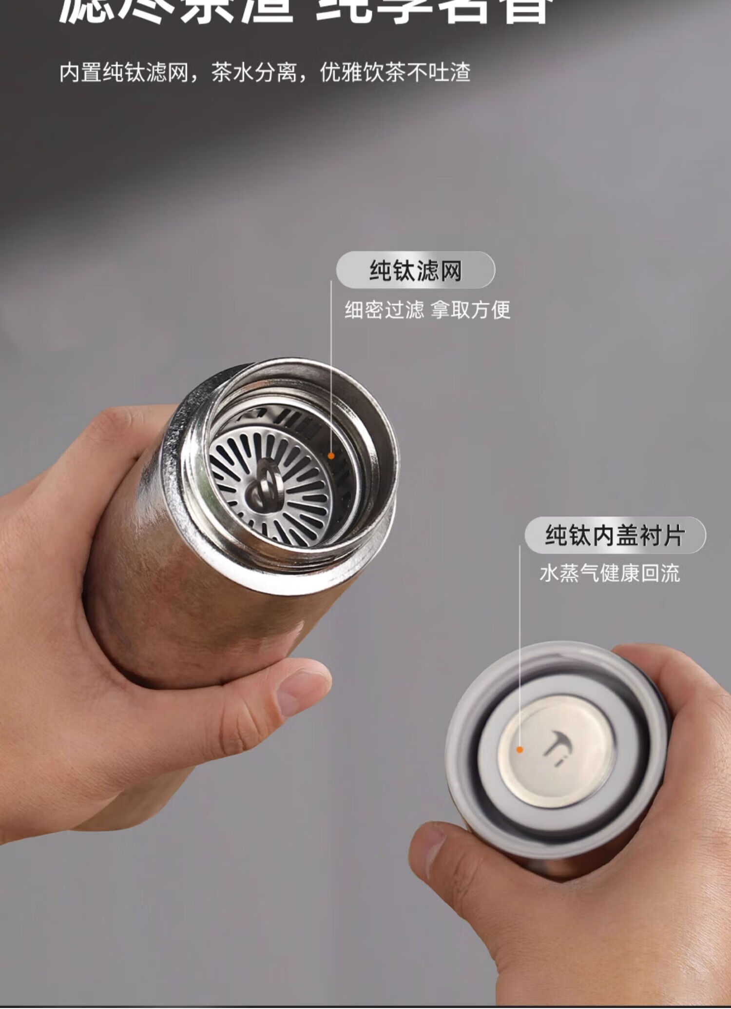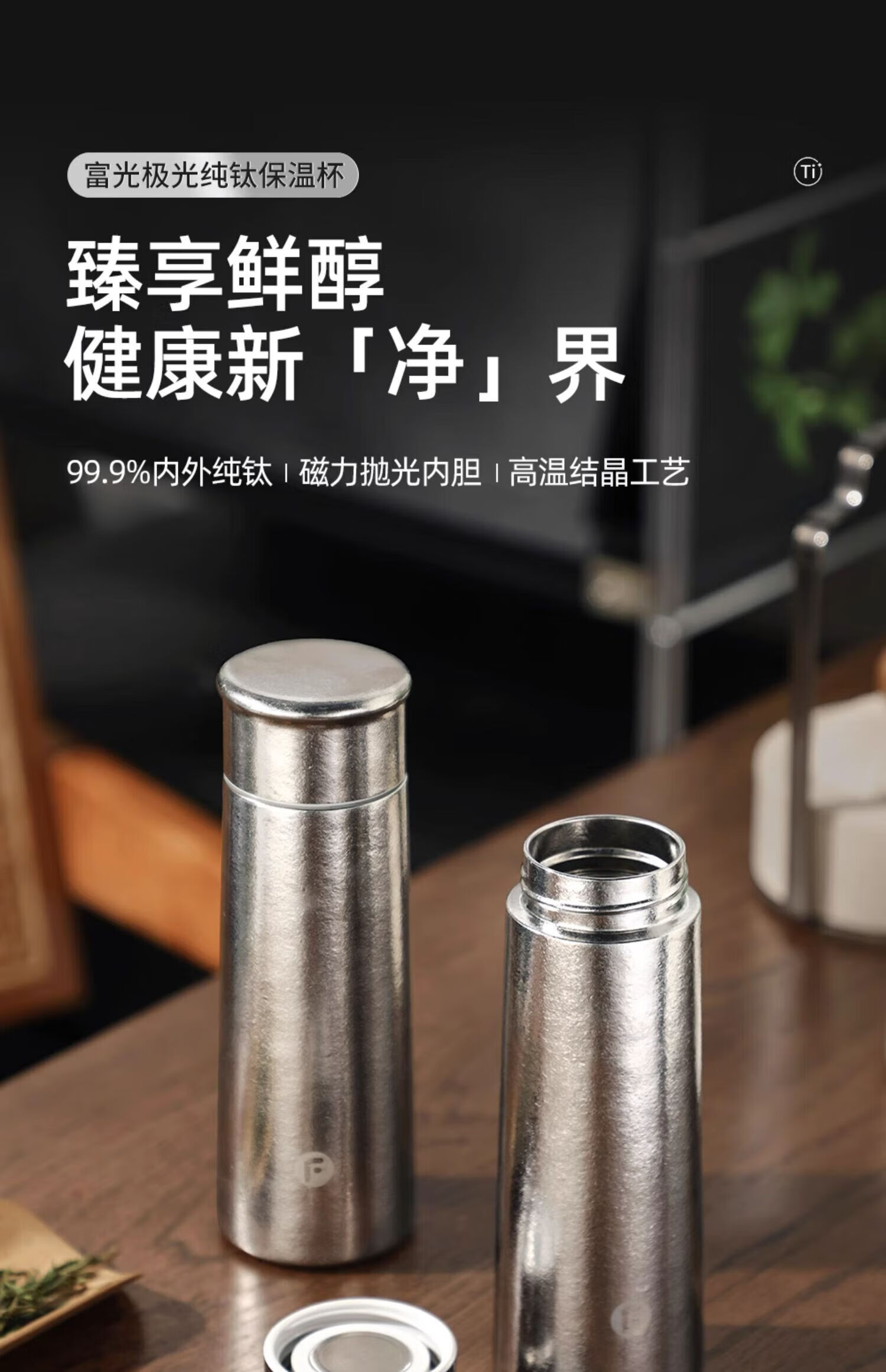 Fuguang pure titanium thermos cup for men and women, double-layer titanium tea water separation, health-preserving stew cup, titanium crystal tea cup, Haoyue Silver 360ml