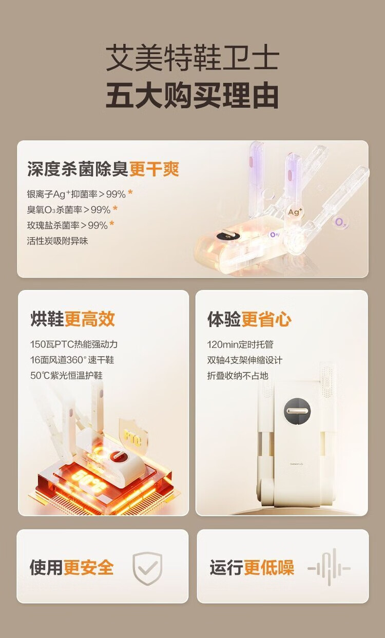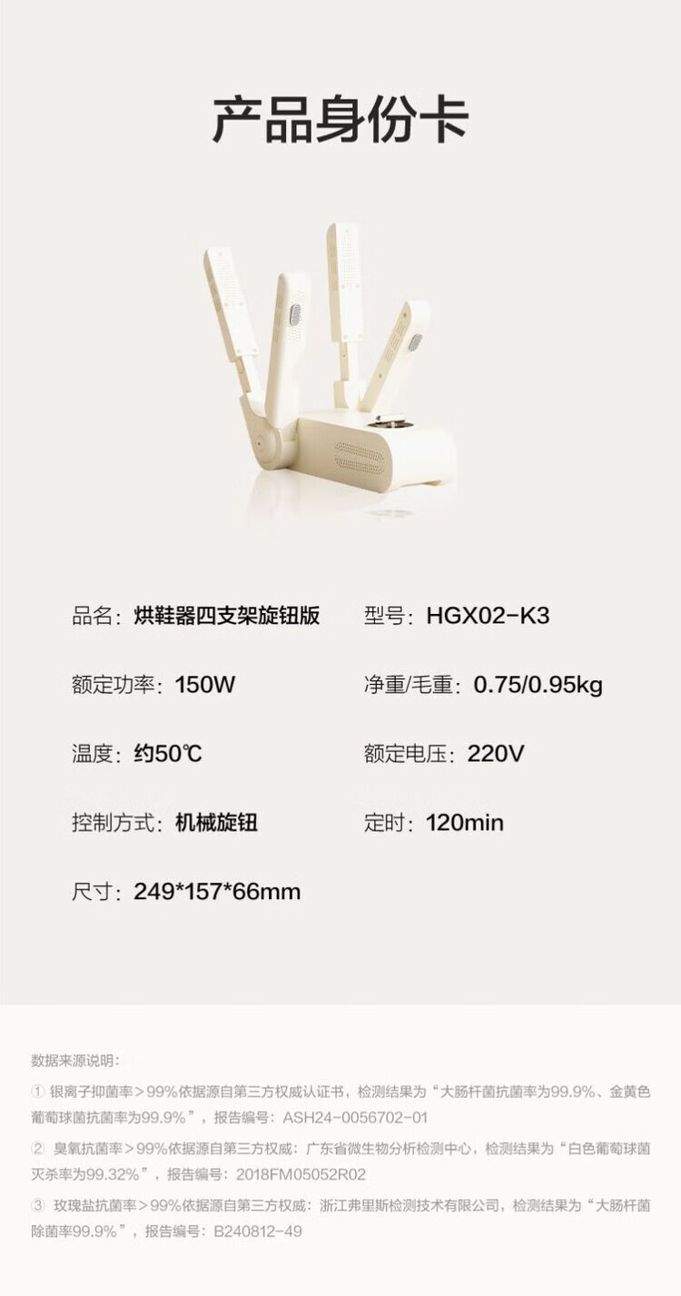 AIRMATE shoe dryer, household shoe dryer, deodorizing and sterilizing dryer, dormitory coaxing shoe warmer, wet and dry use, double bracket standard model, selected model HGX02-K2